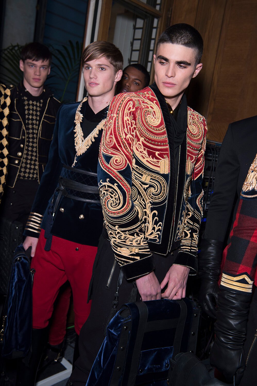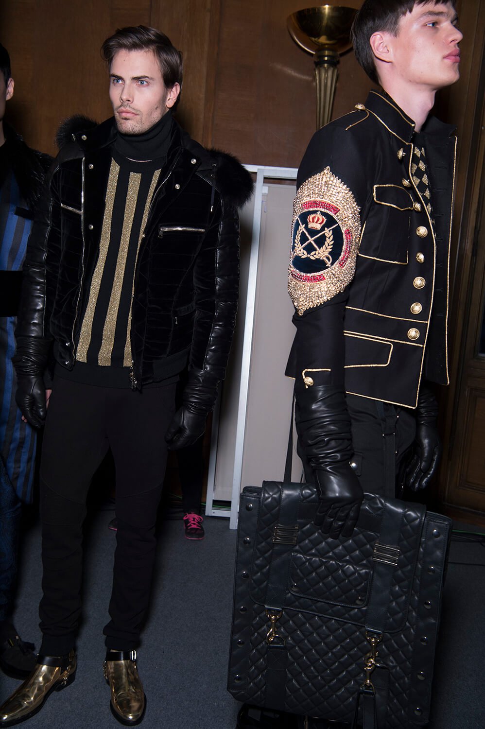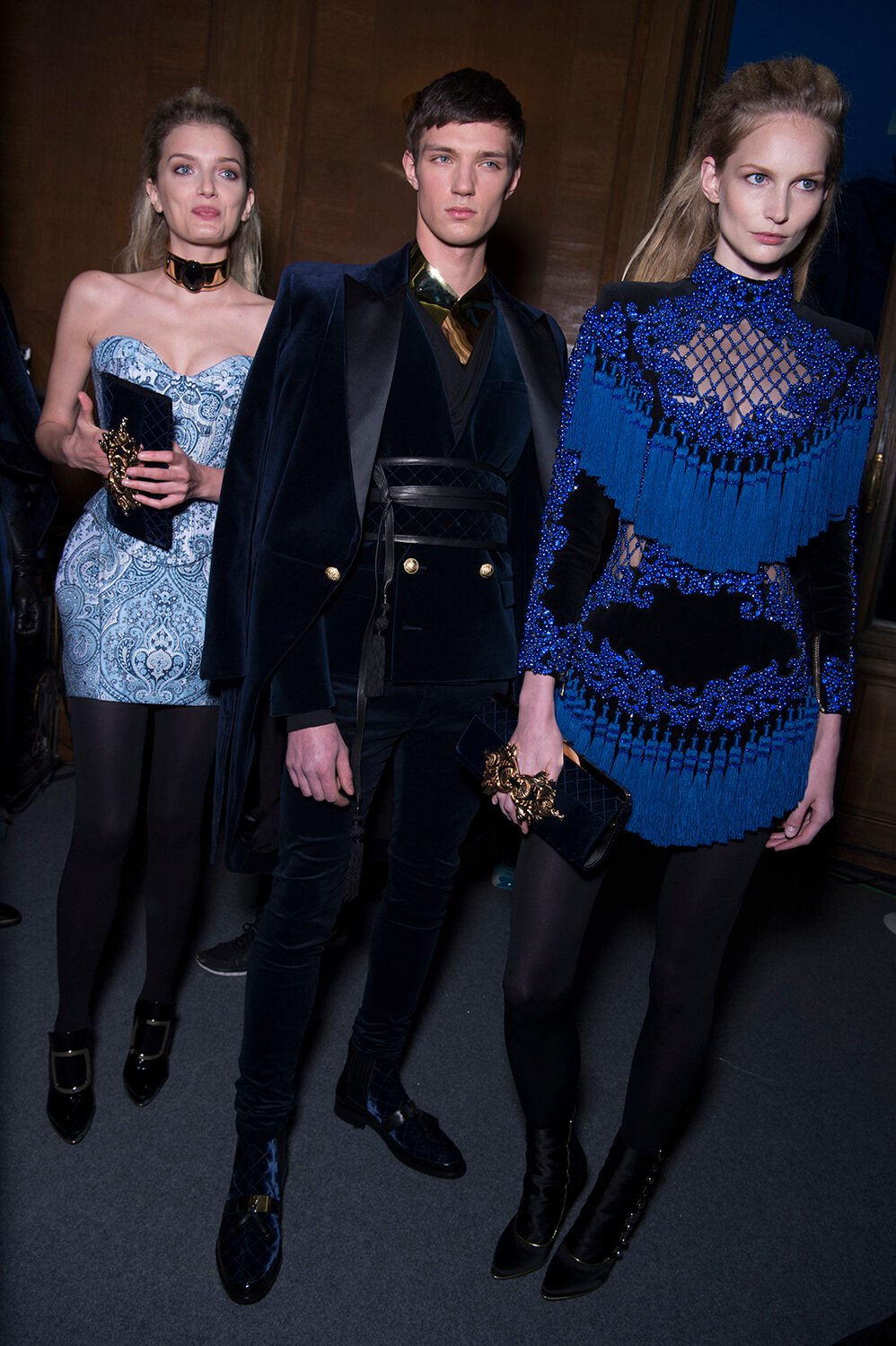 Balmain’s army aren’t that great at camouflage. Well, they’re not unless you’re trapped in a giant glitter ball. Or a chandelier factory. Or the Swarovski HQ in glittery, shimmery shiny Austria, who must celebrate February 23rd as a national holiday each time Olivier Rousteing presents his blingtastic, glitz-blitzed Balmain collections. For winter, Monsieur Rousteing was thinking of his army, and also military gear of the past – braided hussars, curassiers, general Royal blokes clad in opulent regal attire. Aristocrats of them meet the aristocrats of now – and after a campaign that reignited the flame of supermodel fandom with guest appearances by Naomi, Claudia and Cindy, Rousteing decided to establish his own bevy of boy supers – Baptiste, Jon K, Sean O’Pry. Supreme as super models. Super good.