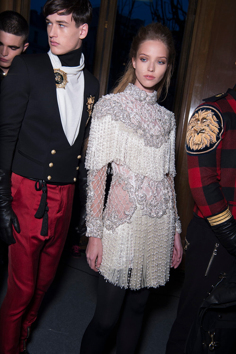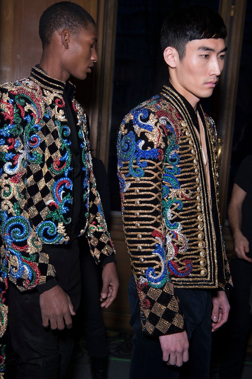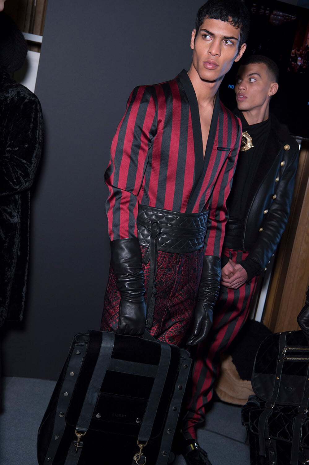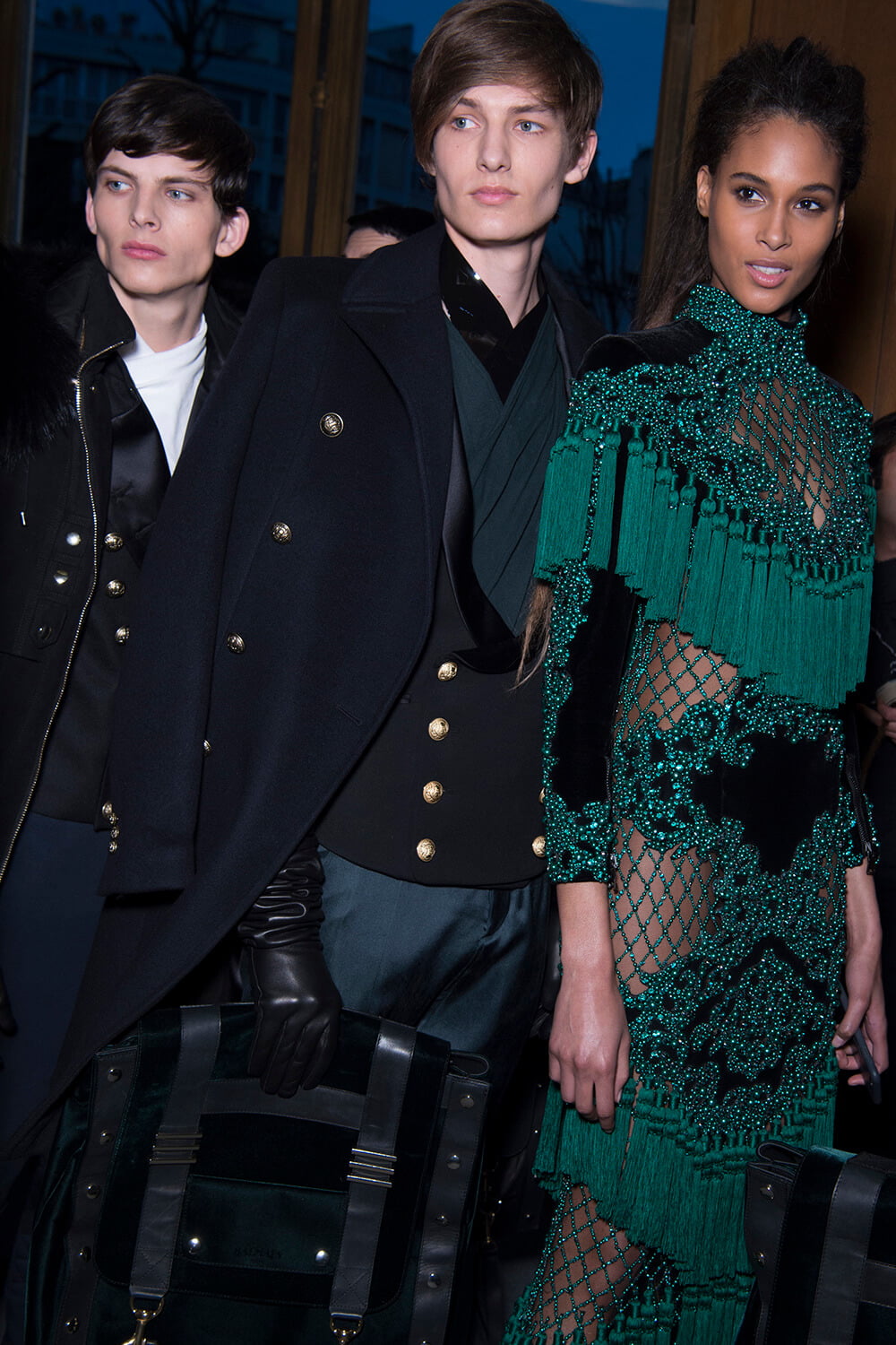 Balmain’s army aren’t that great at camouflage. Well, they’re not unless you’re trapped in a giant glitter ball. Or a chandelier factory. Or the Swarovski HQ in glittery, shimmery shiny Austria, who must celebrate February 23rd as a national holiday each time Olivier Rousteing presents his blingtastic, glitz-blitzed Balmain collections. For winter, Monsieur Rousteing was thinking of his army, and also military gear of the past – braided hussars, curassiers, general Royal blokes clad in opulent regal attire. Aristocrats of them meet the aristocrats of now – and after a campaign that reignited the flame of supermodel fandom with guest appearances by Naomi, Claudia and Cindy, Rousteing decided to establish his own bevy of boy supers – Baptiste, Jon K, Sean O’Pry. Supreme as super models. Super good.