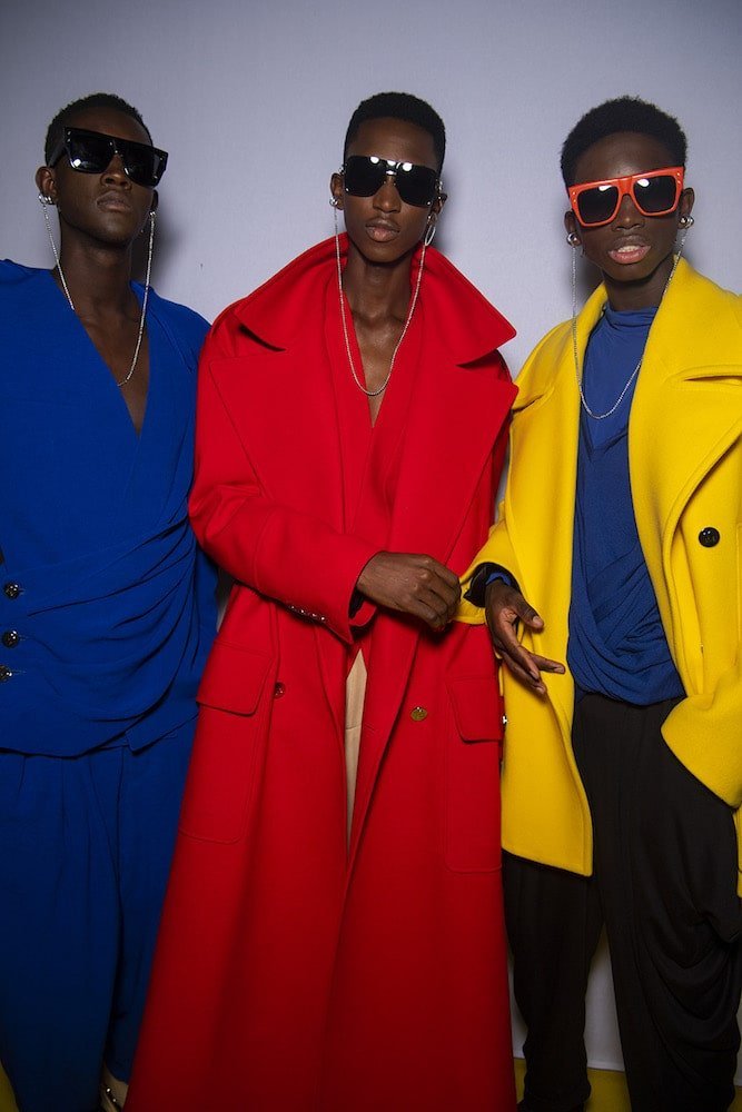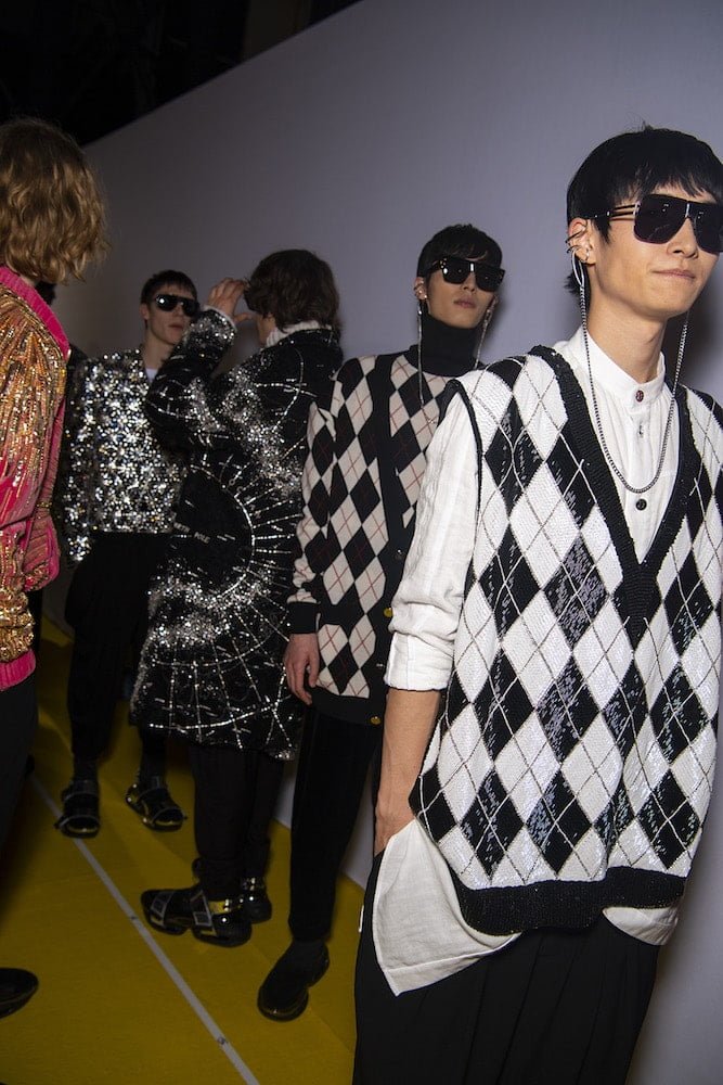 Knockout moments came courtesy of the dazzling display of bedazzled argyle sweaters and the ivory and pearl silk that was used to create excellent blazers with hoodie-like kangaroo pouches. Rousteing ended the proceedings twirling and hugging the chorus of models and dancers that lapped around the set. This Balman army is strong and united on their journey to a brighter future and a better tomorrow.
