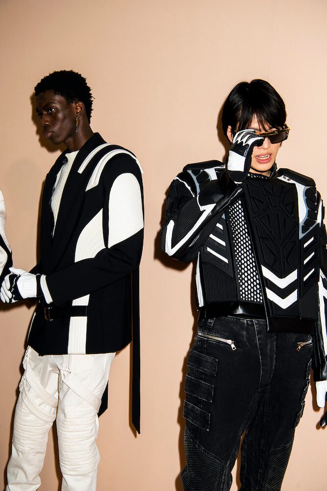 The collection stemmed from Rousteing’s “unhealthy obsession” with covering up the scarring from a freakish burn accident he endured in 2020. “Ultimately, that experience helped push me to realize that the only possible response to the incredible shaming potential of social media is to face it head on,” he said. 106 looks strong, many of the pieces came inspired by the bandaging that coated Rousteing’s frame for months on end: fashioned here from neoprene and spliced with tough rubber and metal torsos. Denim was cut wide and met with cartoonish platforms, smudgy trompe-l’œil prints of the naked body and Star Wars-esque tailoring.