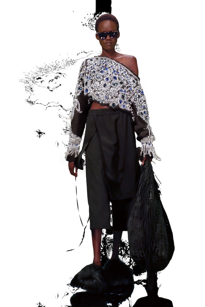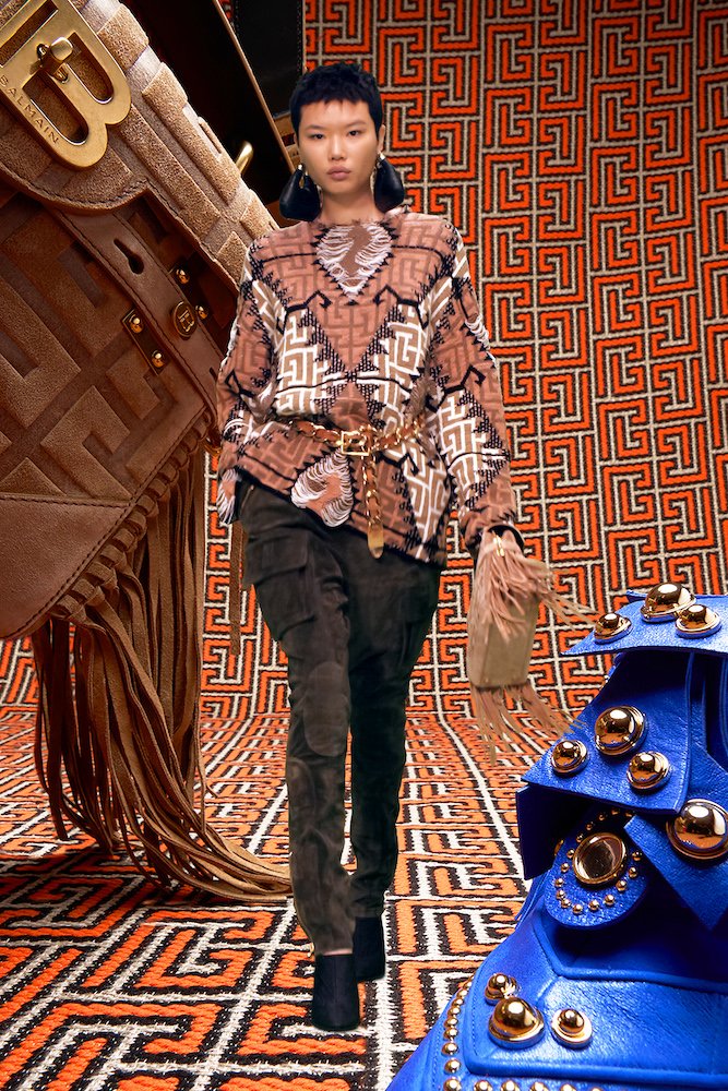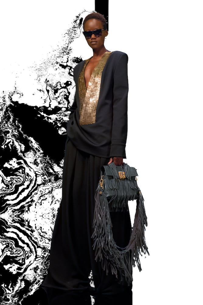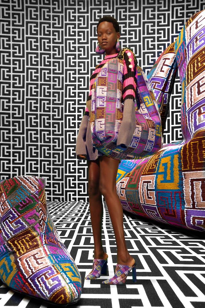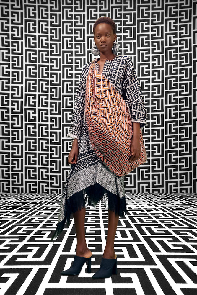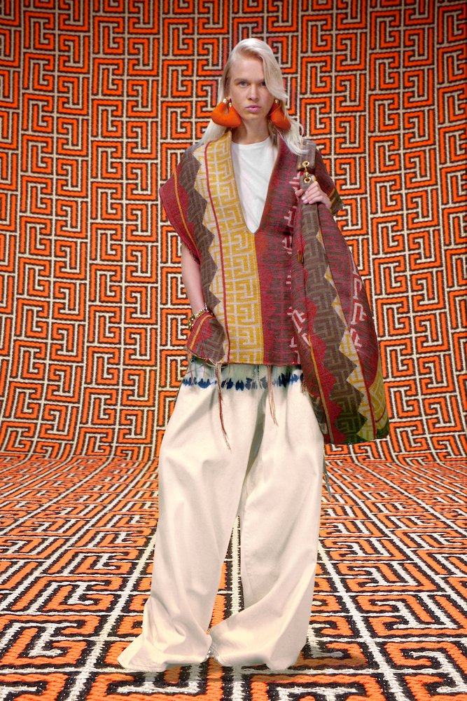 For Resort 2022, Rousteing offsets pillars to Pierre Balmain’s New French Style with ethereal patterns, embellishments and sillhoutes that “look to the richness of the arts and traditions of the lands that I now know were those of my birth father and mother – and me”, says the designer. The collection’s mesmerising patterns are inspired by artisanal, rich weavings from the Horn of Africa, paired alongside the house’s 50-year-old Labyrinth Pattern. Rousteing signatures – structural going-out dresses, power suits, lavish eveningwear – are worn alongside new Balmain additions, most notably swollen denim jeans and elegant, draped gowns – making for a wardrobe deserving of its own silver screen moment.