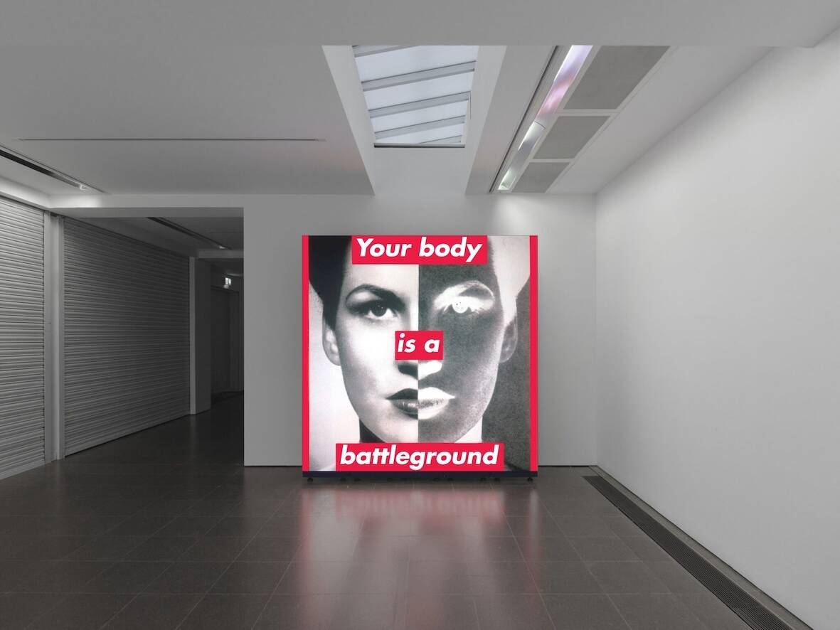 G: “This is what she said recently, ‘I would love if my work became archaic, if the issues that I raise were no longer there,’ but unfortunately that’s not the case, so that’s why a lot of these works are really evergreen. I was telling her how I am originally from Poland and in the past eight years we had a really right-wing government, and there was a lot of protests on the streets because of women’s rights being taken away from them. There wasn’t a protest that I wouldn’t go to. There were so many people holding ‘My Life is a Battleground’ translated to Polish because that’s been translated into so many languages and was used in so many women’s rights contexts across so many geographies for so many years, that it never, unfortunately, it never gets old. There’s a wallpaper in that room that states ‘Our people are better than your people’ and it goes on to say ‘Our shit smells better, we are clean…’ all these kind of consciously and bias things; her work is never issue-specific, it’s never made in relation to one event or one thing, but it’s always more of an ongoing commentary, it’s so much about the human stubbornness, the biases that we create, even the silences.”