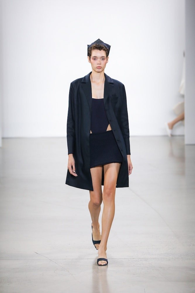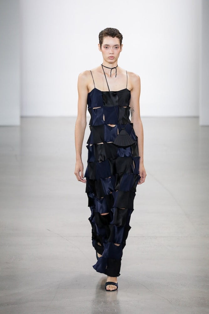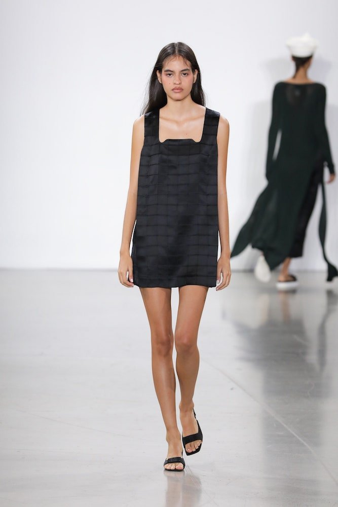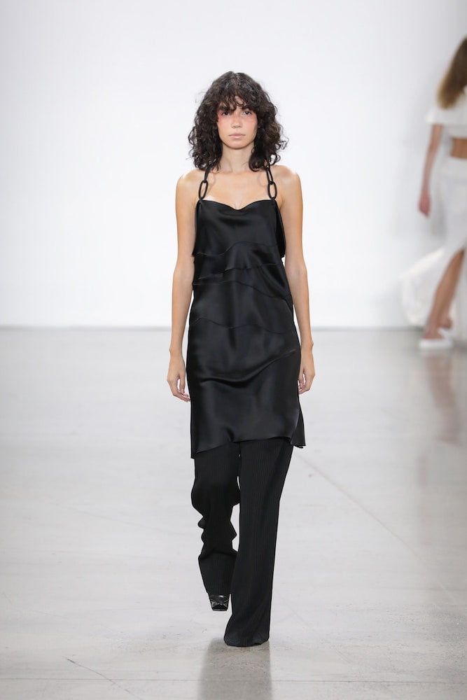 Kyiv-based label Bevza took us to New York’s Spring Studios for its latest SS22 presentation. Known for its muted colour palettes, sleek designs and a “less but luxe” brand aesthetic, Bevza’s sophisticated and tailored designs are a commonality in every collection. Inspired by archival closet staples and oceanic life, the brand’s SS22 collection comes packed full of simple yet elegant satin slip-on dresses and tops accompanied by seashell-shaped bras and sailor hats.