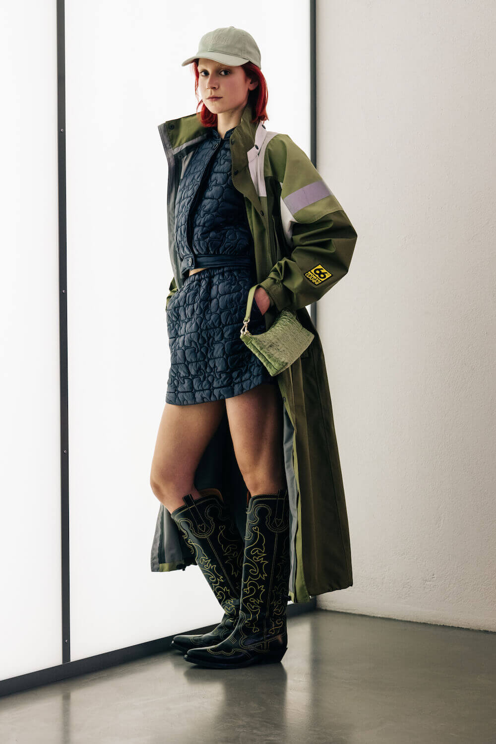 Ganni is partnering with Icelandic label 66°North for the fourth time, on an effortless, utilitarian ready-to-wear collection. Crafted exclusively from deadstock fabric and recycled materials. The earthy green and navy or black hues that work their way into the adjustable skirts, tracksuit and dresses riff off of the extremes of Iceland’s natural landscapes bringing to mind the Aurora Borealis and stretches of volcanic terrain. You can now shop the collection on ganni.com, 66north.com and in select Ganni and 66°North stores across Europe. EP