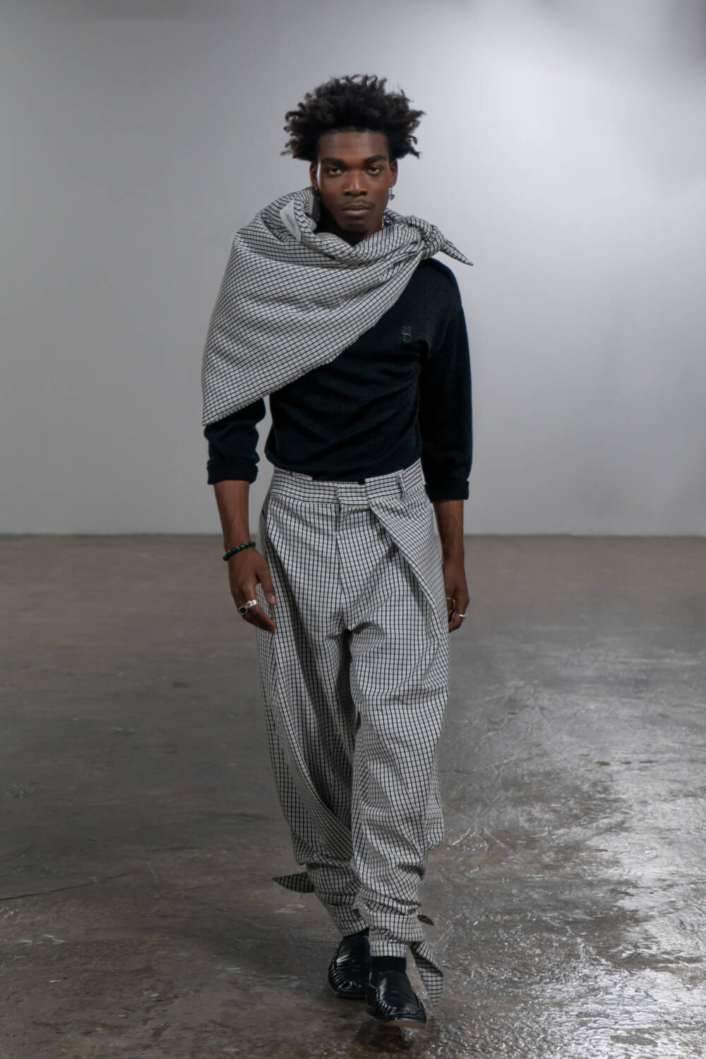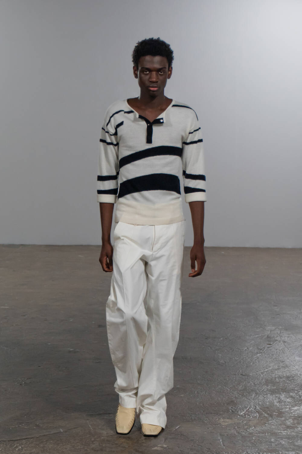 Inspired by archival footage of male Jamaican dancers, this collection’s Paris presentation transformed the runway into a stage for fluid, unconventional motion, with models gliding across the stage in choreographed twists and turns.