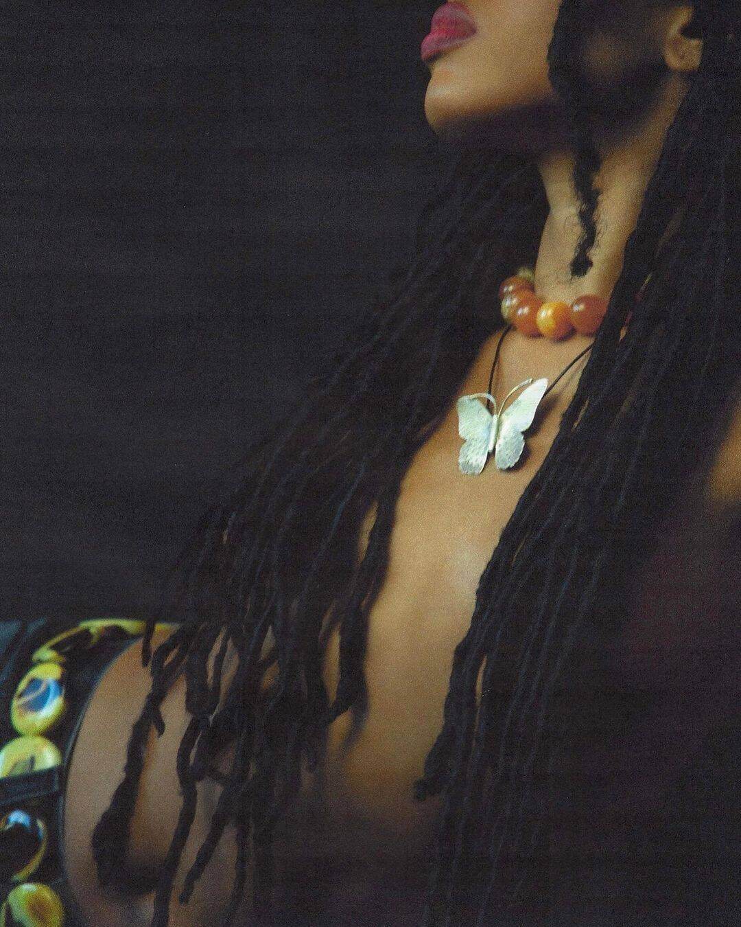 Of course, with the brand gaining celebrity attention since its start in 2021, Sade’s process is slightly different now. She no longer relies on video calls with her mother but negotiates with Arizona-brd lapidaries, selecting fossilised and ornate materials packed in just one box at a time. Despite the growing popularity, Sade is insistent on keeping her creative process intimate and leads every step. Her devoted love for the craft is what makes each individual item so personal to its wearer. No piece is an exact replica – the universe doesn’t create copies in pigment and patterns when it comes to raw stones, crystals and shells. The item you receive truly is your very own, placing importance on the creative visionary who is reconfiguring Mother Nature itself.
