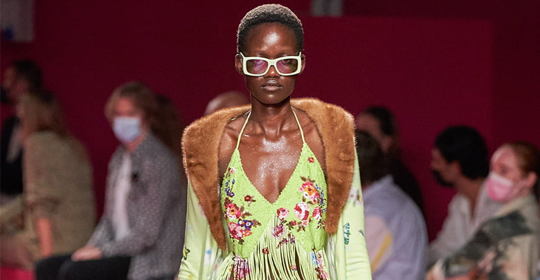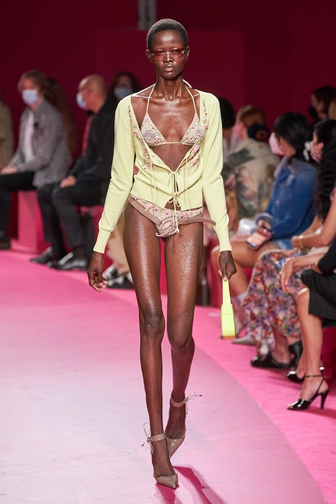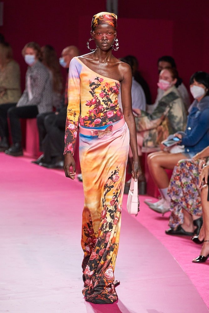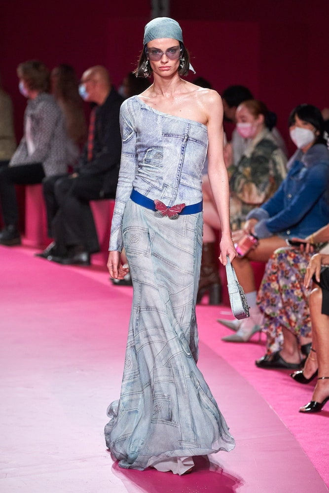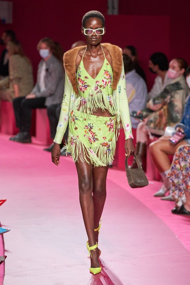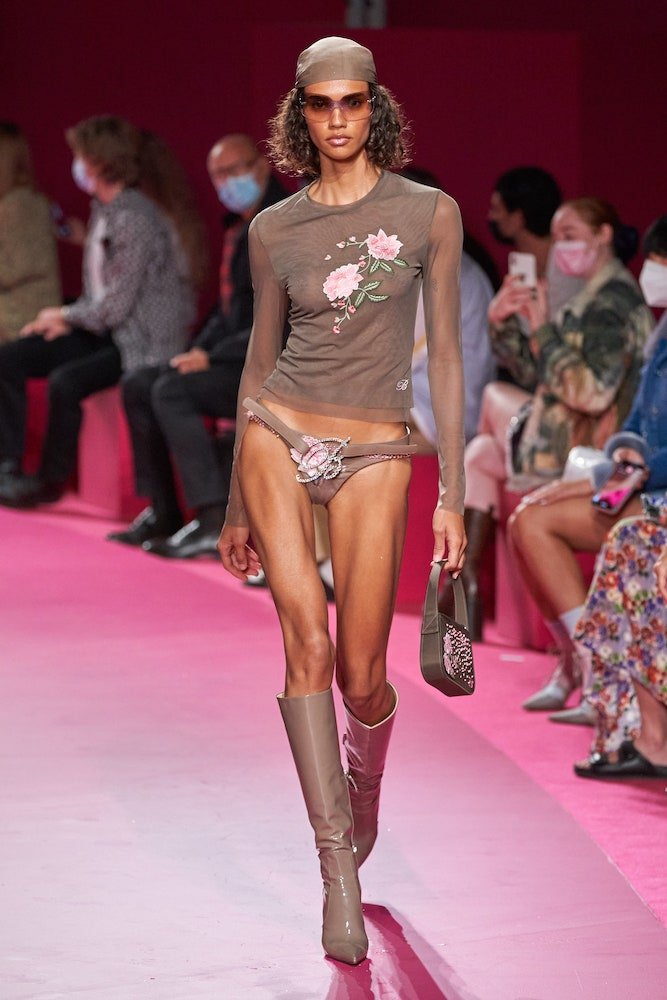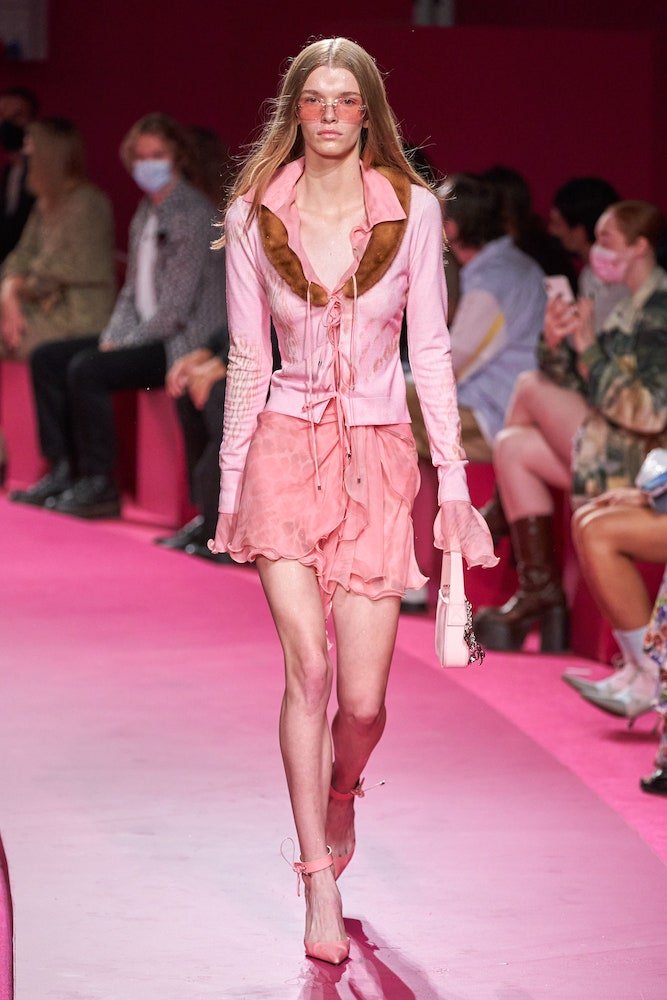 Nicola Brognano’s Y2K-infused vision for Blumarine has been a soothing balm for girls who wanted to dress up and let loose through the pandemic. And whilst they might’ve only been able to do that in the confines of their apartments, the brand’s return to a live catwalk – the first since Blumarine’s butterfly belts and faux-fur trimmed cardies became go-tos for the likes of Bella Hadid and Dua Lipa – marked a ramped-up return to the dancefloor.