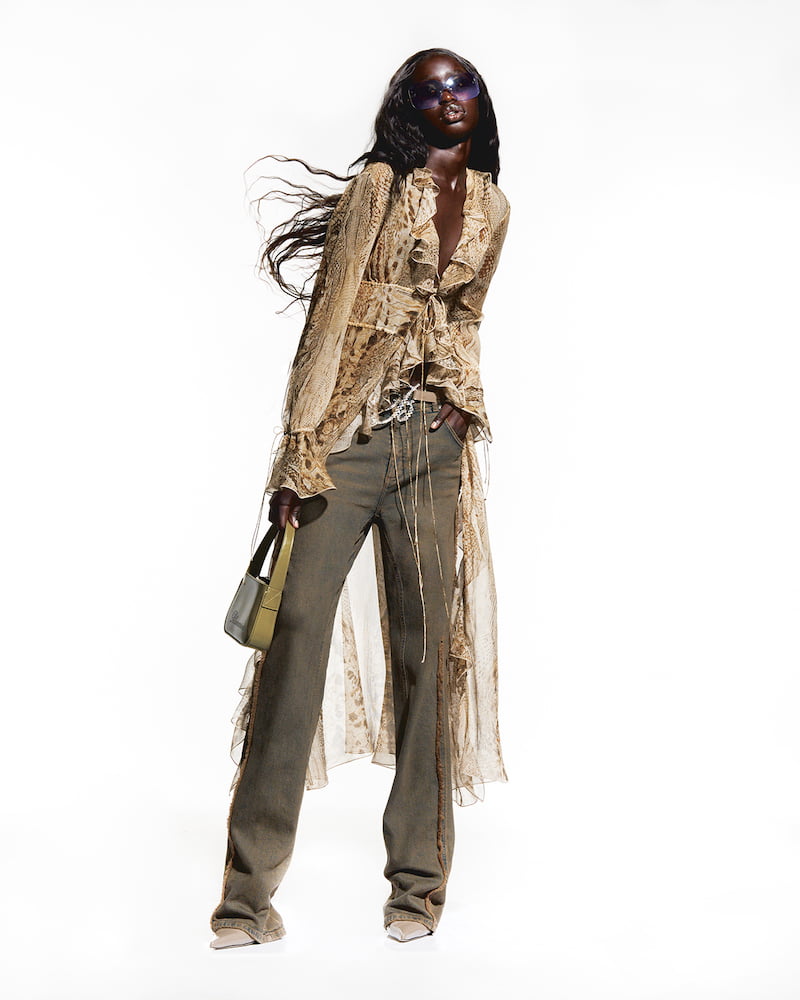 Whether its low-slung trousers with bedazzled butterfly belts, barely-there mini-dresses, or torso-hugging, lime green blazers, Blumarine is a gateway to forgetting your troubles and pretending you’re a 2000s heiress instead – making the perfect sort of garb for stumbling out of a club in, come July 19. Girls just wanna have fun, and they wanna be wearing Blumarine whilst doing it.