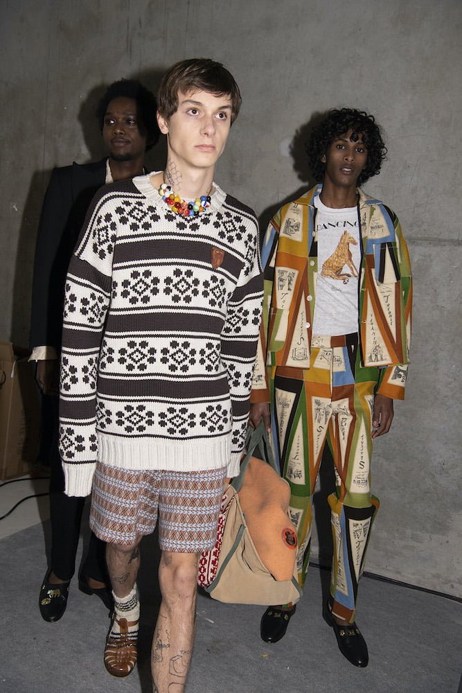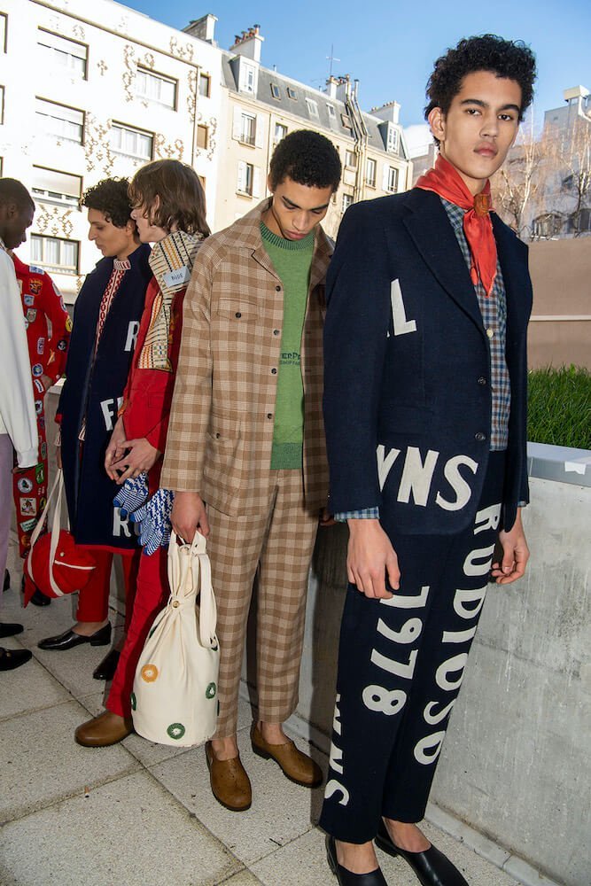 To rely on a much overused expression, Emily Adam Bode offers a lifestyle. You don’t necessarily need to be interested in fashion or follow Paris Fashion Week to desire the garments she makes. They’re nostalgic, poetic and beautifully made, using mostly found objects and vintage textiles which are then reworked through traditional techniques into whimsical menswear. Titled The Education of Benjamin Bloomstein, after Bode’s friend and collaborator behind the design studio Green River Project, the Bode AW20 collection explored the imagination of her work in the great outdoors, as told through Bloomstein’s adventurous life. Referencing camping, fishing and Boy Scouts’ uniforms, the garments carried a decidedly more functional note than their romantically fragile discourse.