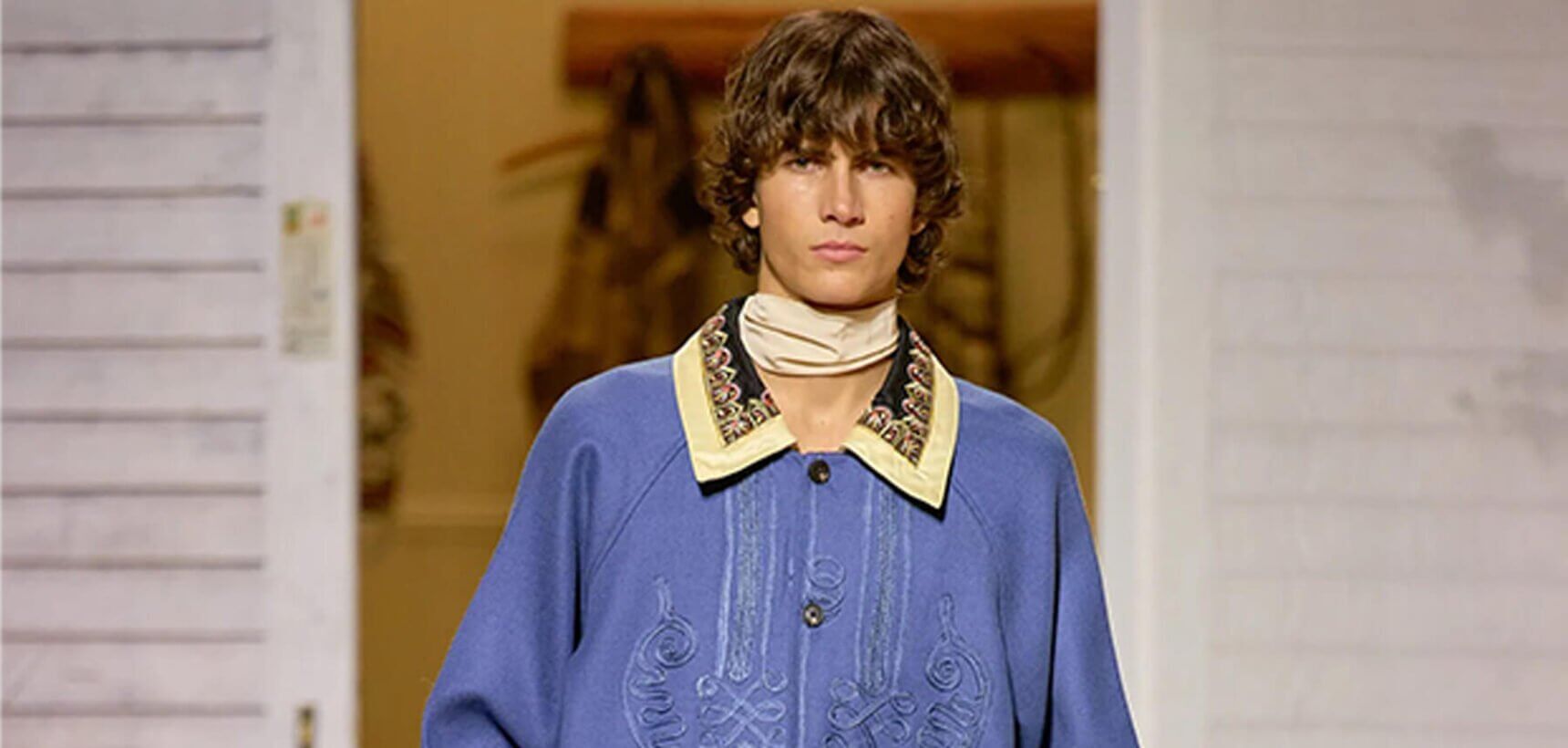 The enchanting scene of a shingled Cape Cod home served as the backdrop for Bode’s co-ed AW23 catwalk at the Theatre du Chatelet. Unfolding amid a yard with a picket fence, a garden gate suggesting the sea in the distance, Emily Adams Bode Aujla’s show felt utterly delightful.