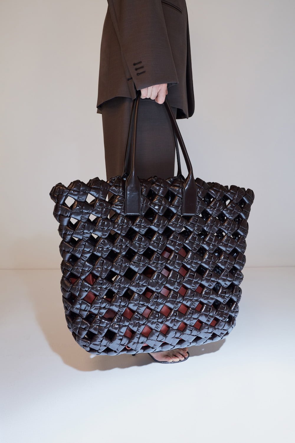 These clothes mark the first year of the new decade, and surveying the Bottega racks, you can feel a distinct aesthetic shift away from the overt decoration that has dominated fashion, into something disciplined and designed. The rigours of craft, cut, line and construction are plain to see here at Bottega Veneta. The Matrix toughness of Lee’s catwalk debut softened for this showing.