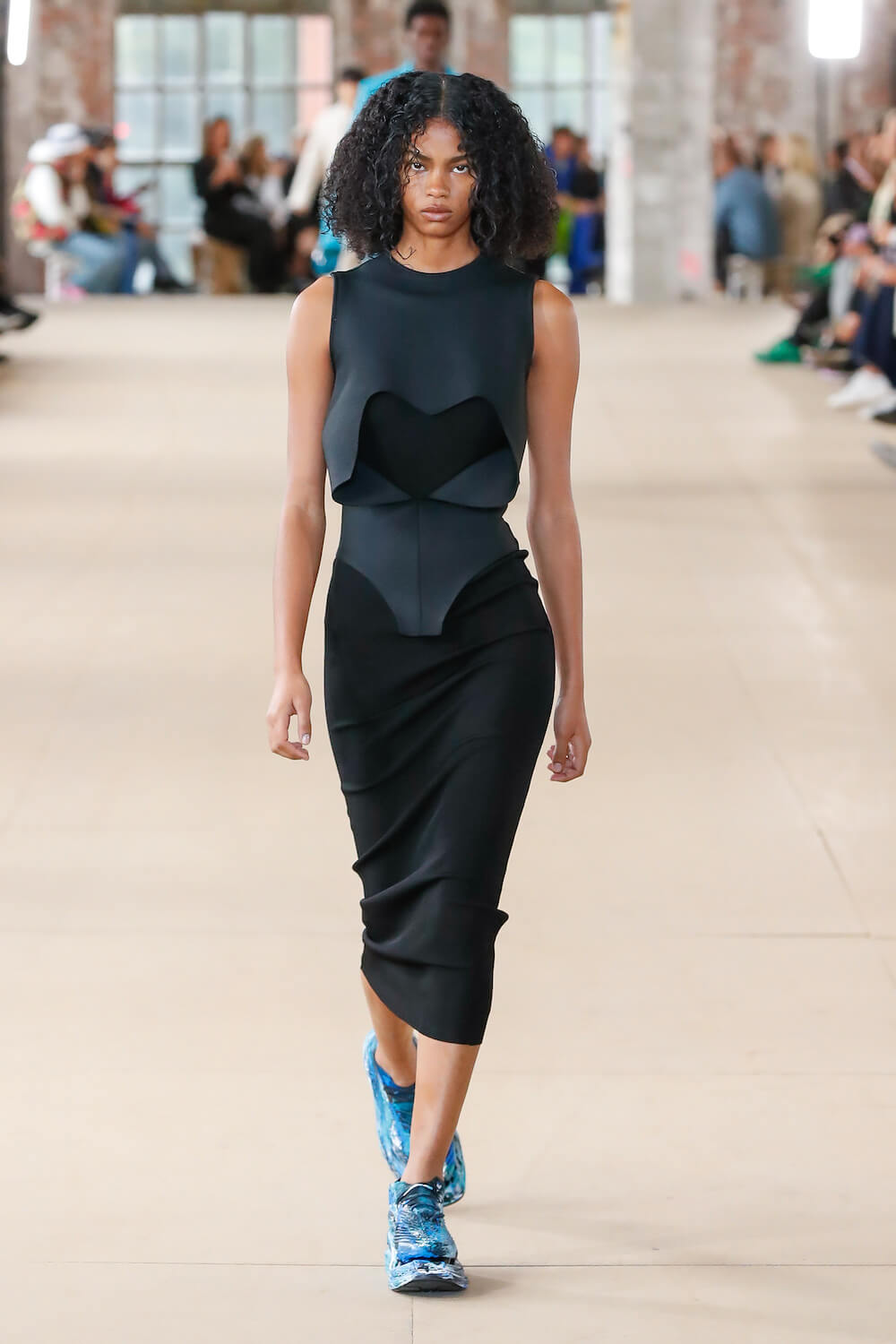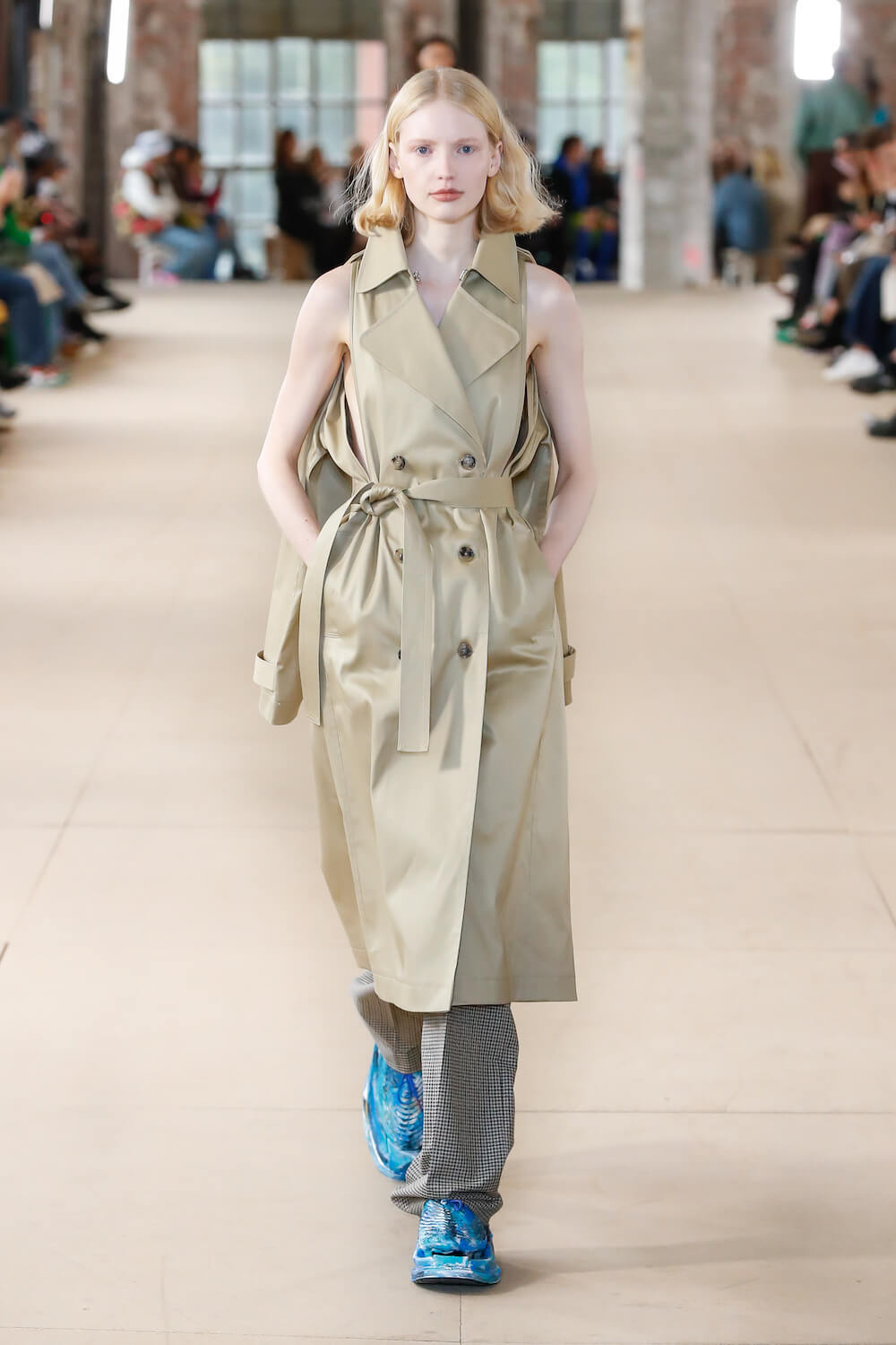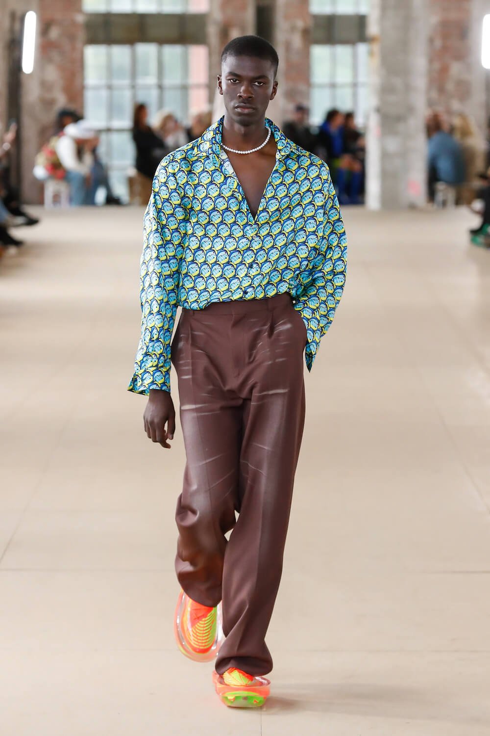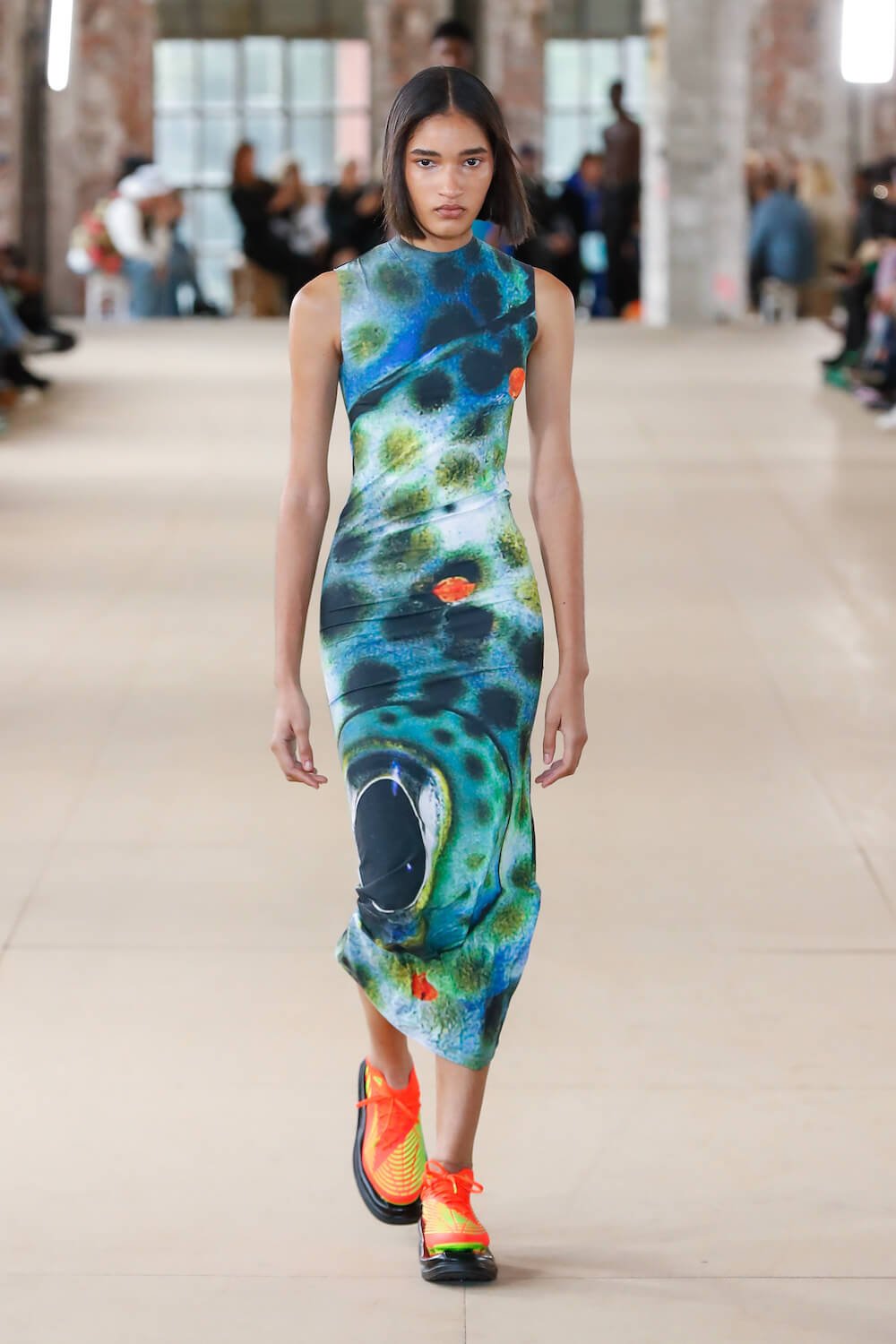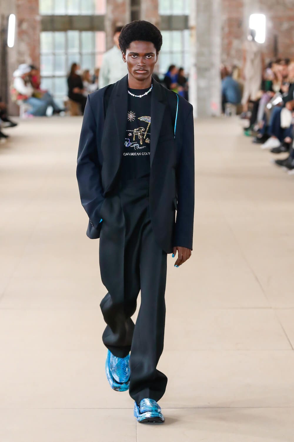 Botter collided with Notpla too, a start-up focussed on formulating home-compostable packaging. For this collection they introduced edible water-bubbles made from seaweed and plants. The trainers were a point of pride, fitted on water-bubble soles so that they felt as if they were floating.