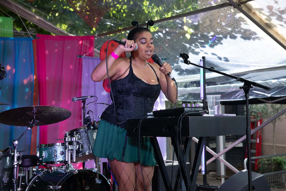 With a 500-strong capacity, the festival was divided into three sections, each hosting an assortment of talks, workshops, comedy and theatre performances, installations, live music and DJs. The aptly named River Stage, whose banks were lapped by the Thames and framed by the skyline across the water, billed musicians like the French-Senegalese singer Anaiis and a b2b with homegrown DJs Bushbby and Papaoul, both of whom have played a critical role in platforming Latinx creatives and bringing the sounds of Latin America to London’s grassroots club scene. The programming of the Piano Room centred around the concept of a work-in-progress, with all the acts trying out their material in performances that were at all different stages of development. The Marketplace hosted a series of talks from various grassroots collectives, including discussions on what we can learn from the past from Skin Deep Mag and reflections on resilience and the histories of social movements from MayDay Rooms.