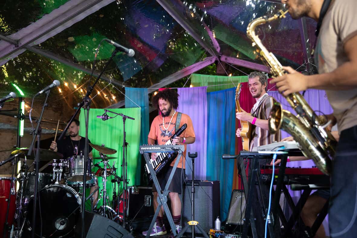 The theme for curating the lineup, Blake says, was ‘desire lines’ itself – “trying to go where you want and do what calls you in your life.” Being selective was also integral to the process, given the much shorter time frame afforded to Desire Lines compared to the three days Brainchild had with its original format of a camping festival. However, Blake and the Brainchild team weren’t deterred by having less time than they used to. In fact, they looked at it as an opportunity to be even more purposeful, paying homage to the community around them with every precious minute they had. Conversations around financial pressures, burnout, staying connected and building resilience all informed the booking process, with the team viewing the line-up as a means of bringing in core members of the Brainchild family as well as fresh voices. Artists like leftfield indie rock band Lo Simple were billed for the first time, whereas for New York-based musician Duendita and the “profoundly stupid and stupidly profound” theatre duo Hotter Project, “it was an opportunity to reconnect,” says Blake.