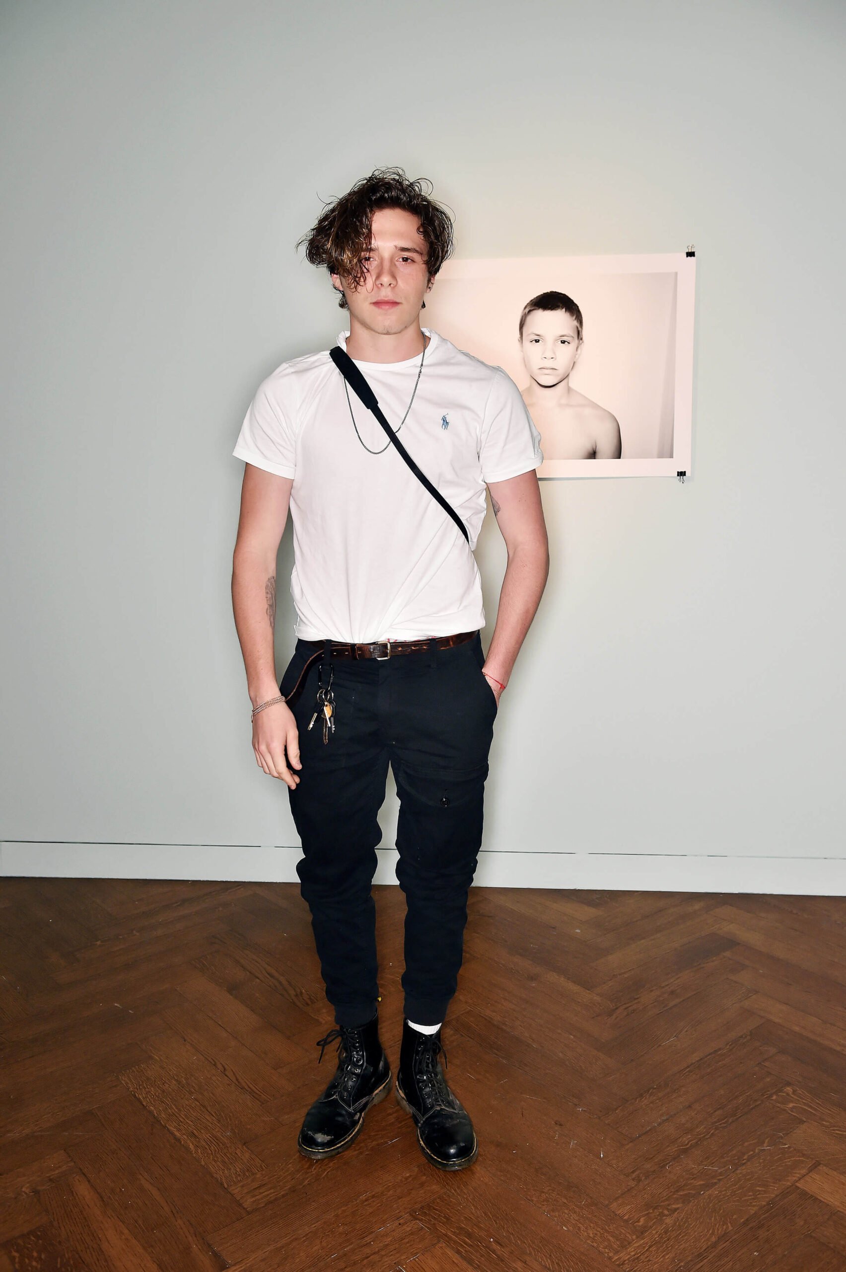 Yesterday, though, was about the launch of his new book “what i see” (sort of does what it says on the tin), celebrated by the whole Beckham clan descending on London’s Christies for the opening of Brooklyn’s accompanying exhibition, which was put on in partnership with Polo Ralph Lauren. Thus, our young snapper was suitably dressed in a Polo Ralph Lauren varsity jacket and simple white tee, adopting his parents’ proclivity for chic chic chic.