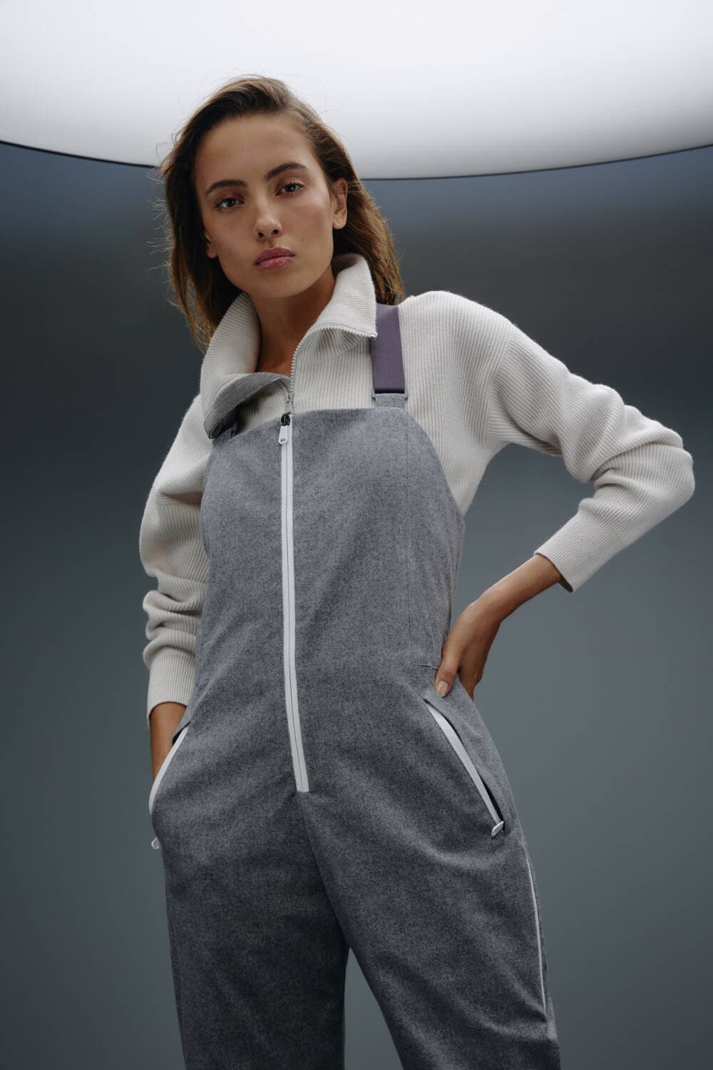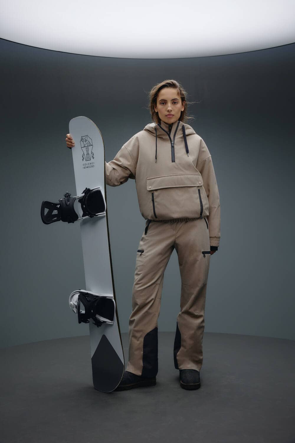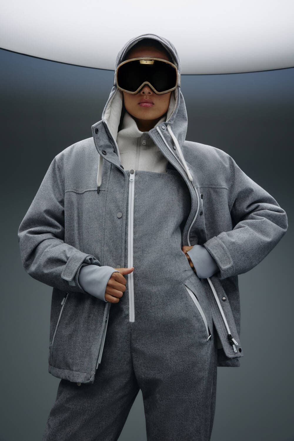 Customers have a versatile range of products to choose from, with the capsule offering both garments for both men and women, ranging from jumpsuits to boots to matching sets. An understated colour palette of grey, beige, maroon and black make the pieces perfect for those wanting to look sleek on the slopes.