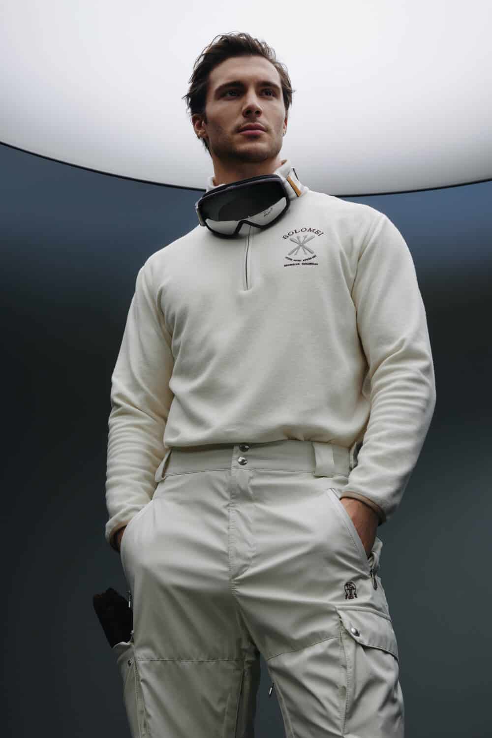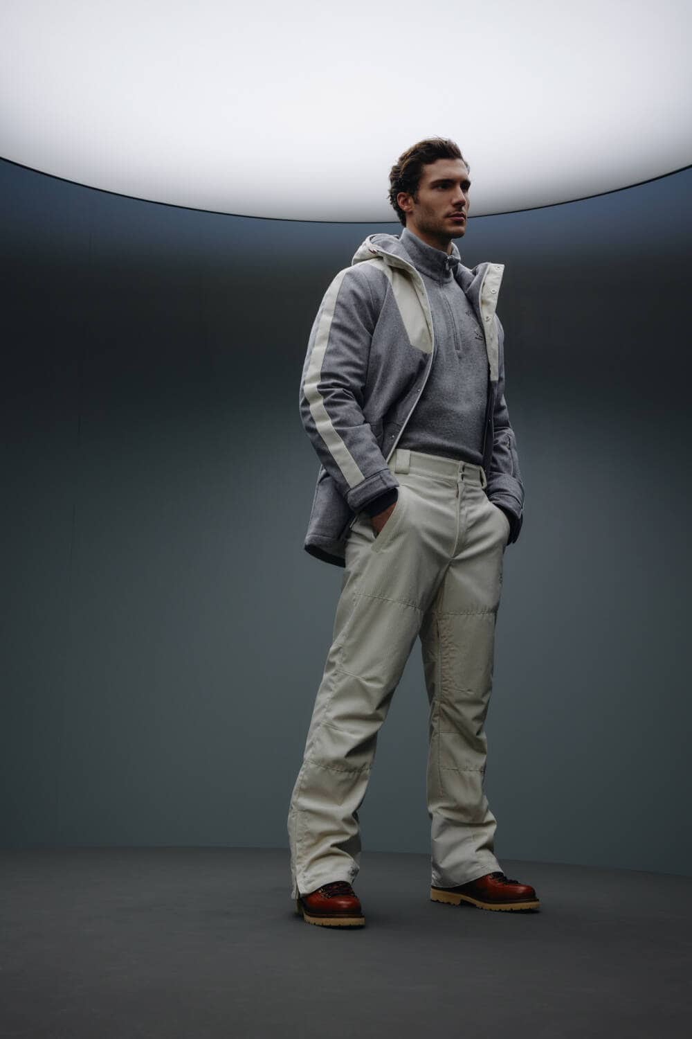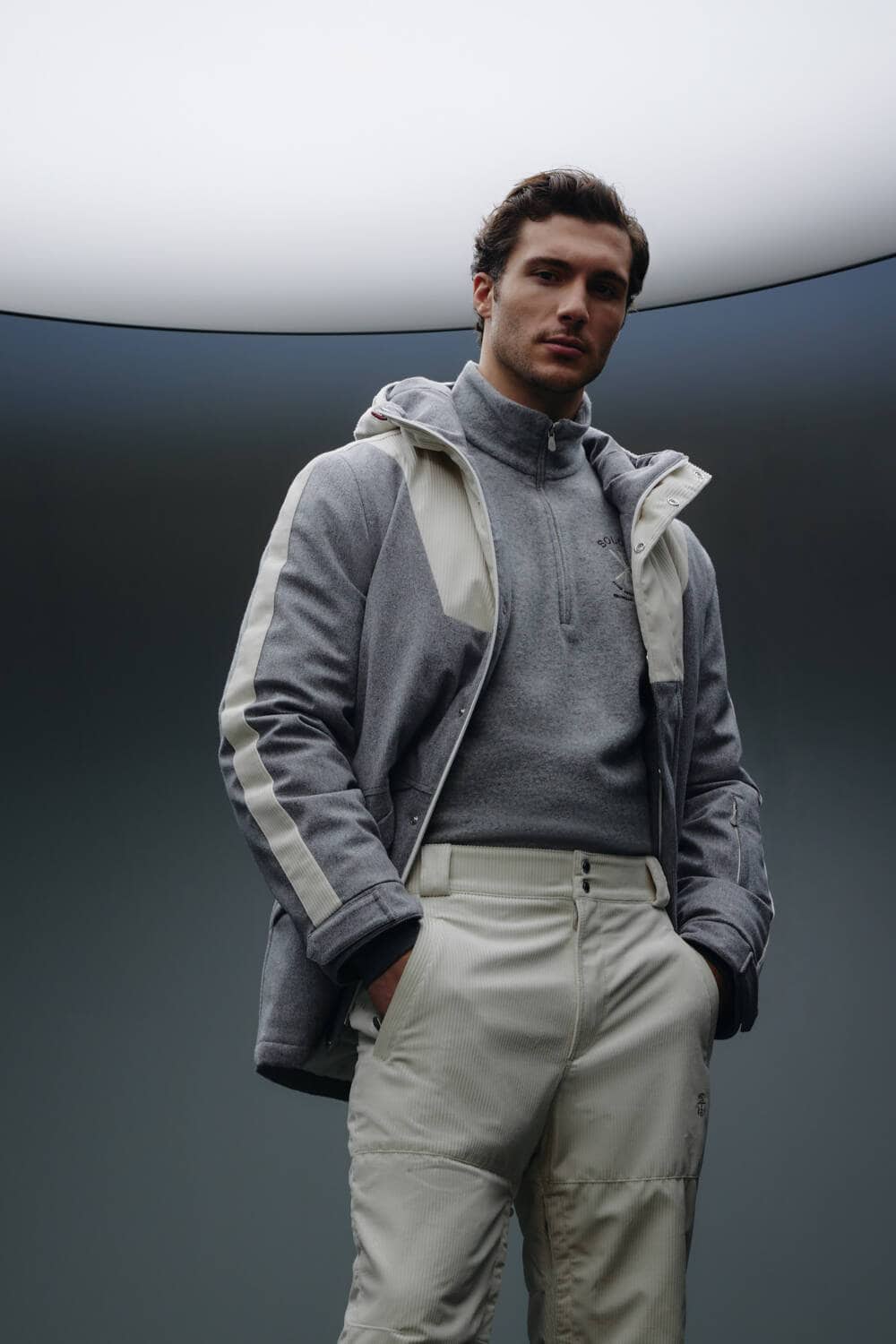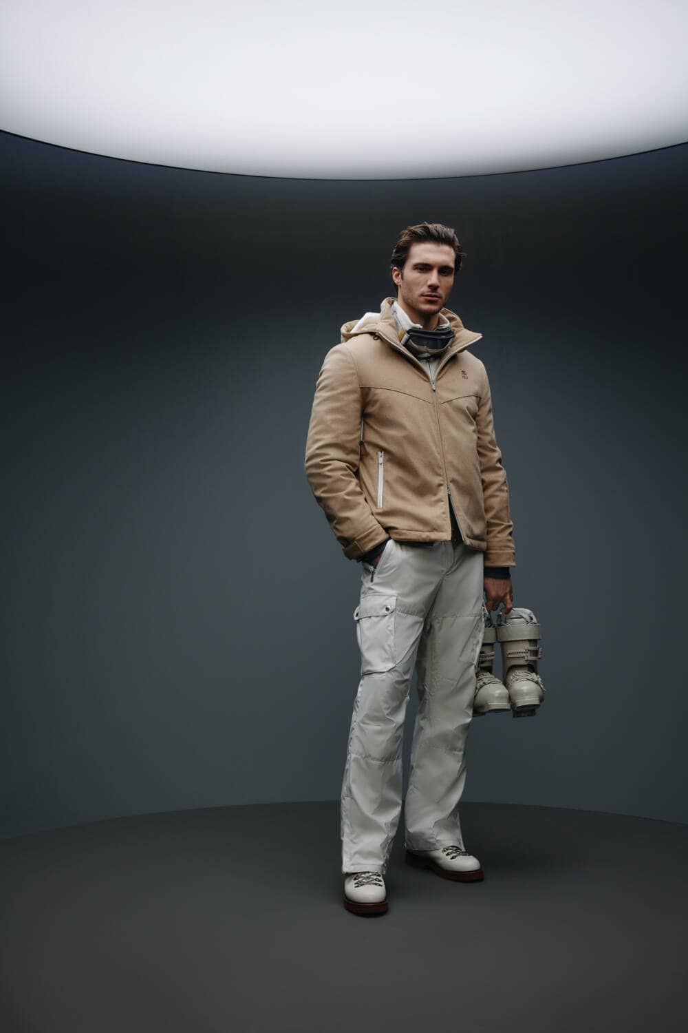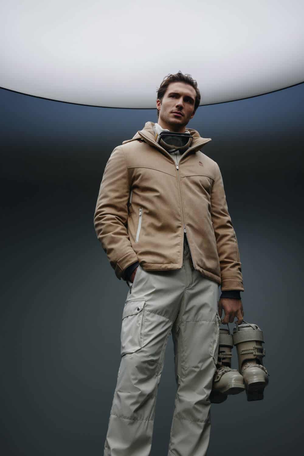 Indomitably committed to creating garments of the highest quality, classic Cucinelli fabrics such as cashmere are seamlessly integrated with materials that are both insulating and water-resistant. Equally equipped for those moments of much-needed rest and relaxation, the pieces prioritise comfort as well as function, incorporating Thermore® padding for that perfect, cushy ‘fit. A soft flannel is also deployed throughout, edited with a polyurethane membrane to ensure the wearer can tackle any mountainous terrain with ease. Bolstering each piece with these technical materials, the brand reaffirms its commitment to sustainable production and making clothes that last.