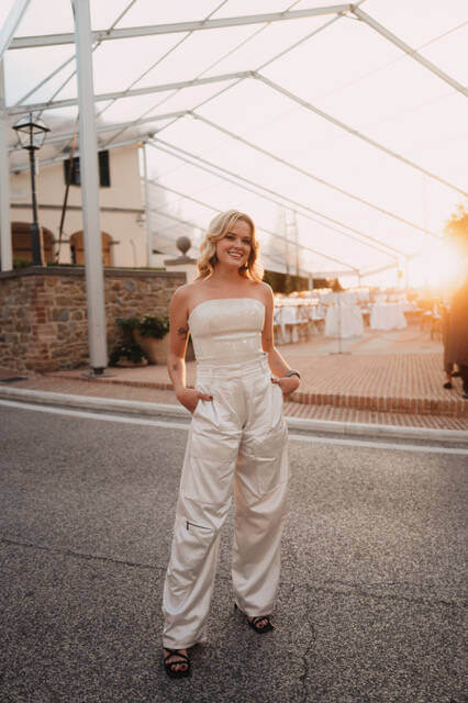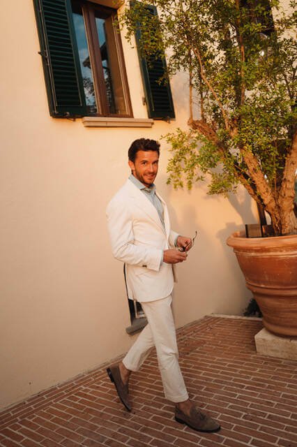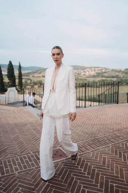 The event was marked with a retrospective presentation of Brunello Cucinelli’s soft and sinuous looks from across the years. Guests sat in a classic Mediterranean amphitheatre in the heart of Solomeo under the warm embrace of dusk. Celebrations continued into the night in the Hamlet courtyard with a performance from Italian actors, Claudio Santamaria and Ilaria Genatiempo, who recited passages from Cantico No.4 of La Divina Commedial, followed with a candlelit dinner in the brisk evening air. All of this was framed by the gorgeous landscaping including cypress and olive trees and architectural features such as brick facades, stone masonry, and traditional shutter windows. You couldn’t get more Italian if you tried.