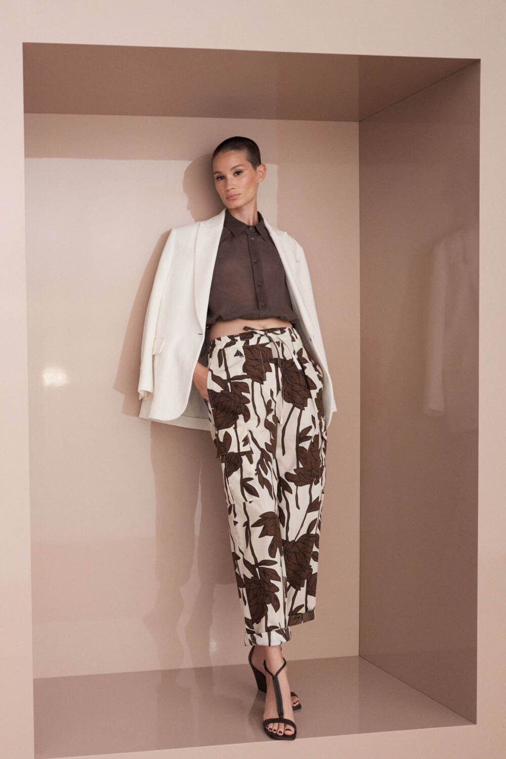 Fabrics were airy, with informal materials like denim and linen elevated by considered cuts and tidy silhouettes. The offering was kept playful with its shaping, with cinched waists and plunged necklines appearing throughout. A healthy spattering of silver gave the collection a fresh and bold undertone. Retaining a detail-orient, pieces were created using advanced embroidery techniques, referencing a bold floral print that popped up throughout. Trousers were edited with a masculine flare, generating boxy, loose-fitting and flared garments that contributed a sense of contemporary opulence.