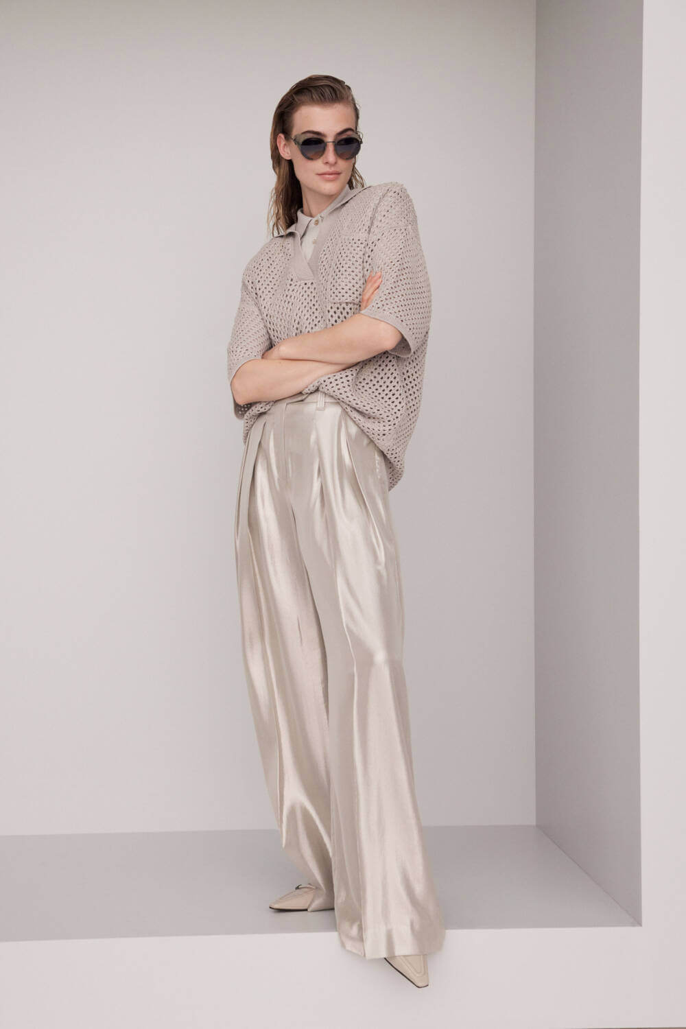 Accessories were seamless but elevated, with a variety of shapes and sizes on offer to highlight the collection’s multi-dimensionality. Topless baseball caps and square-toed flats reminded onlookers that the Brunello Cucinelli woman is cool but chilled out. Holding firmly onto its king of quiet luxury crown, Brunello Cucinelli’s seasonal offering proves why he had it in the first place.