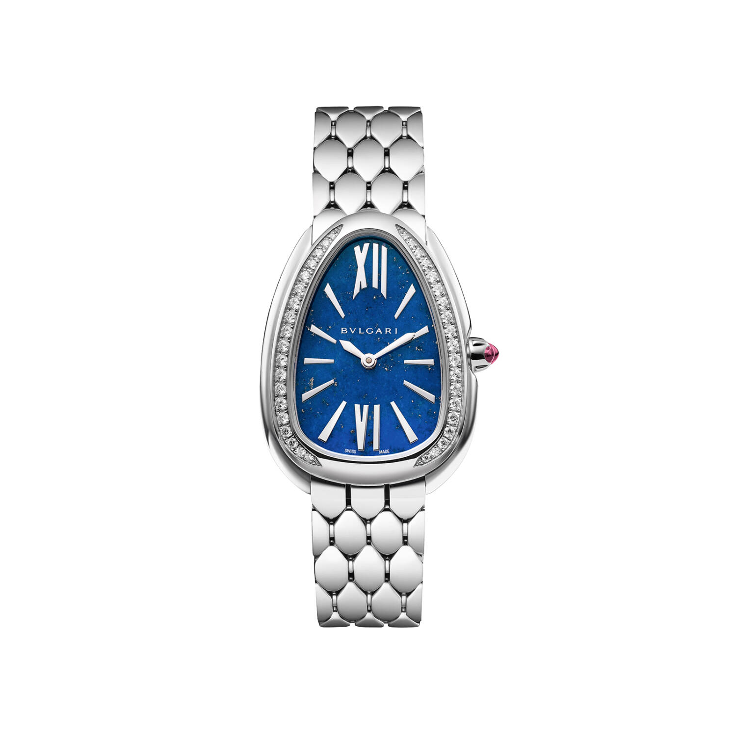 As part of its centenary anniversary celebrations, Watches of Switzerland has tapped Bulgari to create an exquisite new timepiece. Arriving alongside the men’s Bulgari Octo Roma Automatic, the 33mm Serpenti Seduttori is an enchanting women’s wristwatch well-worth the price. Powered by a Quartz movement, the drop-shaped dial is evocative of the night sky, as encased in steel and set against the arresting brilliance of 38 diamonds is an ultramarine expanse of mesmerising lapis lazuli. At the crown sits a striking cabochon-cut rubellite gemstone while etched across the case back is a custom “Watches of Switzerland 1924 – 2024” engraving that gives it a personalised feel. Echoing Bulgari’s iconic Serpenti Scaglie motif, the flexible Steel bracelet and folding buckle feature a hexagonal pattern inspired by the scales of the serpent. Available in limited quatities, don’t forget to set your watch to Bulgari time.