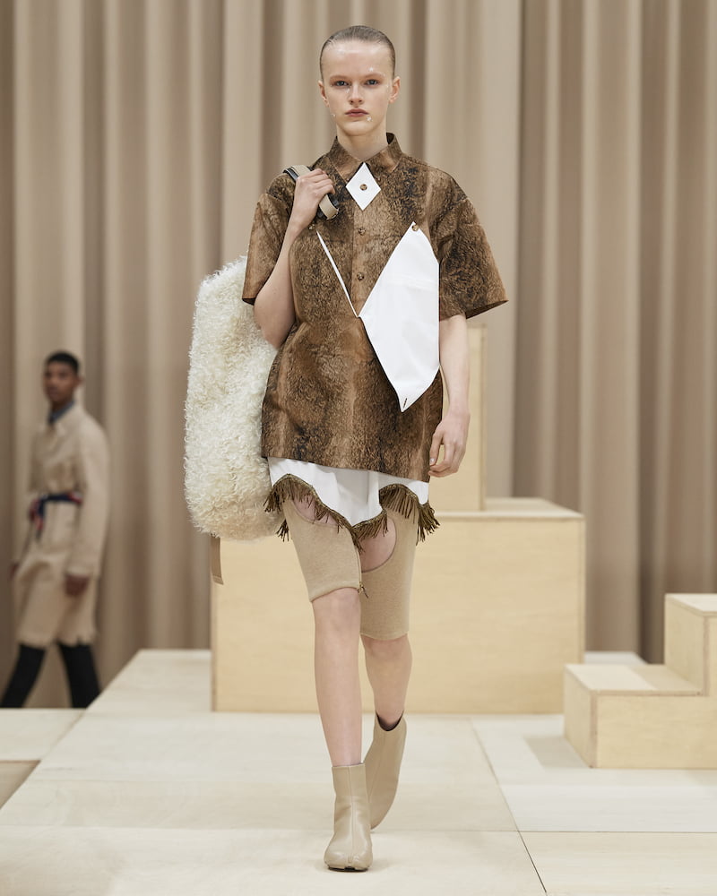 Those looks added to the general sense of Tisci defying convention to follow his own rules. He’s always championed the marginalised and this collection was a tribute to those who proudly stand outside convention. He described it as, “A homage to the relationship between humanity and nature, where we can break free and come together to discover new forms of expression. It’s for those who are defining their own path, whose strength and energy have inspired this Burberry collection.” This was a startlingly experimental collection full of new forms, new cuts and new ideas for how to wear things.