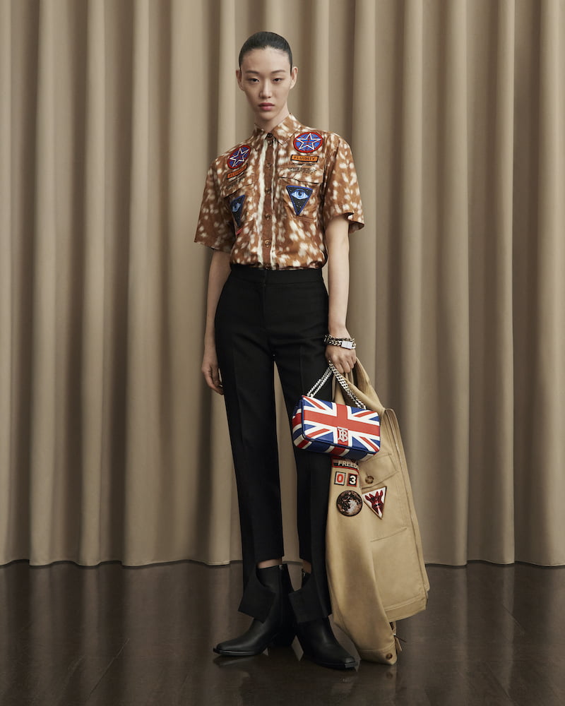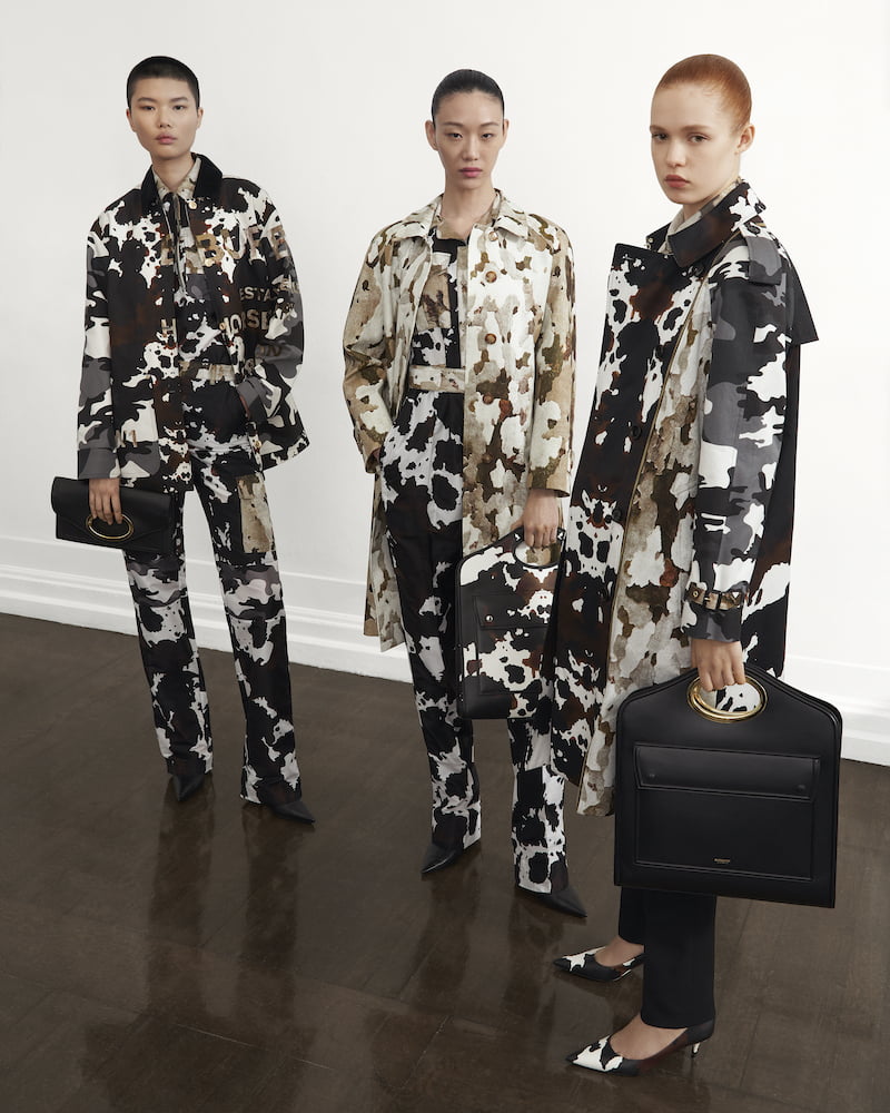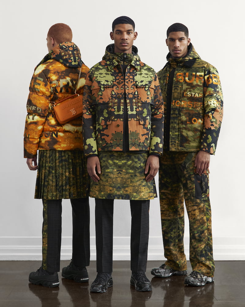 “This is my uniform for the outdoors,” says Burberry’s Riccardo Tisci, whose latest offering for the great British house, is a brilliant melding of his signature romanticism with his love of utility. This is a world where camo and florals live as equals. Oversized trenches, parkas, car coats and cargo pants come in tempered camo-print. Field jackets and joggers explode with florals.