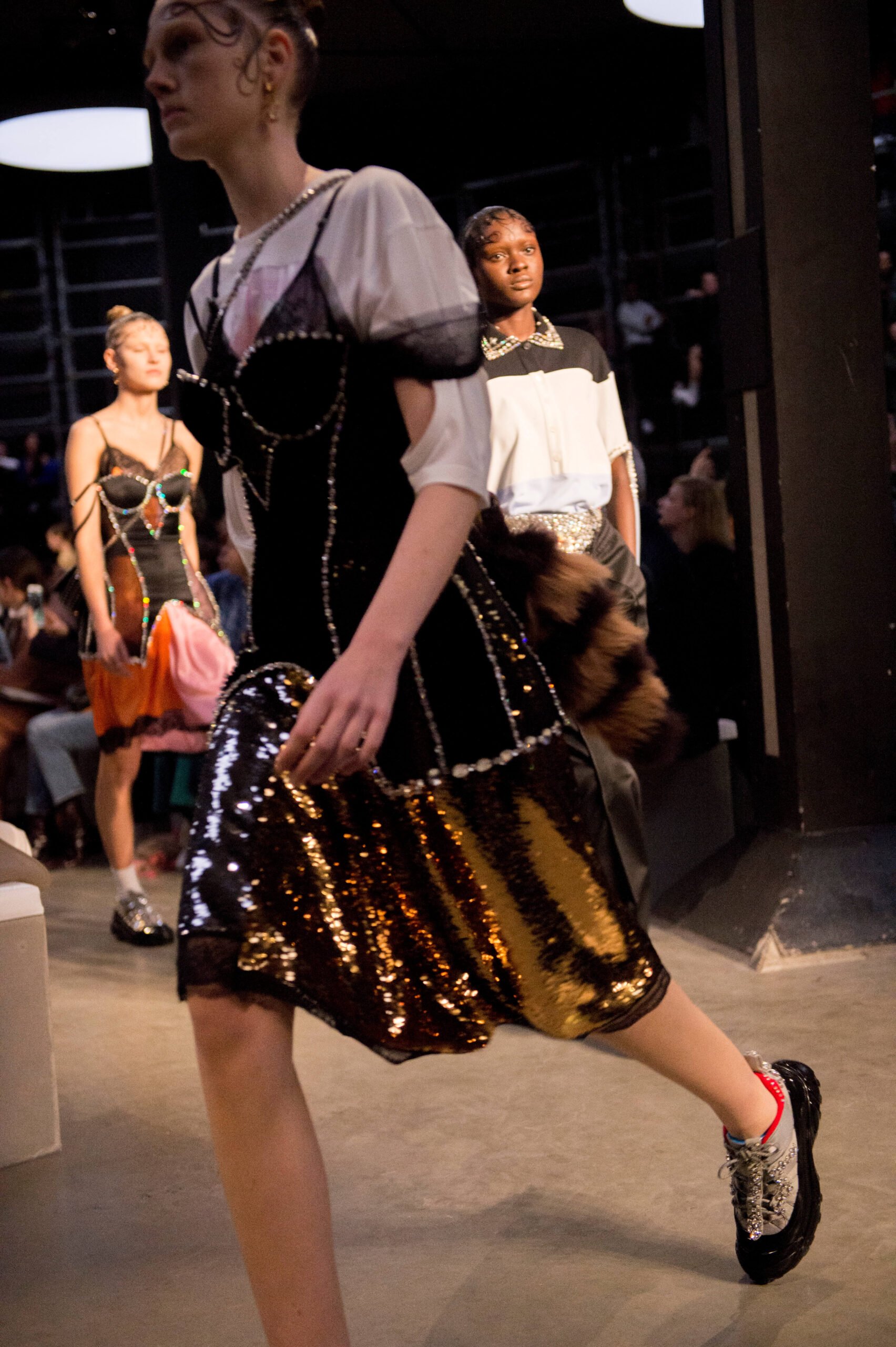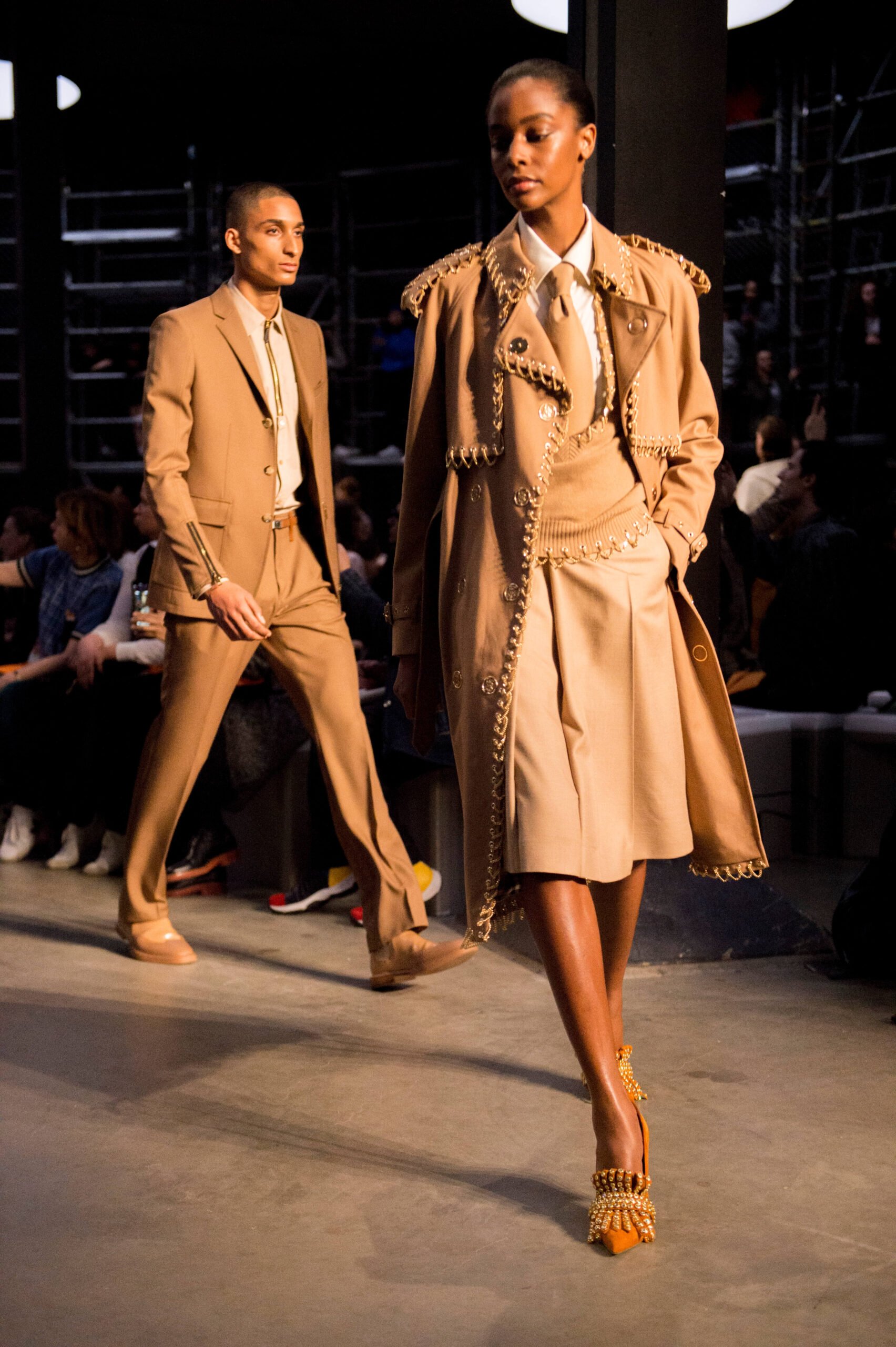 Riccardo Tisci’s Burberry models strode down the runway with such speed and purpose you felt they had somewhere very important to get to. The future waits for no one. Especially in fashion. Tisci is fast forwarding Burberry into the 21st century where streetwear and luxury are happy bedfellows and beige is the new black. Inside the concrete confines of the Tate Modern’s Tanks, Riccardo Tisci’s vision for Burberry came into view. Like his debut, his second catwalk show had four distinct archetypes: Boy, Girl, Lady and Gentleman – with the kids kicking off the show.