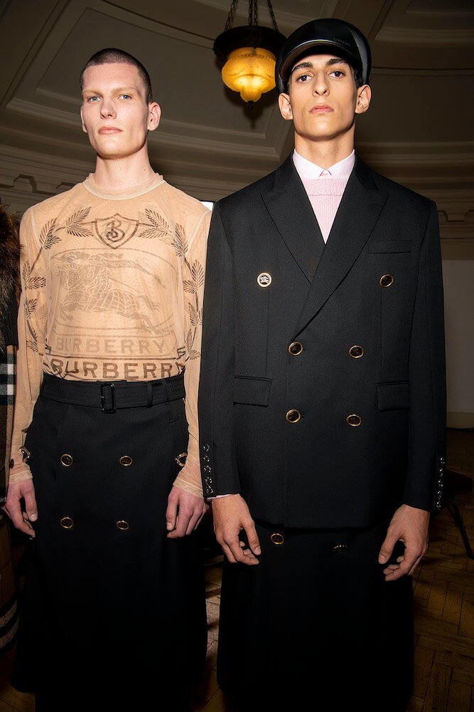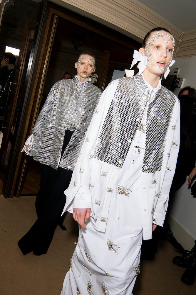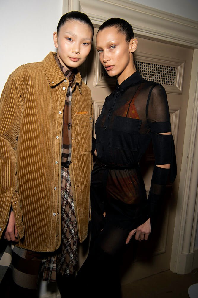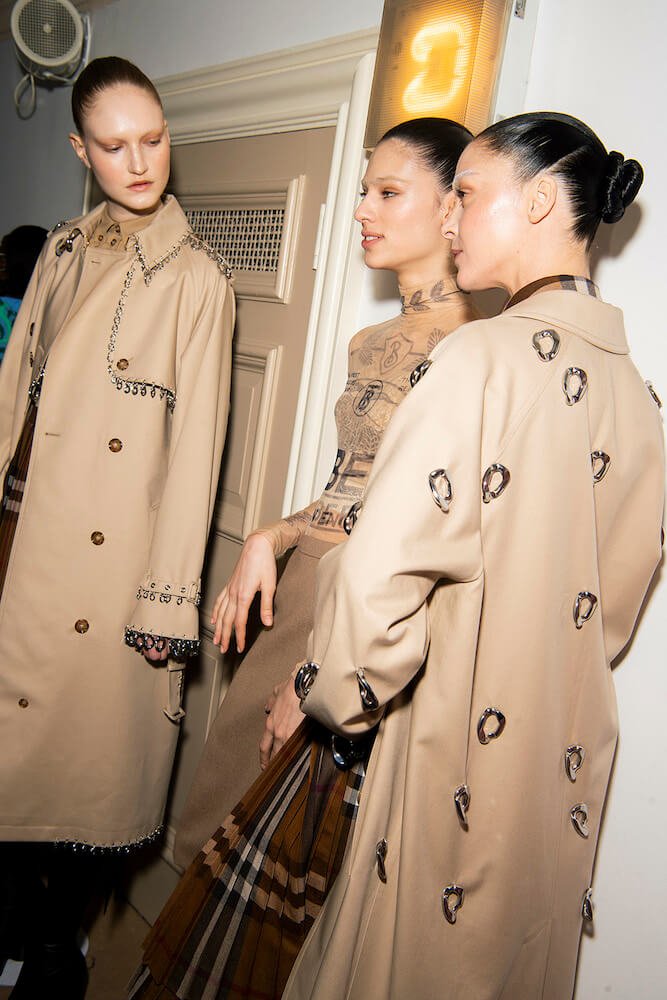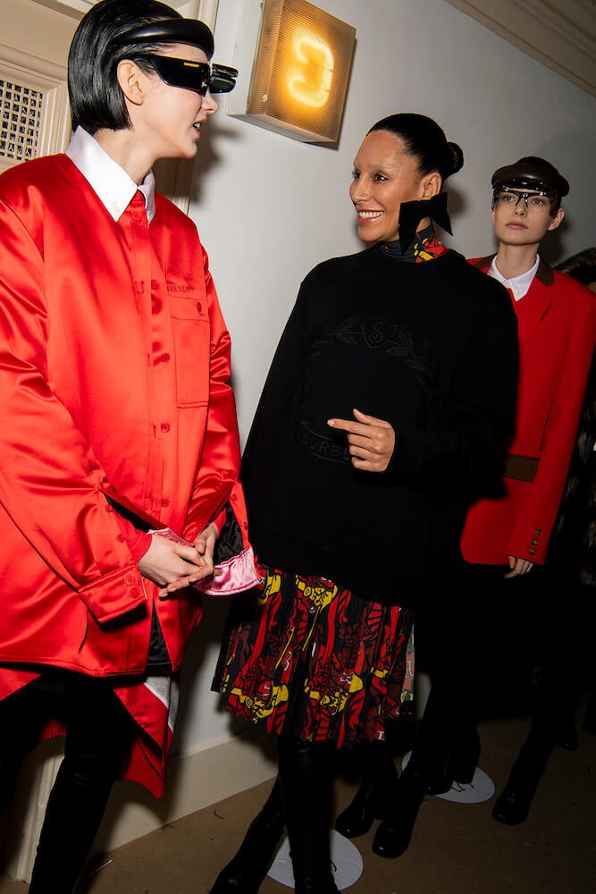 “The collection embodies an intangible essence that is Britishness, a unique fusion of honouring the beauty of the past, whilst also remaining focussed on the future with thankfulness, hope and love,” said Tisci in a statement. His staging also defied convention. There were no seats, instead the audience clustered around circular tables set with the crystal glasses and cutlery as if for a formal dinner. A choir accompanied by the London Contemporary Orchestra performed Phillip Glass, Michael Nyman and Max Richter compositions as models Irina Shayk, Mariacarla Boscono, Gigi and Bella Hadid, descended from a gallery and walked over the dinner tables. It was thrilling and strange and stunning – pure fashion theatre.