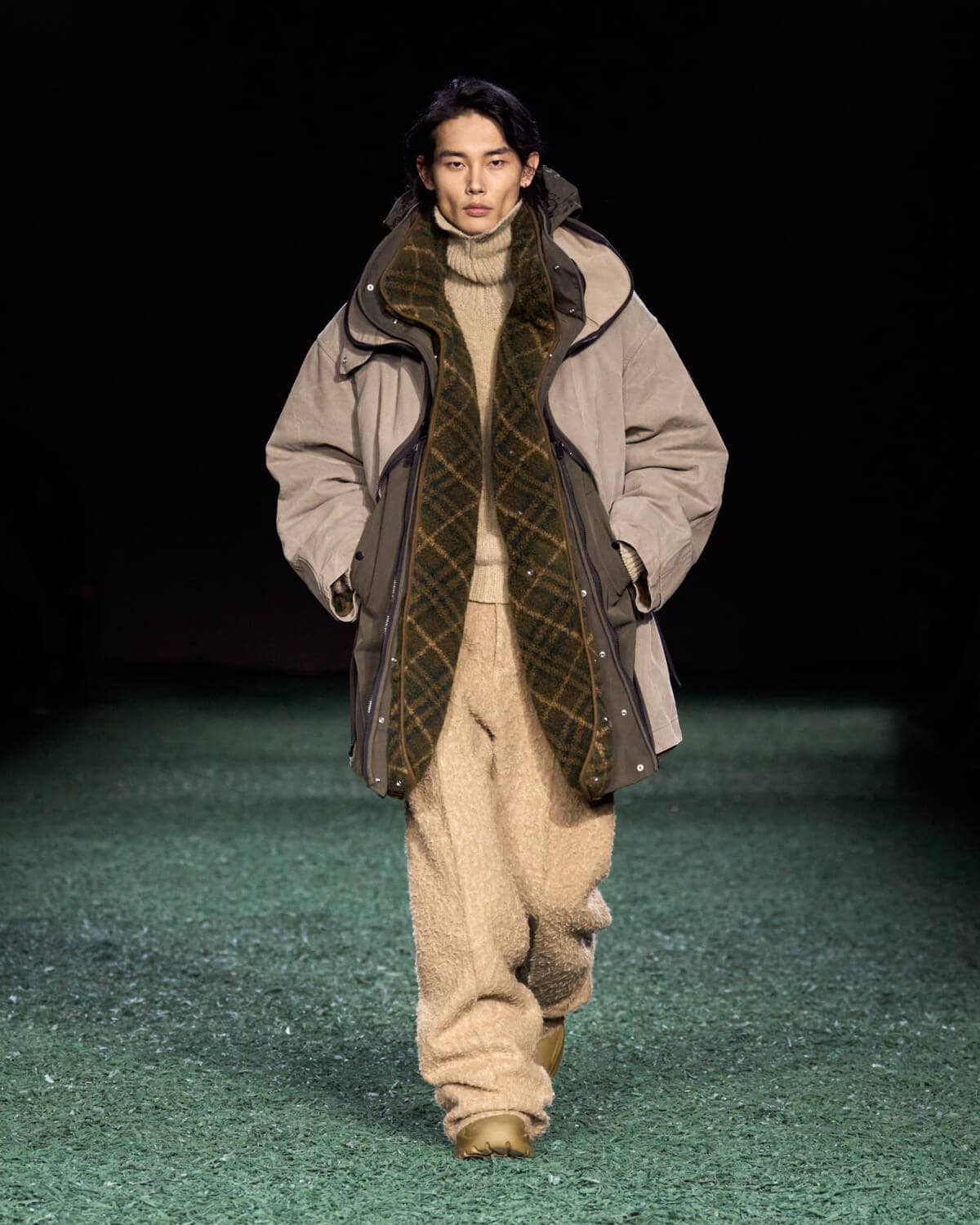“I wanted this collection to feel warm and protective,” he said. “There’s a sense of craft in this collection. We began in the Burberry archive and the mills of Lochcarron and Donegal. I wanted to take a traditional approach to the fabrics and how each piece is made. Craftsmanship has always been at the heart of design.”