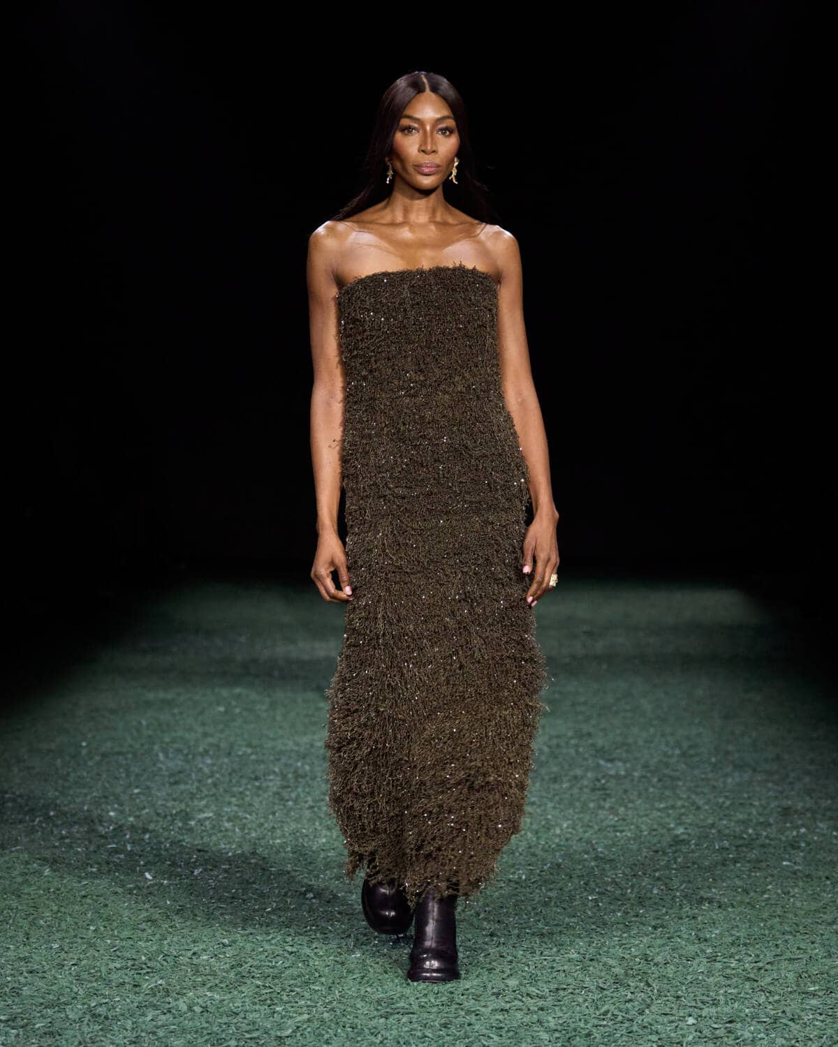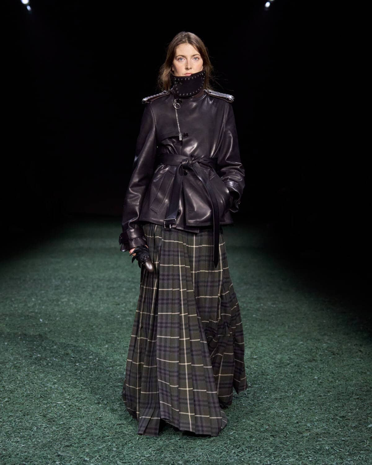 After the show, the designer spoke of doubling down on Burberry’s British identity. The brand’s most prized possession, it’s also the thing that gives it a standout in the crowded luxury market, argues Lee. He expressed it on the catwalk with stylish, ruggedly practical clothes and accessories, from elongated biker jackets and enveloping padded parkas to cosy duffles, maxi kilts, shaggy knits and tweed suiting. Even the gowns were inspired by the texture of moss.