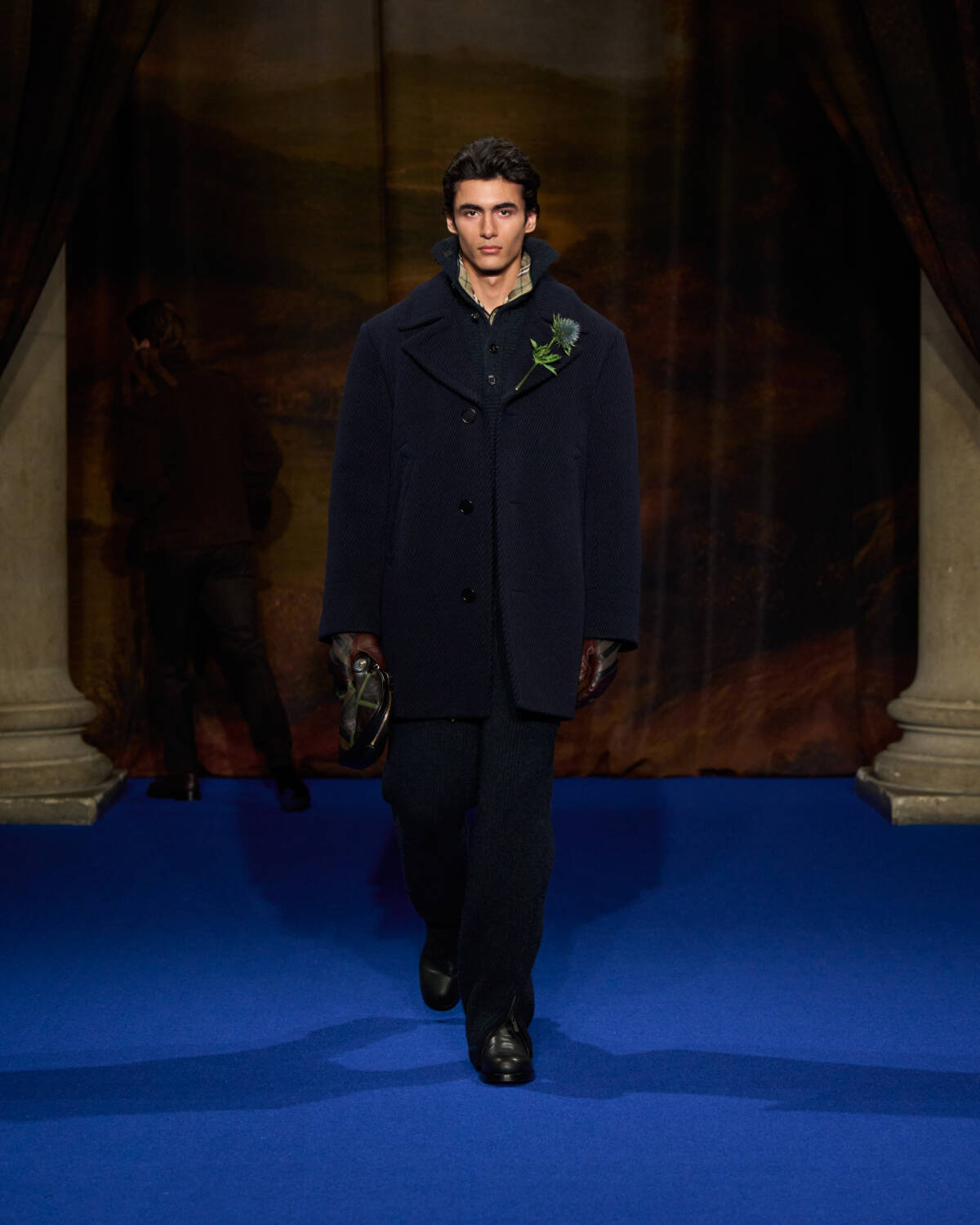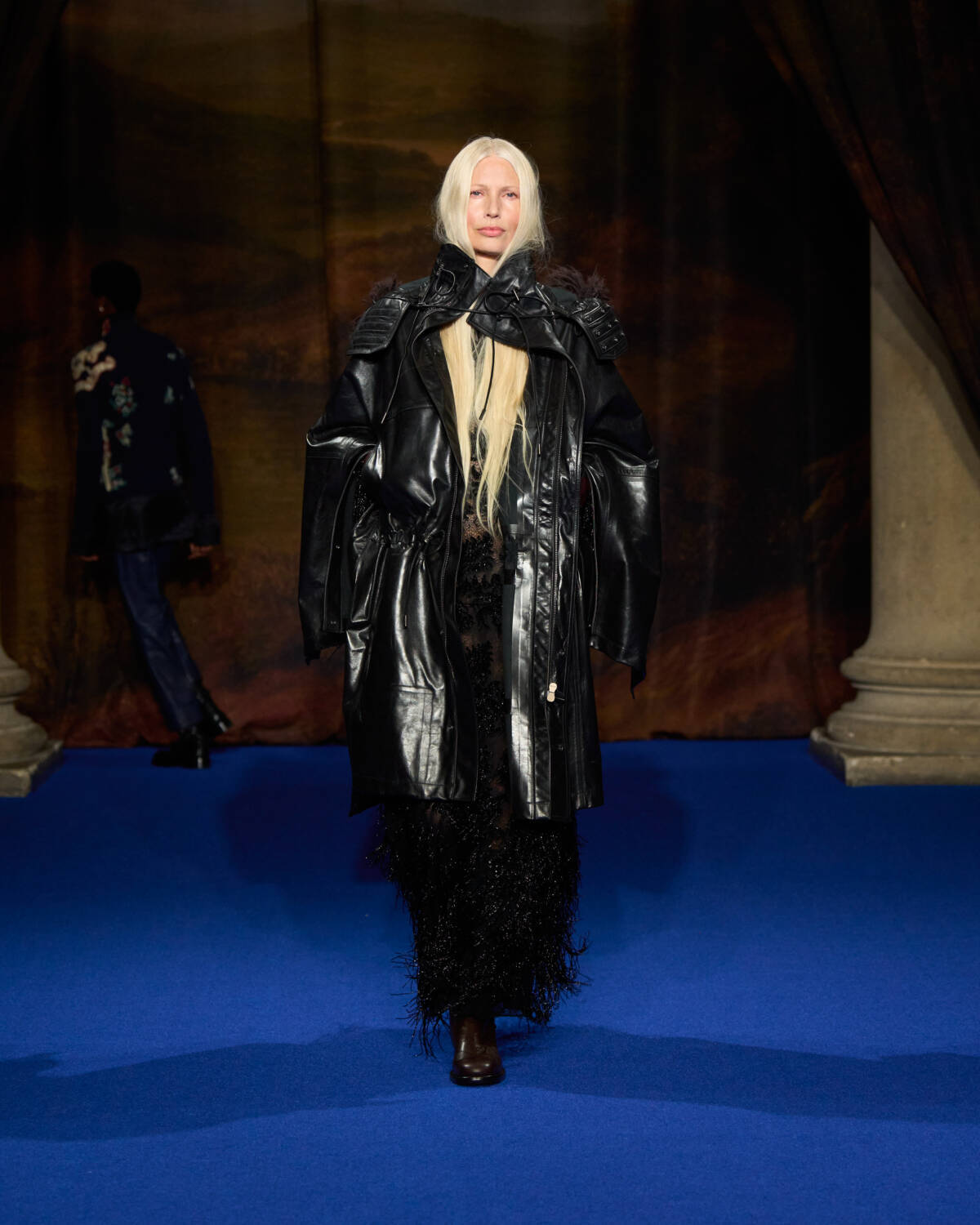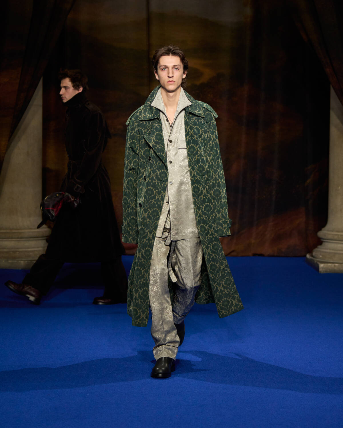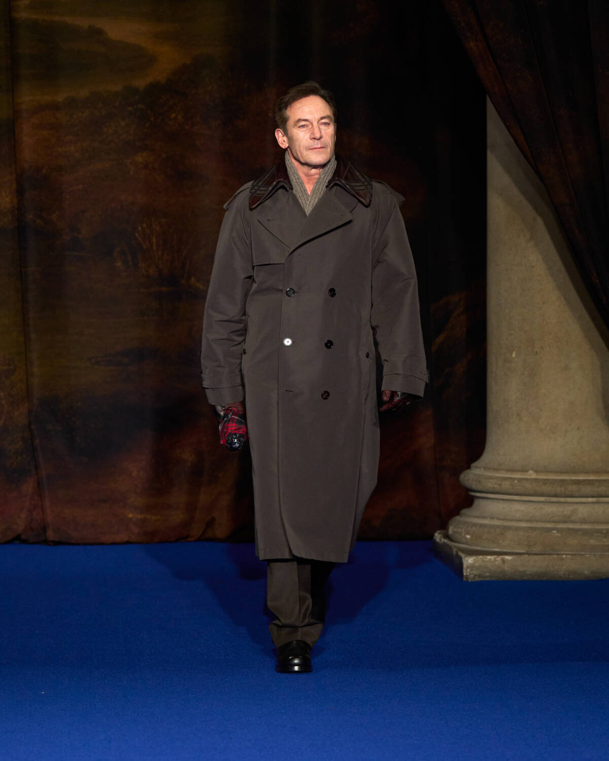 Daniel Lee knew what was required. He stepped up with a convincing collection that leaned into Burberry’s outerwear excellence as well as the enduring, global appeal of Britain’s country houses – their glamour, faded grandeur and eccentricity. And who better to show that off than a cast of iconic British film and television names who have telegraphed that Brideshead-meets-Burberry sense of Britishness out to the world? Step up Ṣọpẹ́ Dìrísù (Mr. Malcolm’s List), Jason Isaacs (Verona’s Romeo & Juliet), Richard E. Grant (Gosford Park), Guy Remmers (The Buccaneers), Elizabeth McGovern (Downton Abbey), Jessica Madsen (Bridgerton) and Lesley Manville (The Crown).