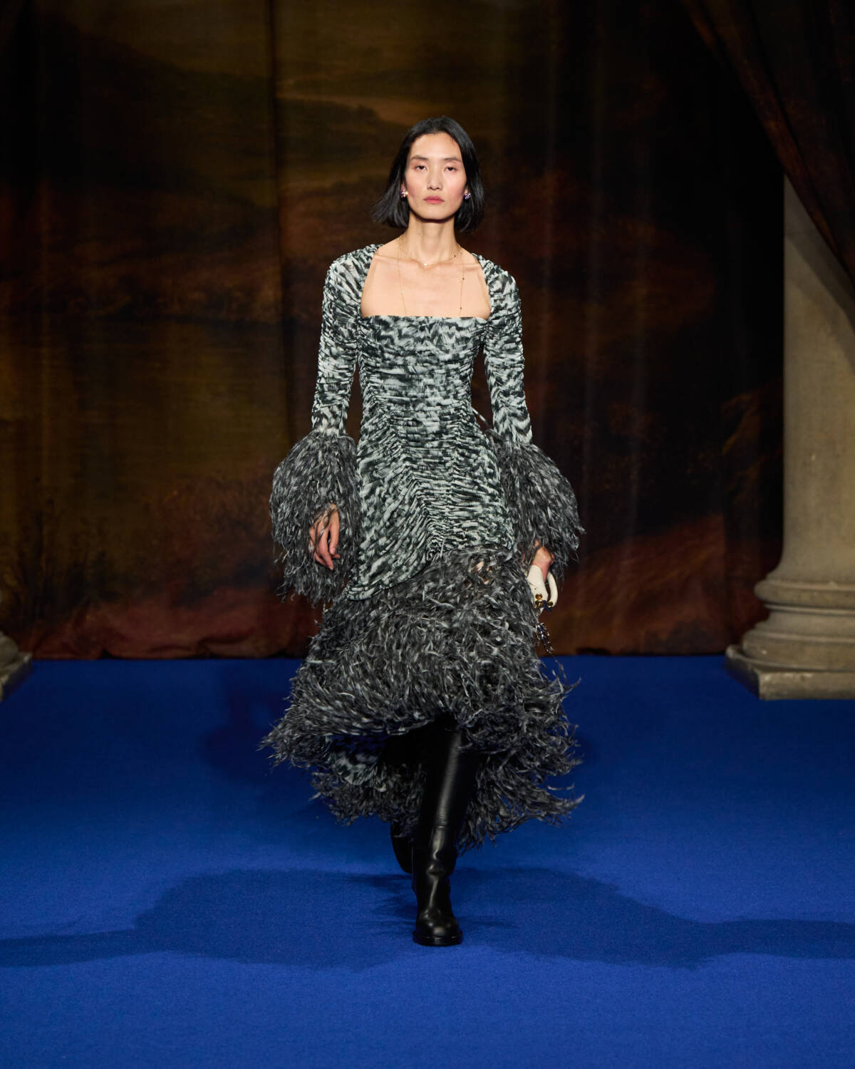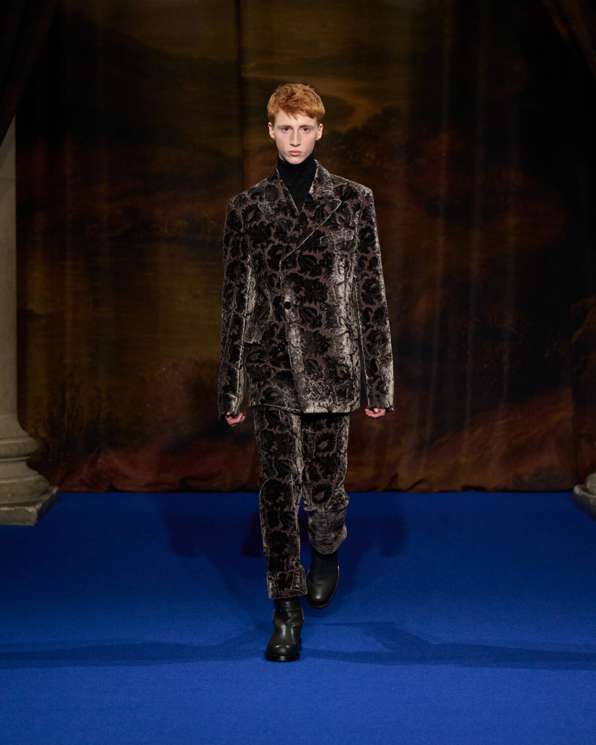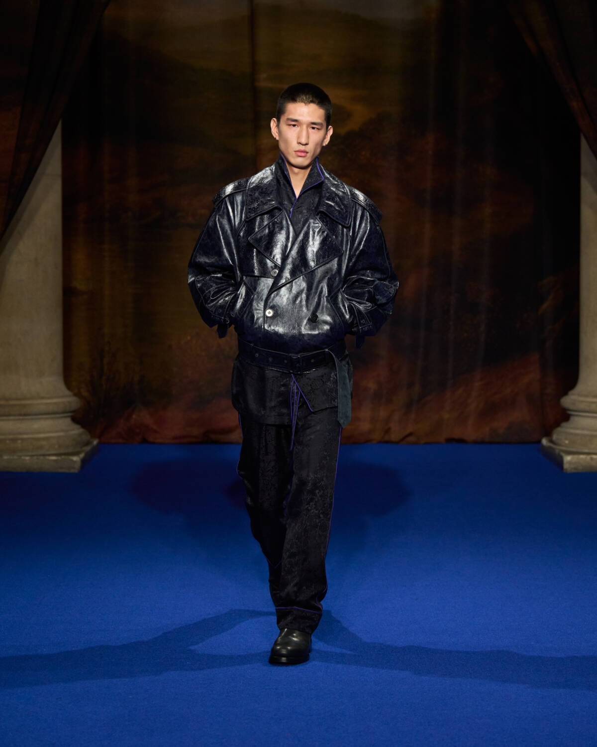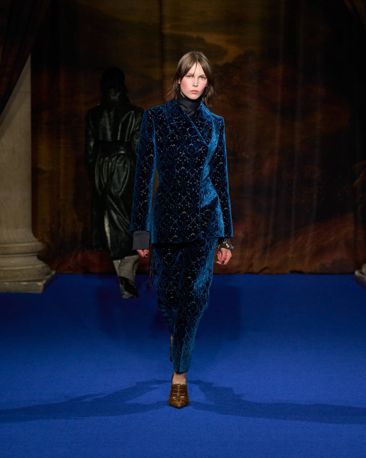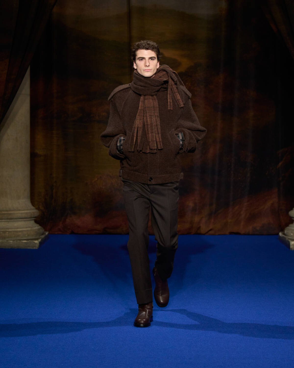 Daniel Lee knew what was required. He stepped up with a convincing collection that leaned into Burberry’s outerwear excellence as well as the enduring, global appeal of Britain’s country houses – their glamour, faded grandeur and eccentricity. And who better to show that off than a cast of iconic British film and television names who have telegraphed that Brideshead-meets-Burberry sense of Britishness out to the world? Step up Ṣọpẹ́ Dìrísù (Mr. Malcolm’s List), Jason Isaacs (Verona’s Romeo & Juliet), Richard E. Grant (Gosford Park), Guy Remmers (The Buccaneers), Elizabeth McGovern (Downton Abbey), Jessica Madsen (Bridgerton) and Lesley Manville (The Crown).