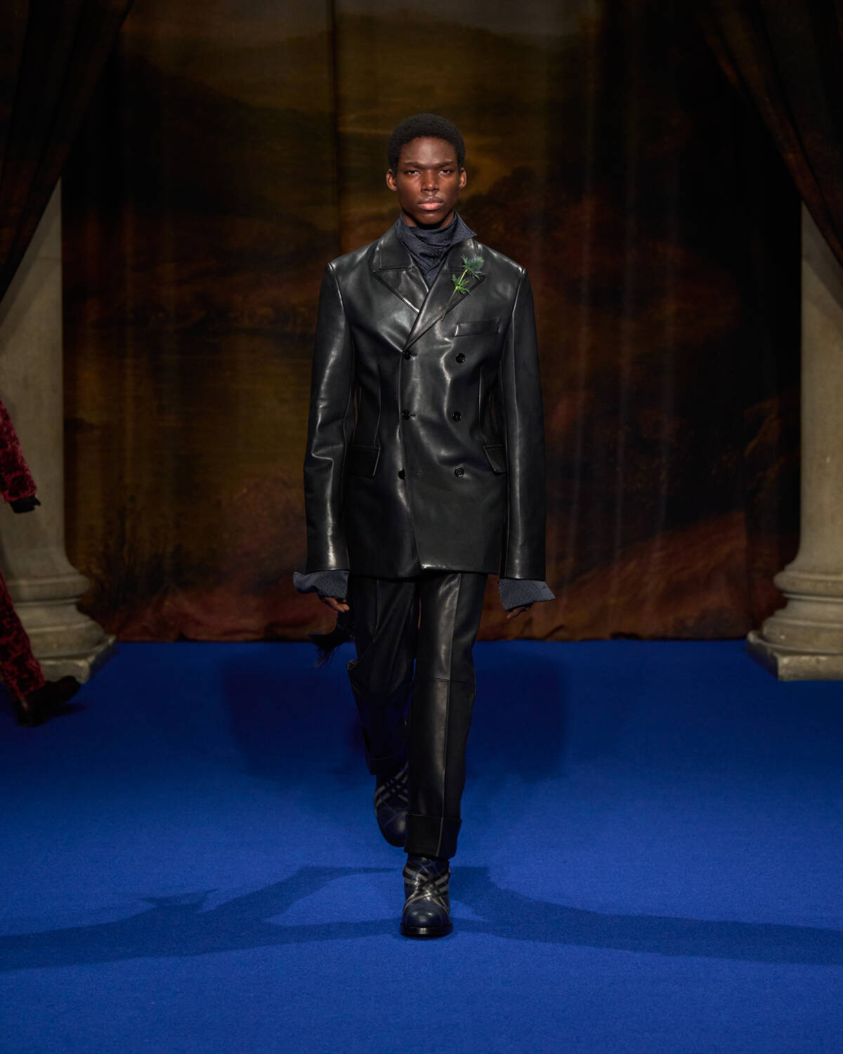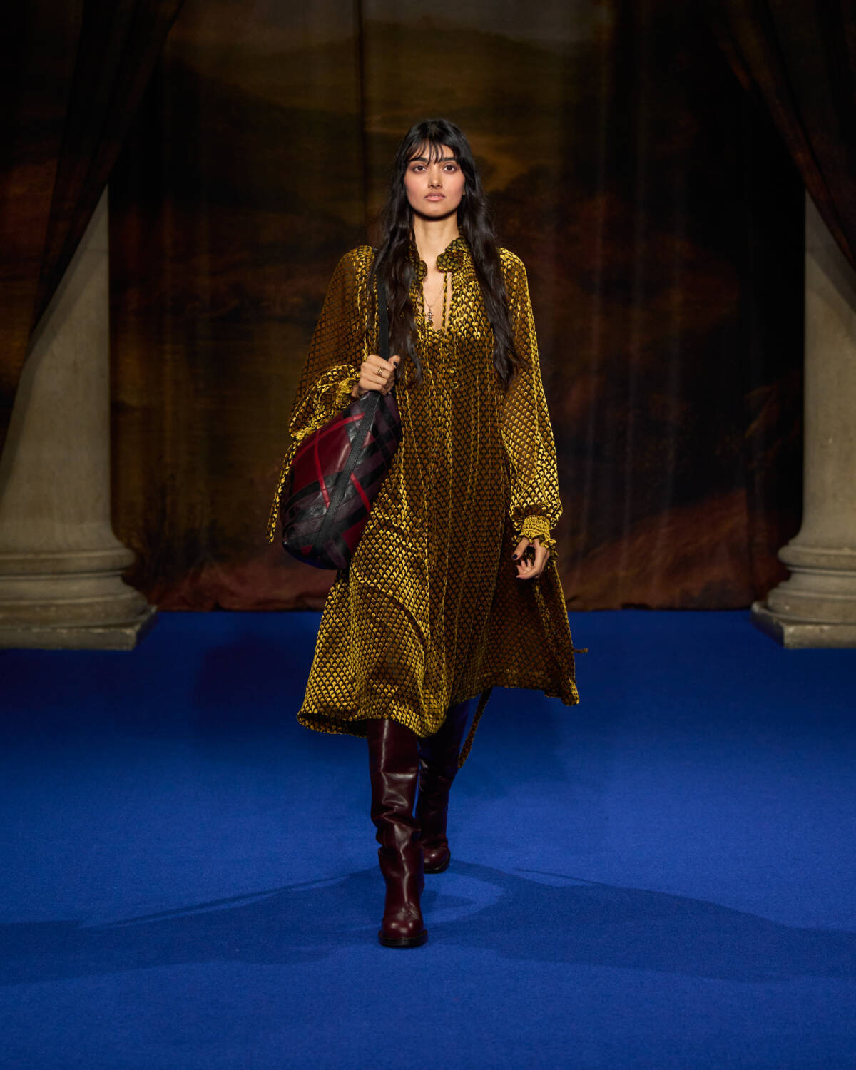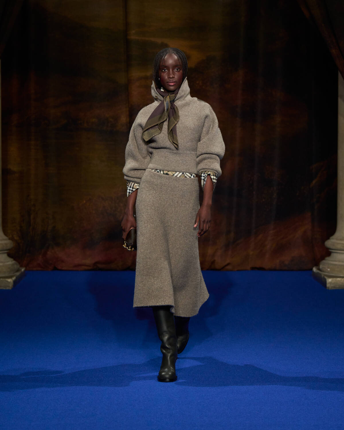 Lee imagined city dwellers shaking off the working week by decamping to the country. “It’s that great Friday night exodus from London. Long rainy walks in the great outdoors to disconnect and day trips to grand stately homes,” said the designer. Saltburn was also on his mind – its twisted, bohemian spirit was, he said, was “the kind of energy that we wanted to portray in the show.” The aim too was to refocus on what Burberry does best. “Burberry is a brand that’s made for being on the go, being in motion, and in movement, outside and in all different types of weather and terrain,” said Lee.