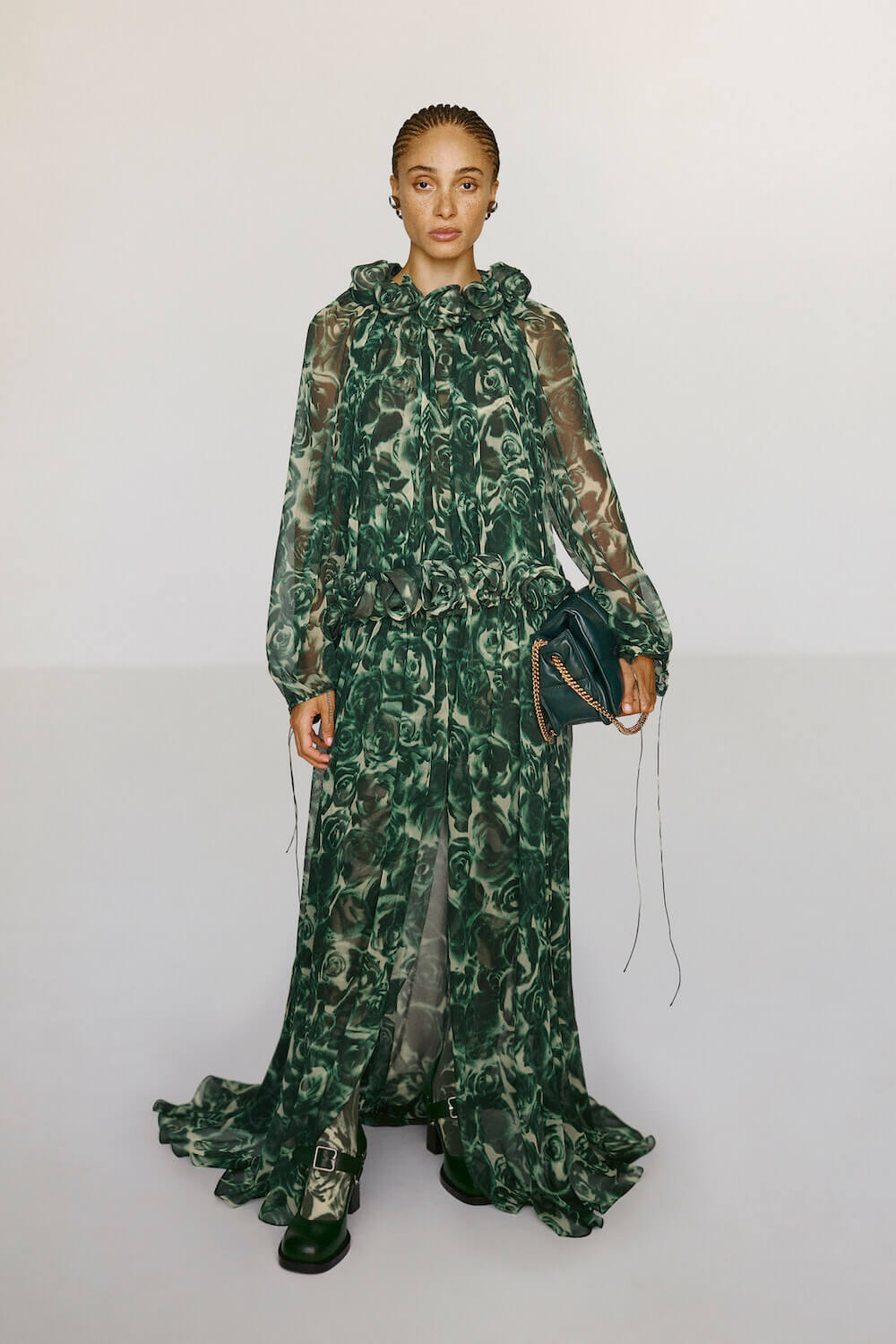 His spring 2024 collection is littered with cracking outerwear – houndstooth car coats, hulking duffels, quilted bombers, sherbet-hued faux fur chubbies – and a wealth of clever garment adaptations. Take the trench coat, for instance, here transformed into a lightweight nylon frock, or silk chiffon dresses equipped with hoods for when it decides to piss it down.