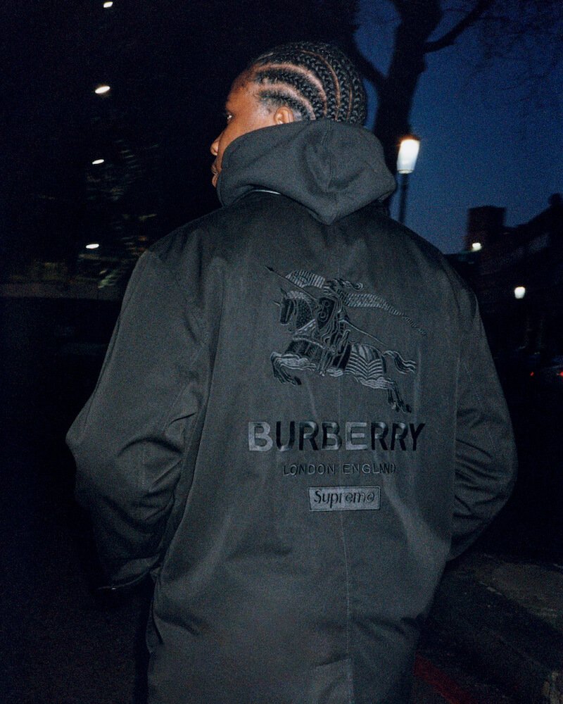 With a focus on outerwear, the edit takes Burberry’s principle that clothing should function to protect its wearer from the weather and injects it with Supreme’s streetwear DNA.