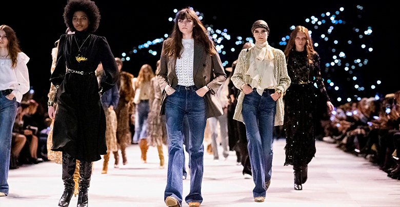 Hedi‘s Celine is taking shape. His first collection for the house channelled his skinny rock chick obsessions, his second collection was a volte-face embrace of Celine’s bourgeois chic 1970’s heritage. His third collection was a meeting of the two. It had many of the bourgeois elements of the second collection (multiple versions of the printed silk midi dress), but with a layer of bohemia on top (sheepskin jerkins and gilded headscarves – if they could speak they’d say, “My boyfriend is a Rolling Stone”). Denim formed the other pillar of the new Celine look. High waisted flares, a seventies blazer and sneakers echoed the look of Slimane’s menswear. As ever his message was unwavering. Styled to perfection (high boots and conservative bags, slept-in hair, effortless cool), this was an advanced class in contemporary wardrobe building, each piece honed and perfected by the most exacting eye in fashion.
