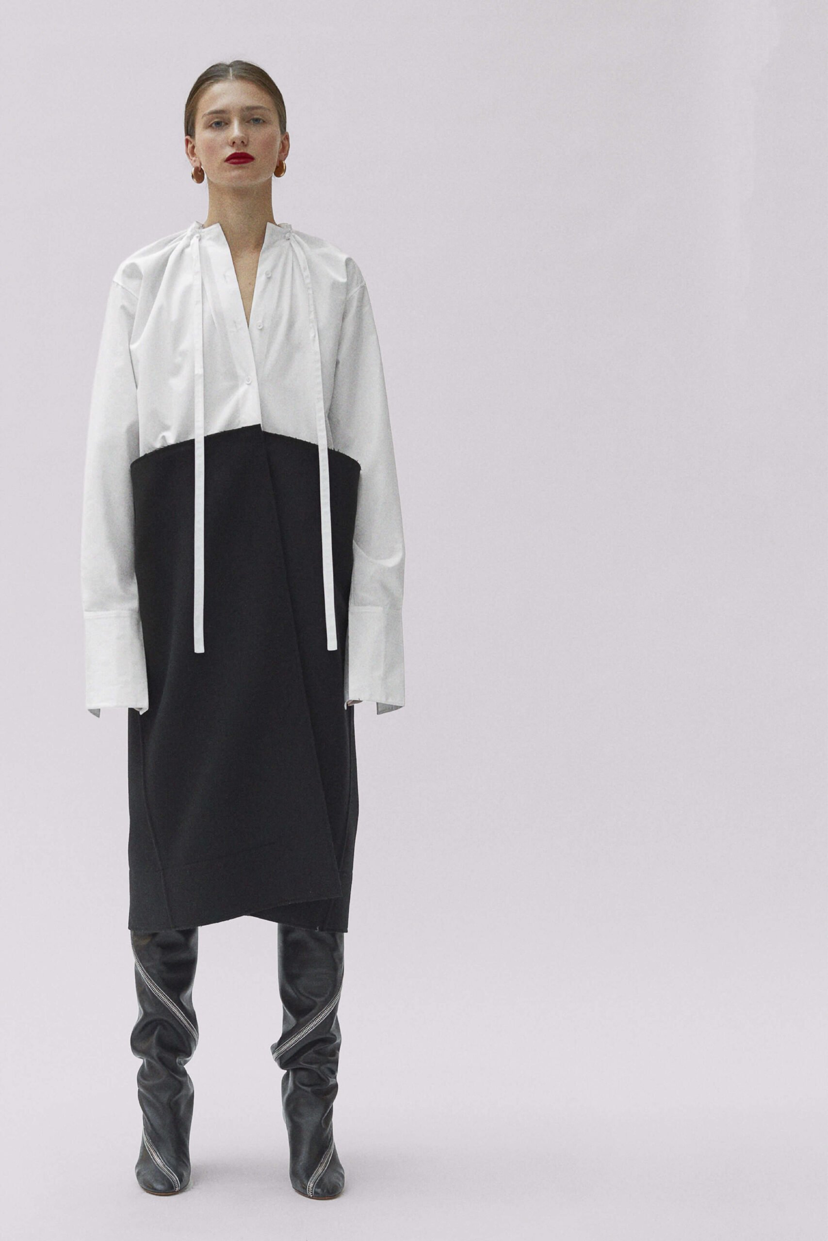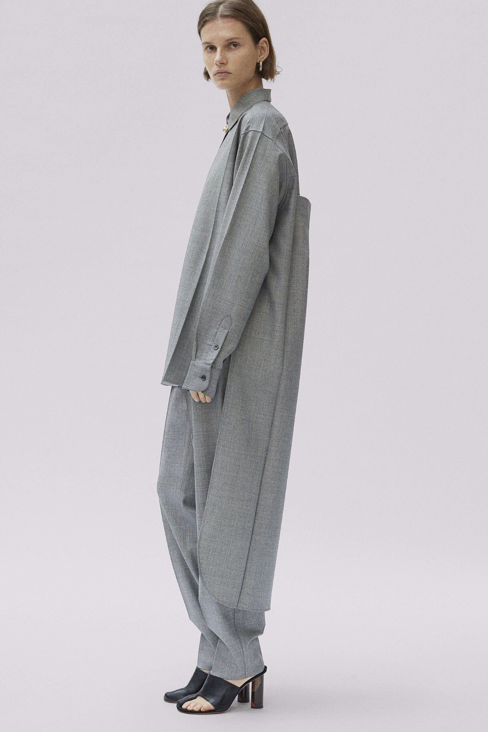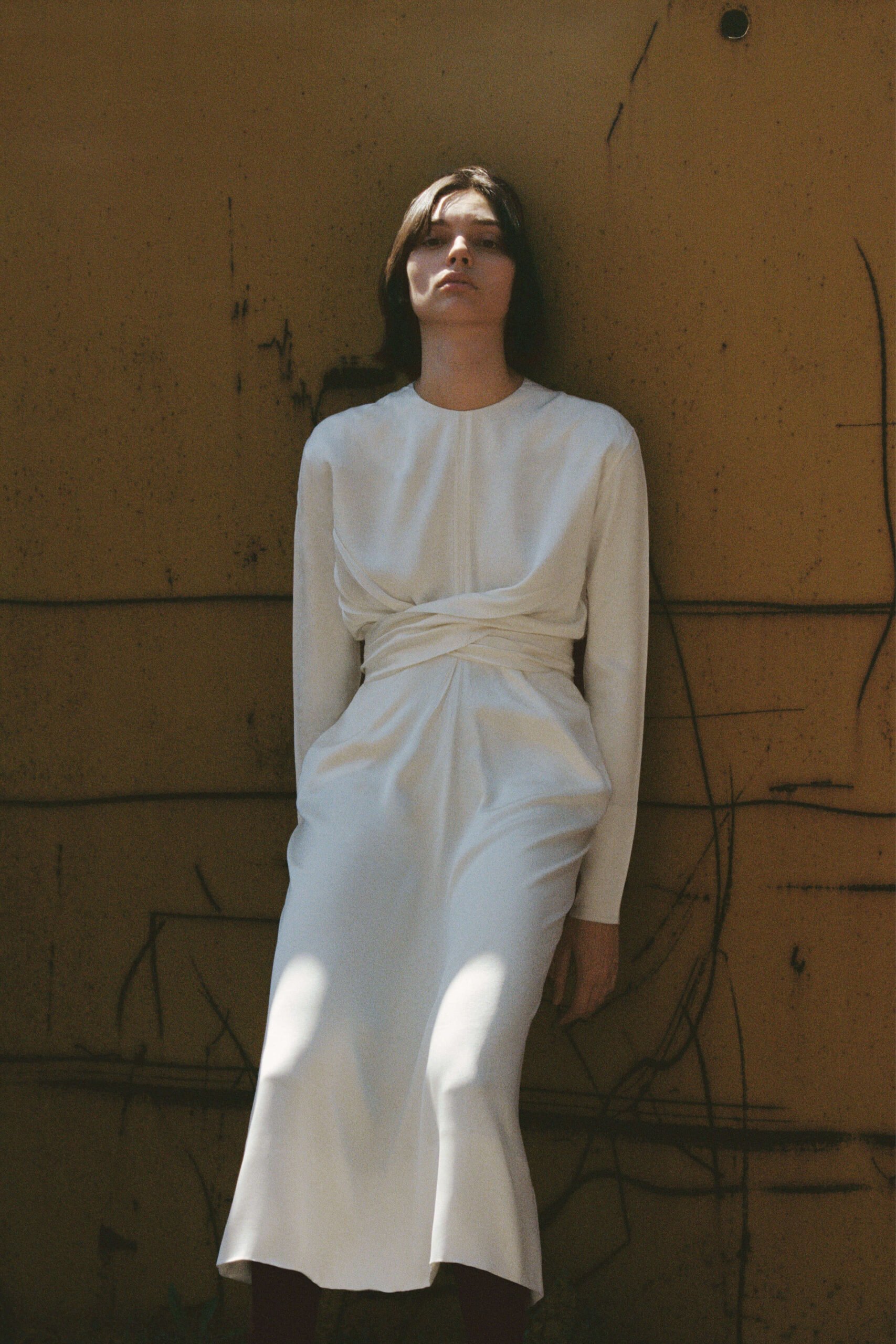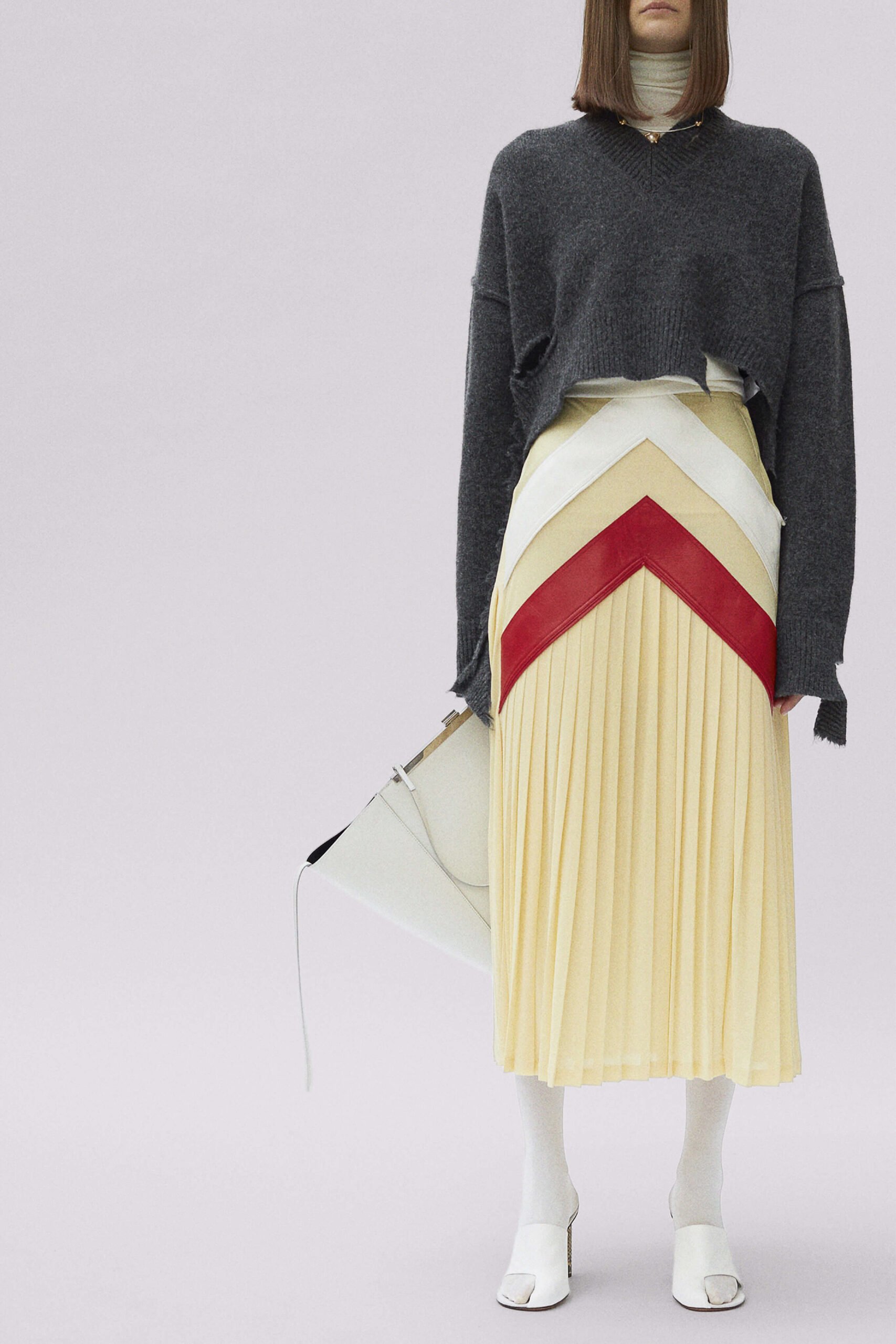 I often say that the two qualifications for enjoying Phoebe Philo’s work at the house of Céline are 1) being a woman and 2) having a pulse. However, I would like to add that, certainly amongst Ten Towers at least, there are a number of fashionistos (that’s the boy version) who also are partial to Ms Philo’s clothing and, as I plan to be buried in full-look Céline, who needs a pulse either? It’s really easy to wax lyrical about a Céline collection, mainly because they are always very very good, but on receipt of these images last week (embargoed until today) I must say that we’re extra partial to this latest offering – Philo’s Fall 2017 (a Céline-ism for Pre-Fall) collection for the house. There’s something hearty about this. A kilt says hearty, especially when it’s floor-length, and there are six of them here, pointing to this fullness of fabric throughout – heavy mannish overcoats or roomy shirts, some checkered, or those trousers that rise up far beyond the waist and fasten with an extra-long fly. But Philo’s vision at Céline has long taken the hard with the soft and here, that heaviness is offset with a strong femininity, a sense of womanliness. It’s found in the way that ties of silk loosely cinch the waist and fabrics gently drape on the body, subtly pointing to the female form beneath or in those flashes of red, on the clothes and slashed across the model’s lips. Because yes, Céline may be intellectual but that doesn’t mean it’s sexless – there’s a fluidity to it, a languid sensuality. Philo really does know how women woman to dress – design without agenda or suggestion – just beautiful, intelligent clothes.