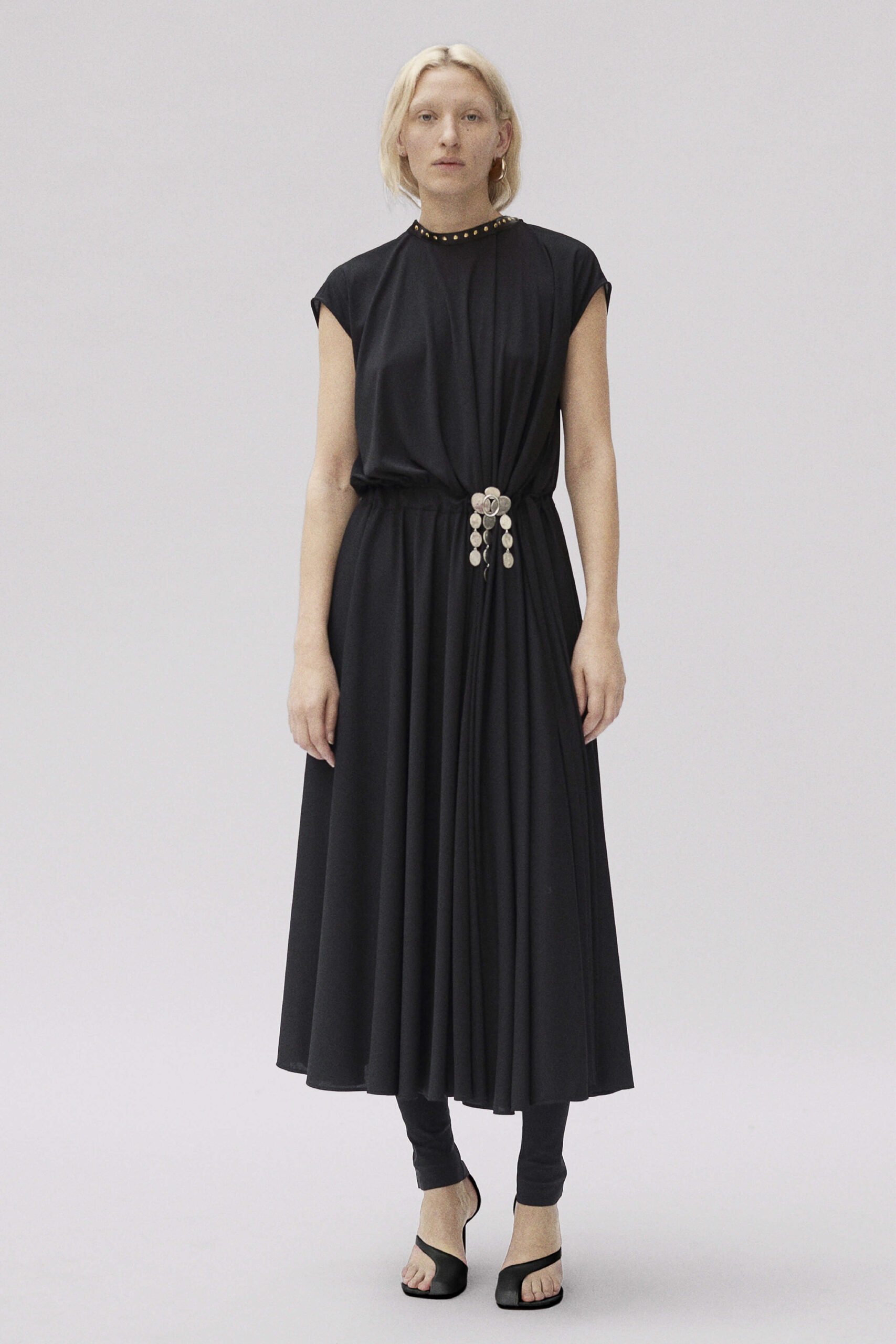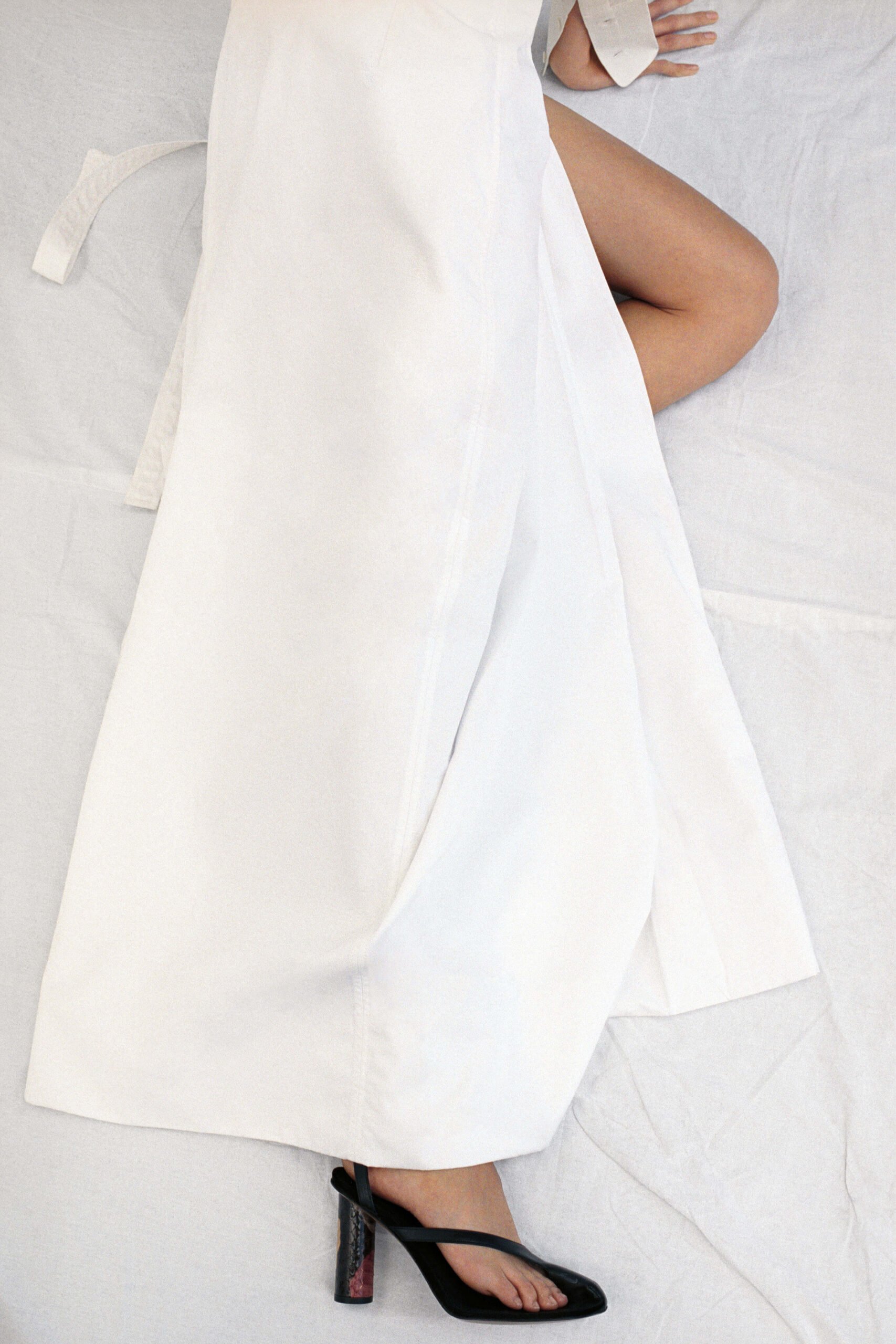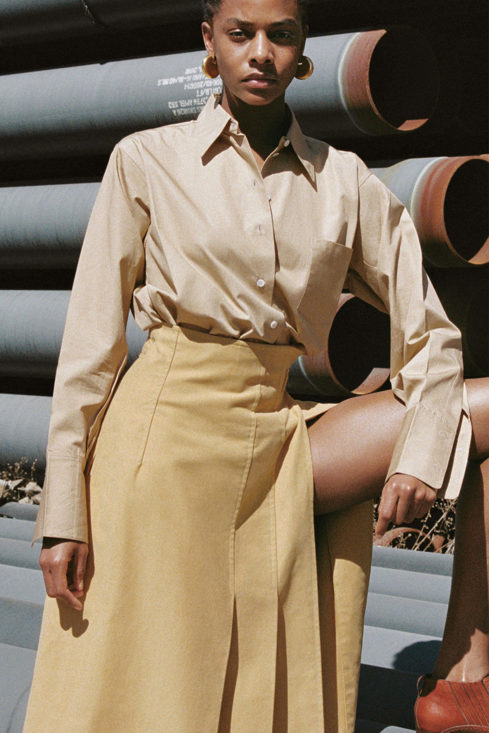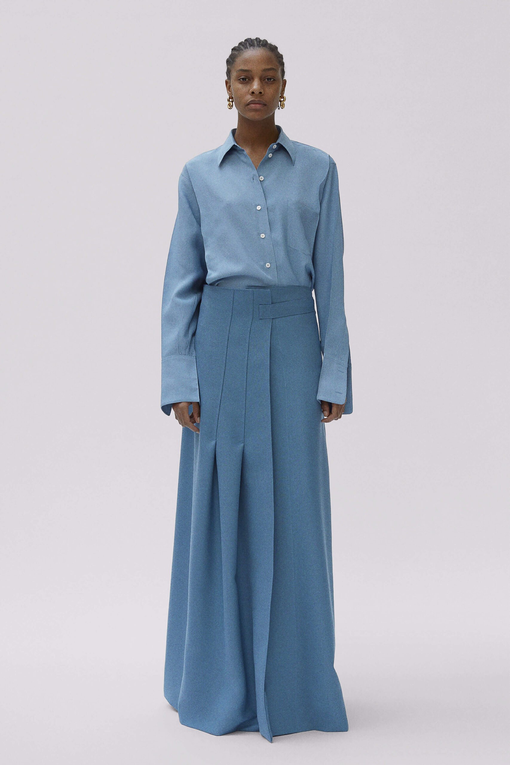 I often say that the two qualifications for enjoying Phoebe Philo’s work at the house of Céline are 1) being a woman and 2) having a pulse. However, I would like to add that, certainly amongst Ten Towers at least, there are a number of fashionistos (that’s the boy version) who also are partial to Ms Philo’s clothing and, as I plan to be buried in full-look Céline, who needs a pulse either? It’s really easy to wax lyrical about a Céline collection, mainly because they are always very very good, but on receipt of these images last week (embargoed until today) I must say that we’re extra partial to this latest offering – Philo’s Fall 2017 (a Céline-ism for Pre-Fall) collection for the house. There’s something hearty about this. A kilt says hearty, especially when it’s floor-length, and there are six of them here, pointing to this fullness of fabric throughout – heavy mannish overcoats or roomy shirts, some checkered, or those trousers that rise up far beyond the waist and fasten with an extra-long fly. But Philo’s vision at Céline has long taken the hard with the soft and here, that heaviness is offset with a strong femininity, a sense of womanliness. It’s found in the way that ties of silk loosely cinch the waist and fabrics gently drape on the body, subtly pointing to the female form beneath or in those flashes of red, on the clothes and slashed across the model’s lips. Because yes, Céline may be intellectual but that doesn’t mean it’s sexless – there’s a fluidity to it, a languid sensuality. Philo really does know how women woman to dress – design without agenda or suggestion – just beautiful, intelligent clothes.
