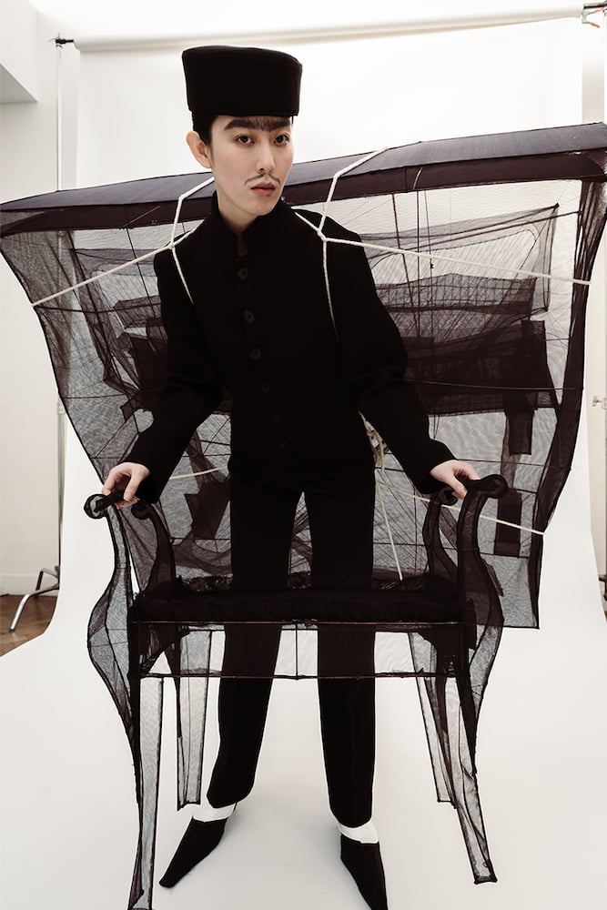 Graduating into a Covid pandemic, the class of 2021 created their collections at home with remote teaching using whatever resources they had to hand. Unable to hold their traditional graduate show, instead they made films and visuals, told their stories and showcased their work on a special digital platform, sponsored by L’Oreal. It allows viewers to take a virtual walkthrough of the collections and explore the ‘rooms’ each designer has created. And what worlds.