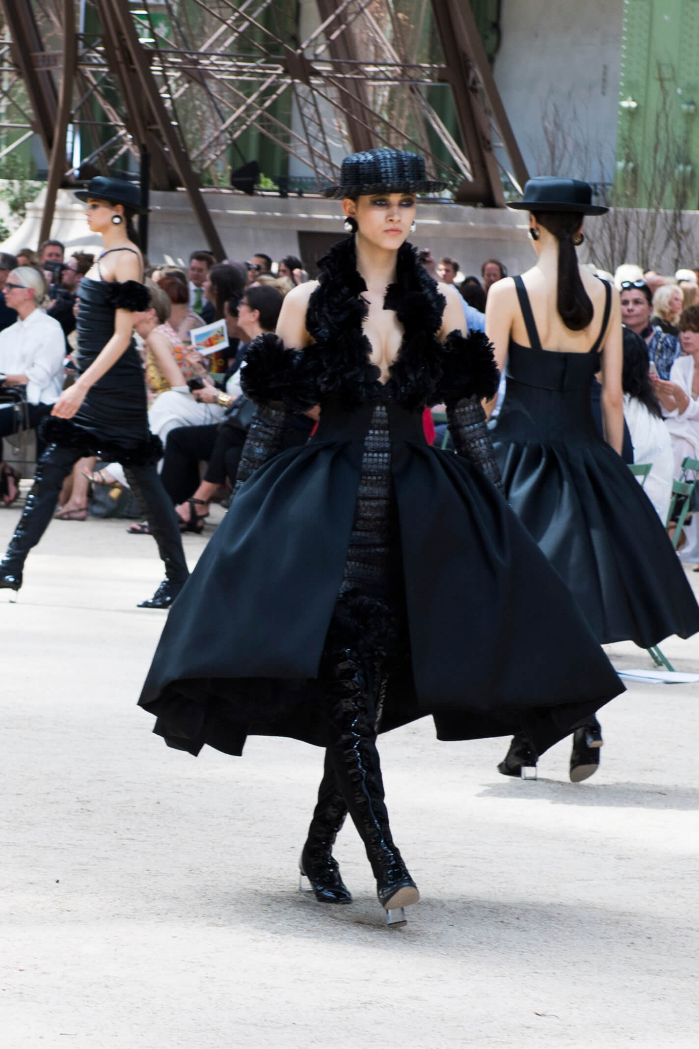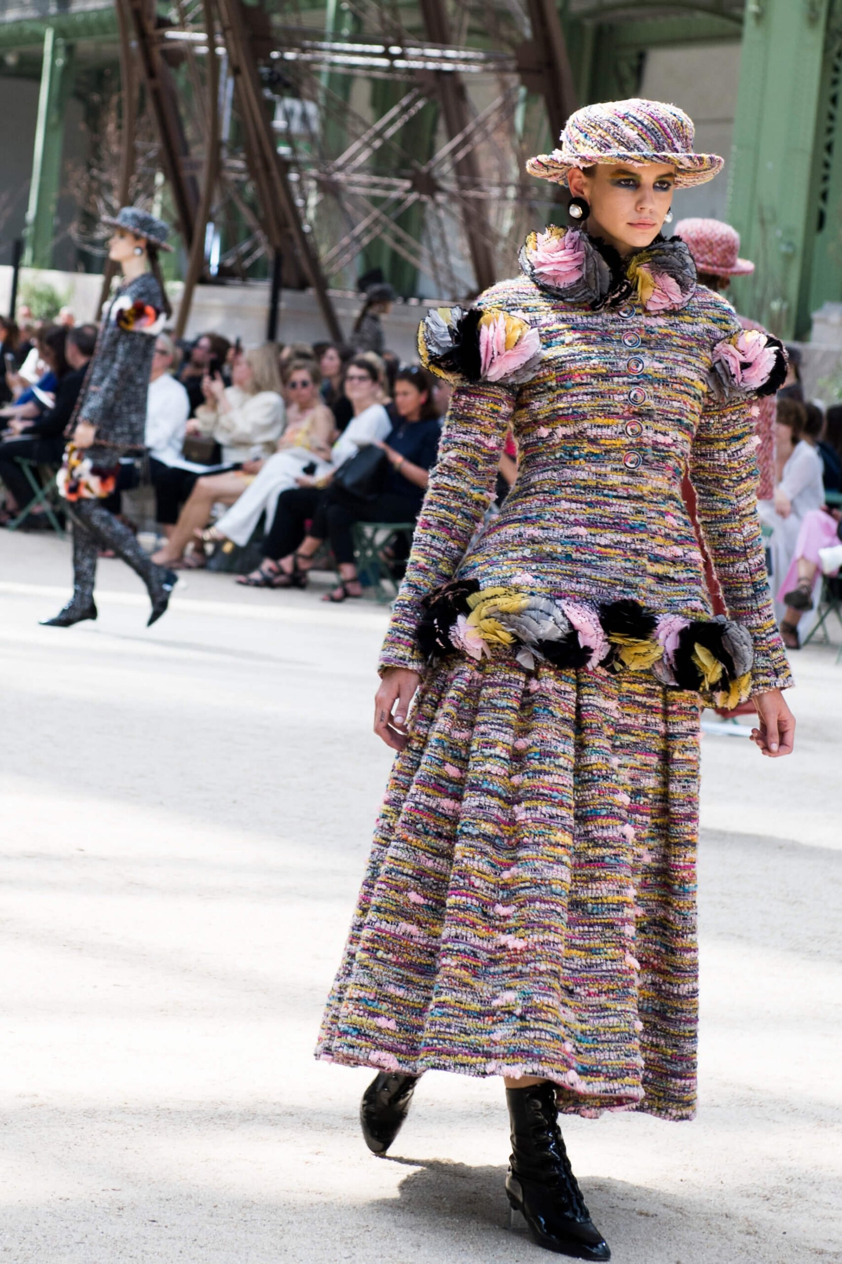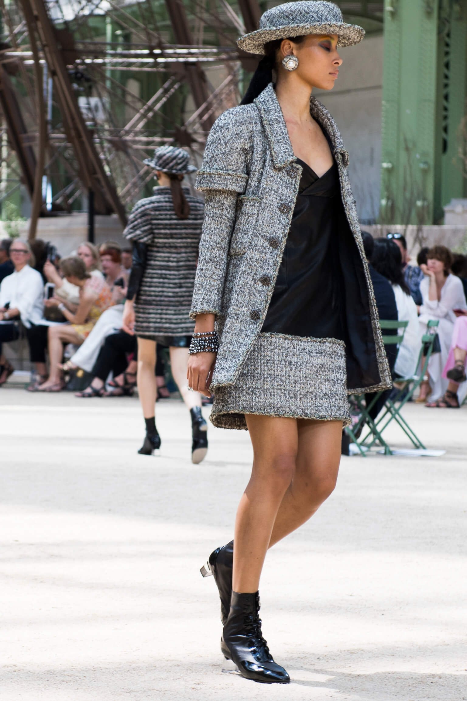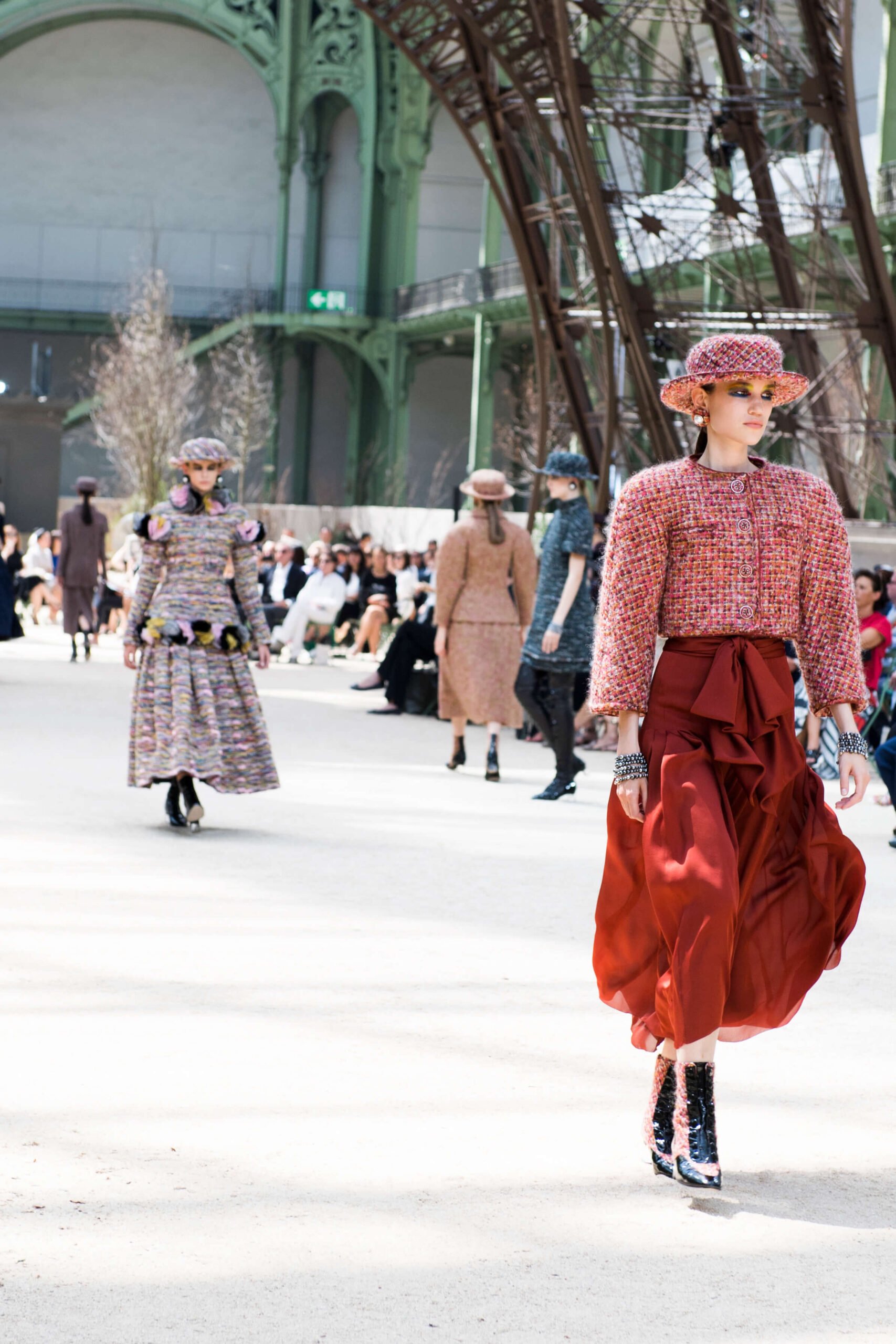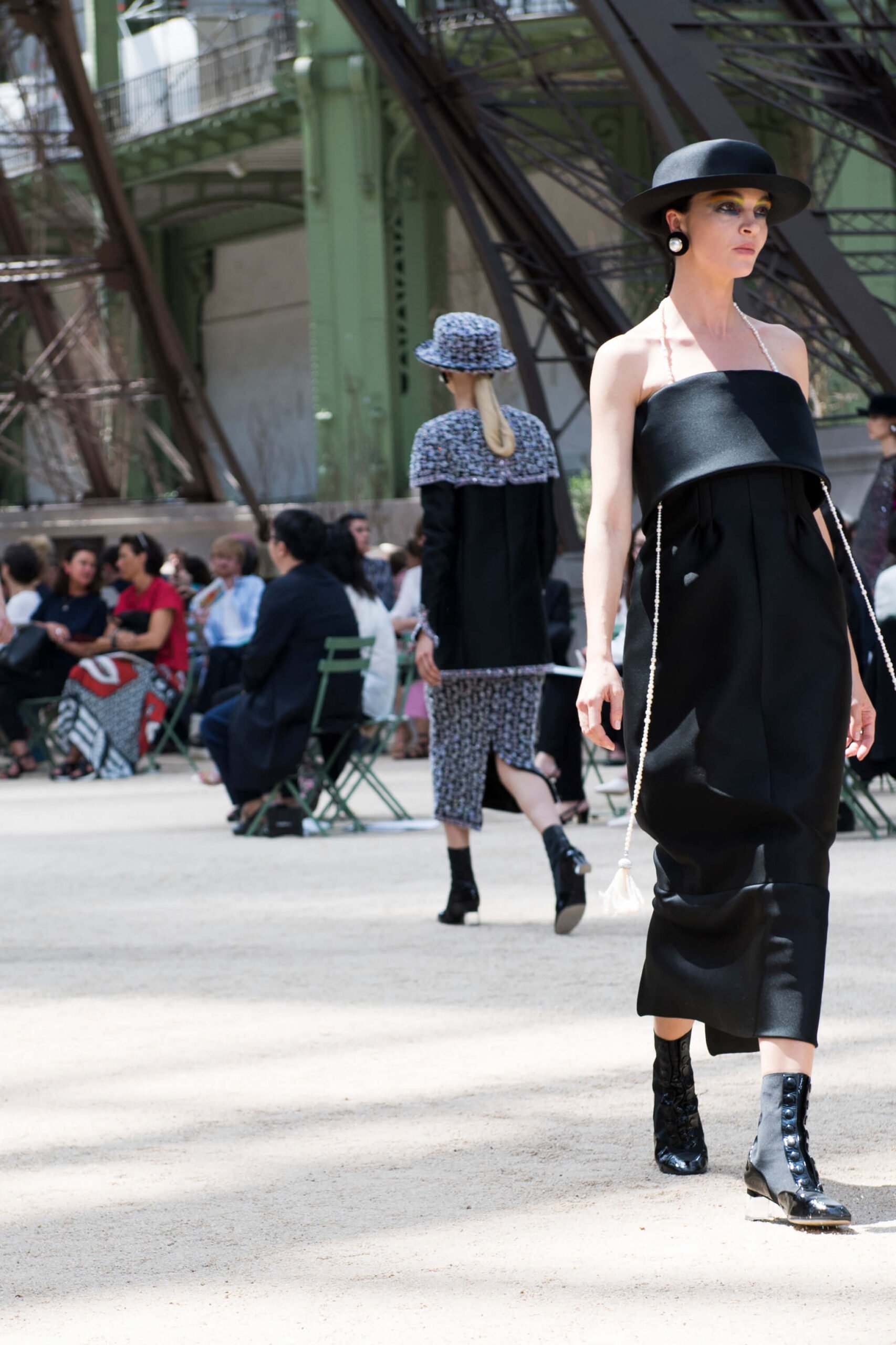 A Chanel Haute Couture show is always one of those pinch-yourself moments, where you really do stop and think “wow, really quite lucky aren’t I?” Because each and every season we are treated to another trip into the infinite recesses of Monsieur Lagerfeld’s imagination, and this morning, Karl seemed to be asking: “what does the view look like from the top?” – erecting an (almost) life-sized Eiffel Tower in the middle of the Grand Palais. Because what is Paris? It is the Eiffel Tower. But it’s also Chanel. And Karl. He’s just as worthy of being seen as a symbol of the city, a point proved, post show, when he received a medal honour from the city’s mayor as the entire audience stood on their feet. “Vous etes Paris,” she said.