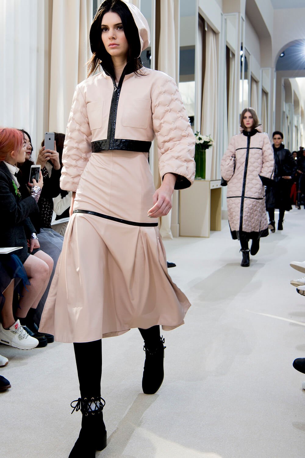 A big show, but not a big top. Chanel stripped it all back to virtually nothing at the Grand Palais, a super-size salon with several thousand seats, spectacular – but very different to an airport or French brasserie. The show was a return to Coco of old – big bouncing pearls, tweeds, boater hats, diamond quilting, in stitches and corset cross-lacing bisecting midriffs and the ankles of bouclé-panelled riding boots. The oft-repeated codes of Chanel endlessly reiterated. Rather than looking outside for inspiration, Karl Lagerfeld trawled through and hauled from the archives, a super-sized classic show of Chanel classics – a greatest hits parade. It’s impossible not to wind up making a mental shopping list at a Chanel show. Here, there was more to adore – and acquire – than ever before.