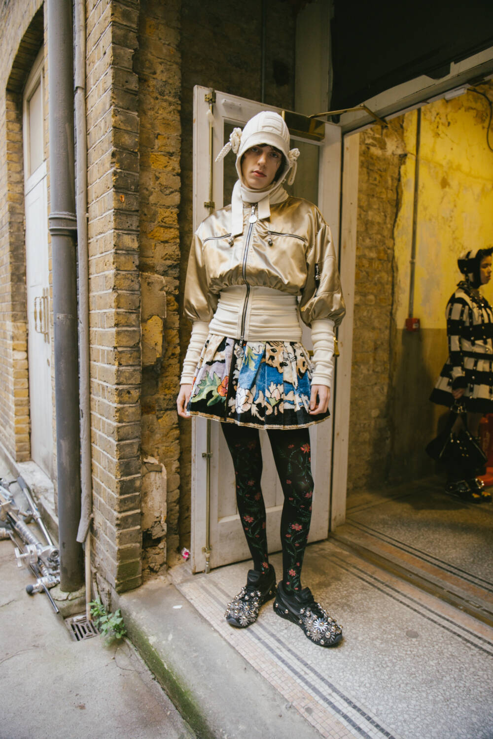 You’d be stumped to find another show with the energy of a Chopova Lowena catwalk. From the models – many from the brand’s extended creative community – who stomp at break-neck speeds with all the angst of a gang of stroppy teenagers. Through to the soundtrack, which managed to bulldoze teeth-chattering drum n’ bass, moody skater anthems and Offenbach strings in a Looney Tunes-style mishmash. The design duo Emma Chopova and Laura Lowena are two of the most exciting names working in London today thanks to their high-octane collections that blend folklore tales and themes of girlhood, all laced with an unshakable punk spirit. They make seriously pretty clothes with serious bite.