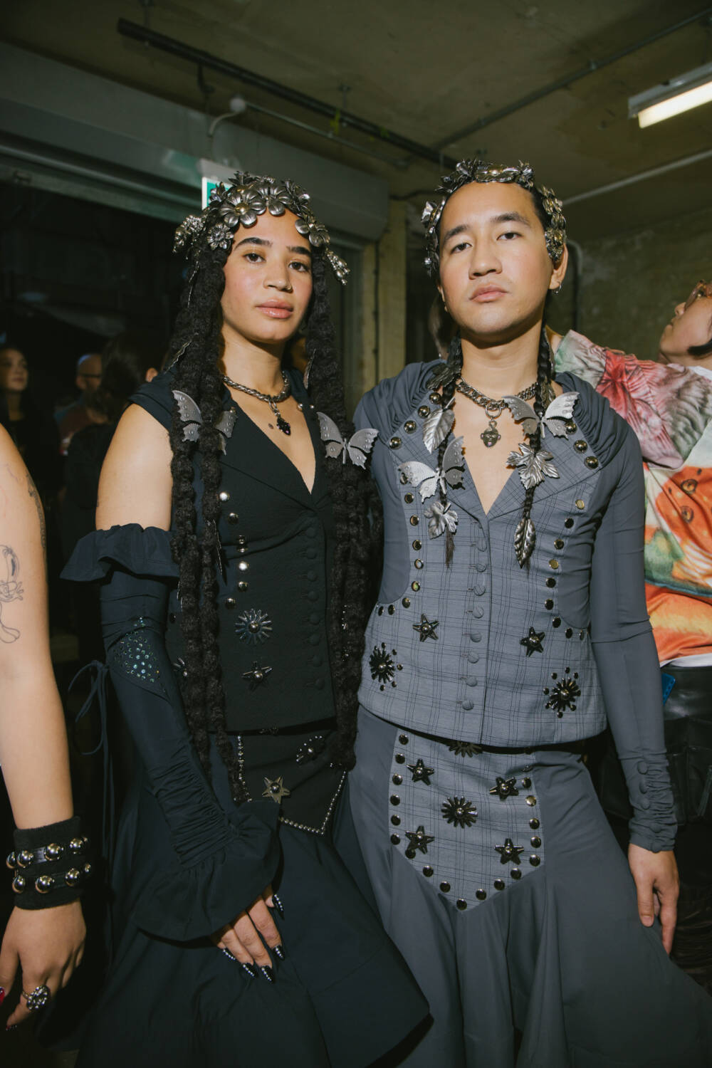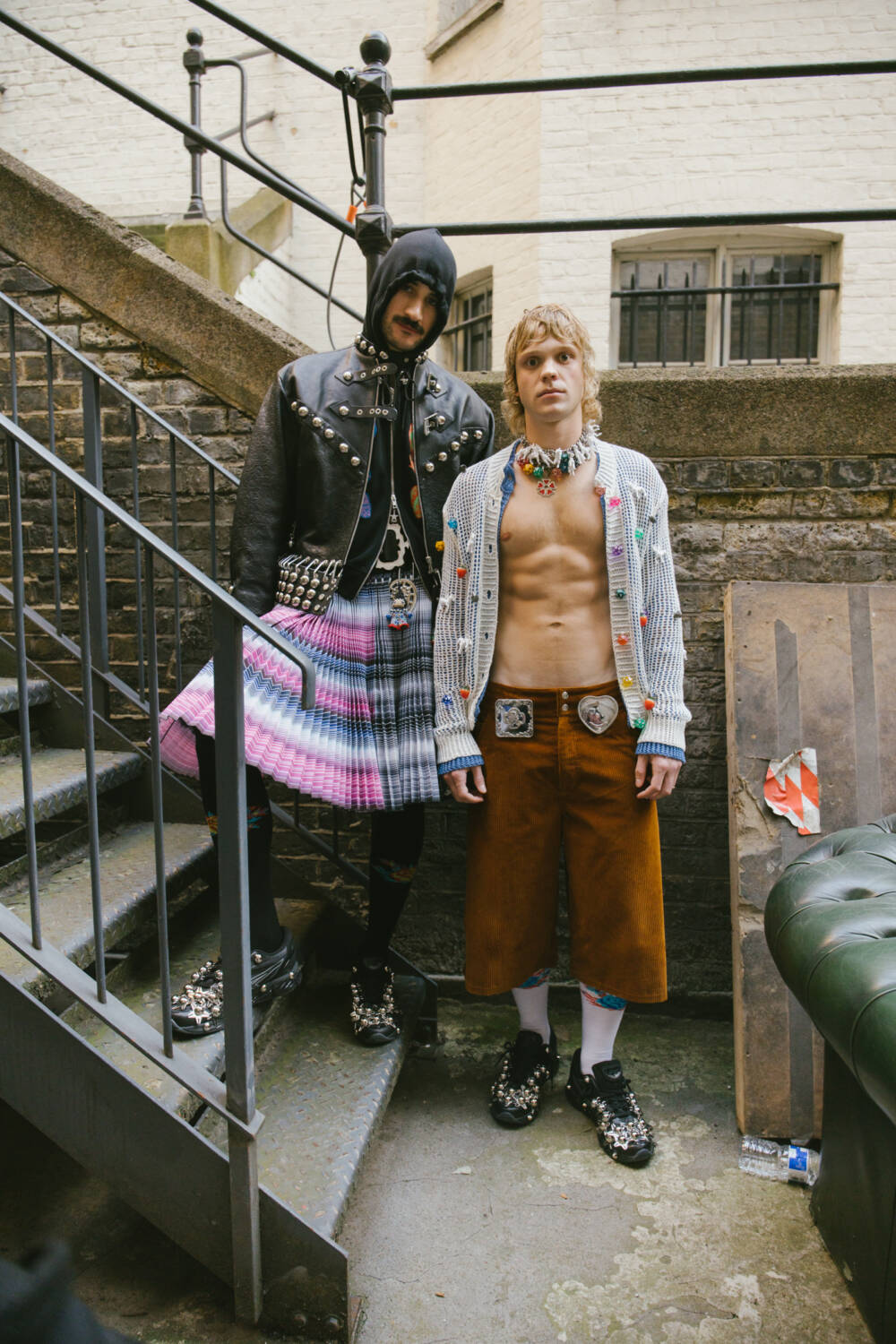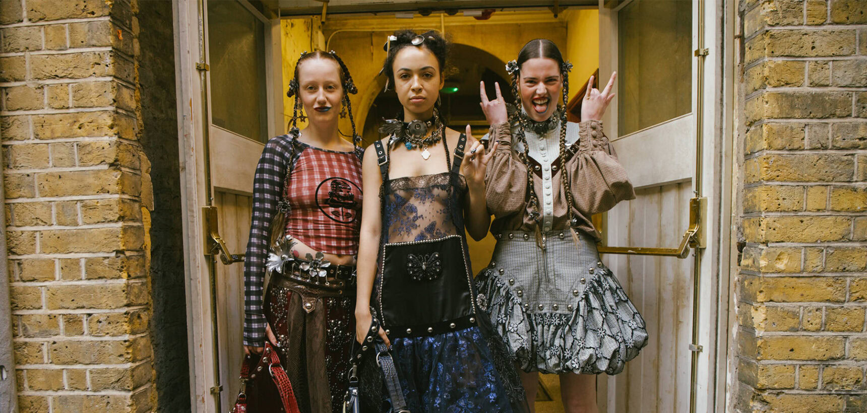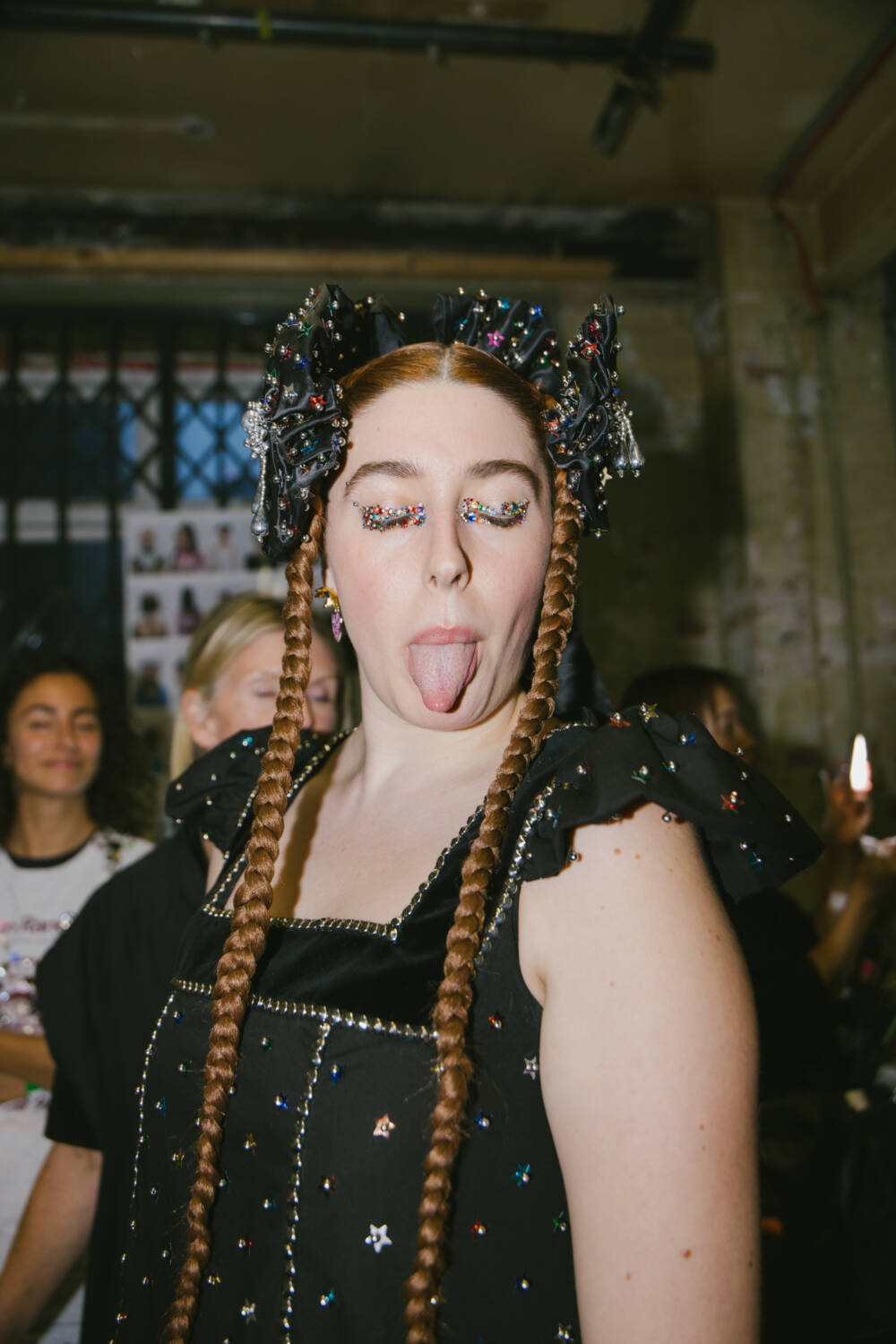 The pair based their SS25 show around a “walloping womanity”, looking to everything from can-can dancers through to showgirls and rodeo get-ups to remix with their sporty-Victorian mashup frocks and knife pleated skirts which are worn by fans of the brand globally. Highlights included denim jeans that sprouted into a tool skirt, studded petticoats and puffball skirts littered with a sky full of stars. Elsewhere, the summer of Olympics gymnastics inspired the duo to create Lycra leotards that came with bedazzled torsos and frills at the hip, paired perfectly with the brand’s new link-up with Asics, where trainers came adorned with giant metal butterflies. That wasn’t all when it came to experimental collabs: the brand created a handbag that had a compartment specially designed to carry a jar of Hellmann’s mayonnaise. I bet you didn’t have that one on your fashion week bingo card!