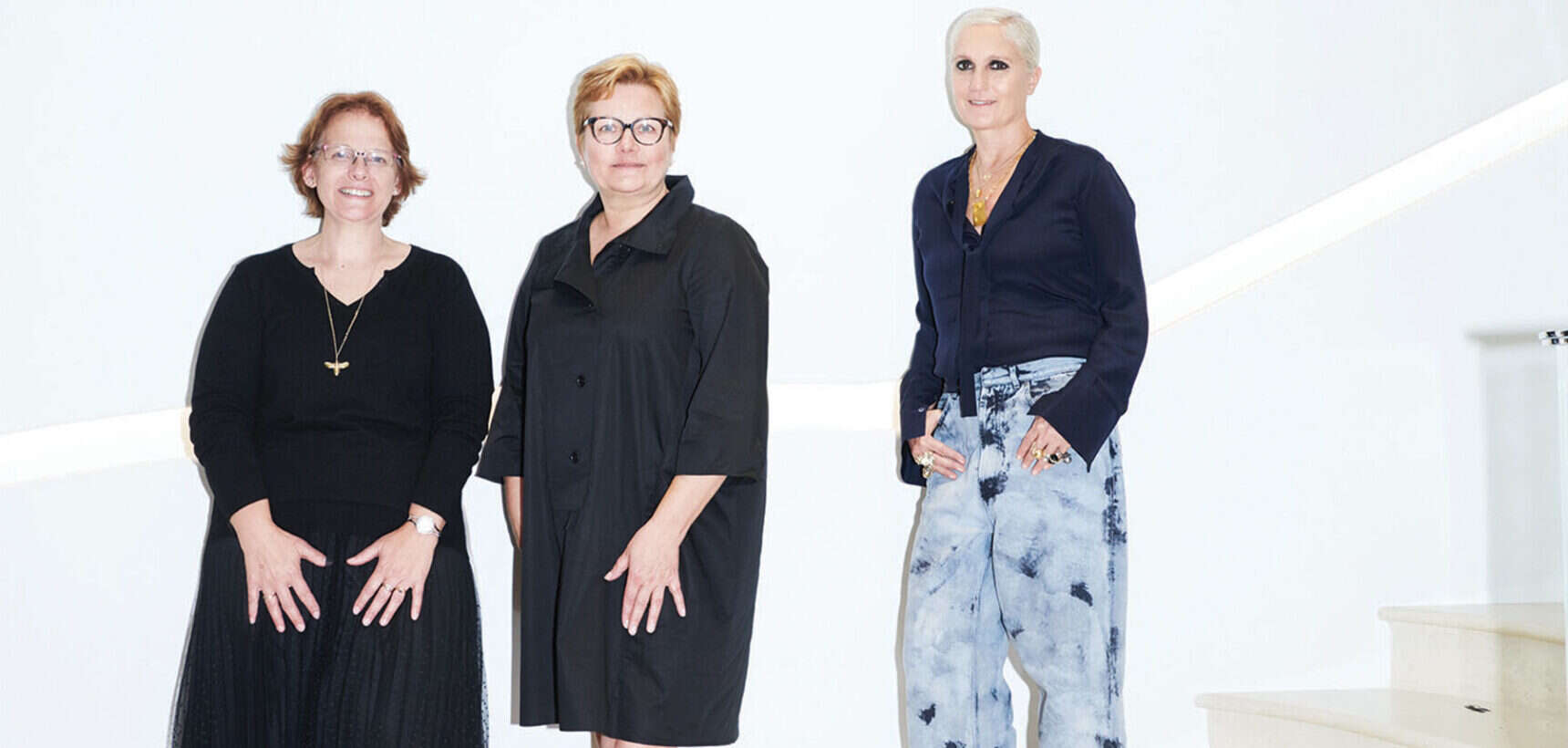 from left: the Dior atelier premières Laurence Morel and Florence Chehet with artistic director Maria Grazia Chiuri
