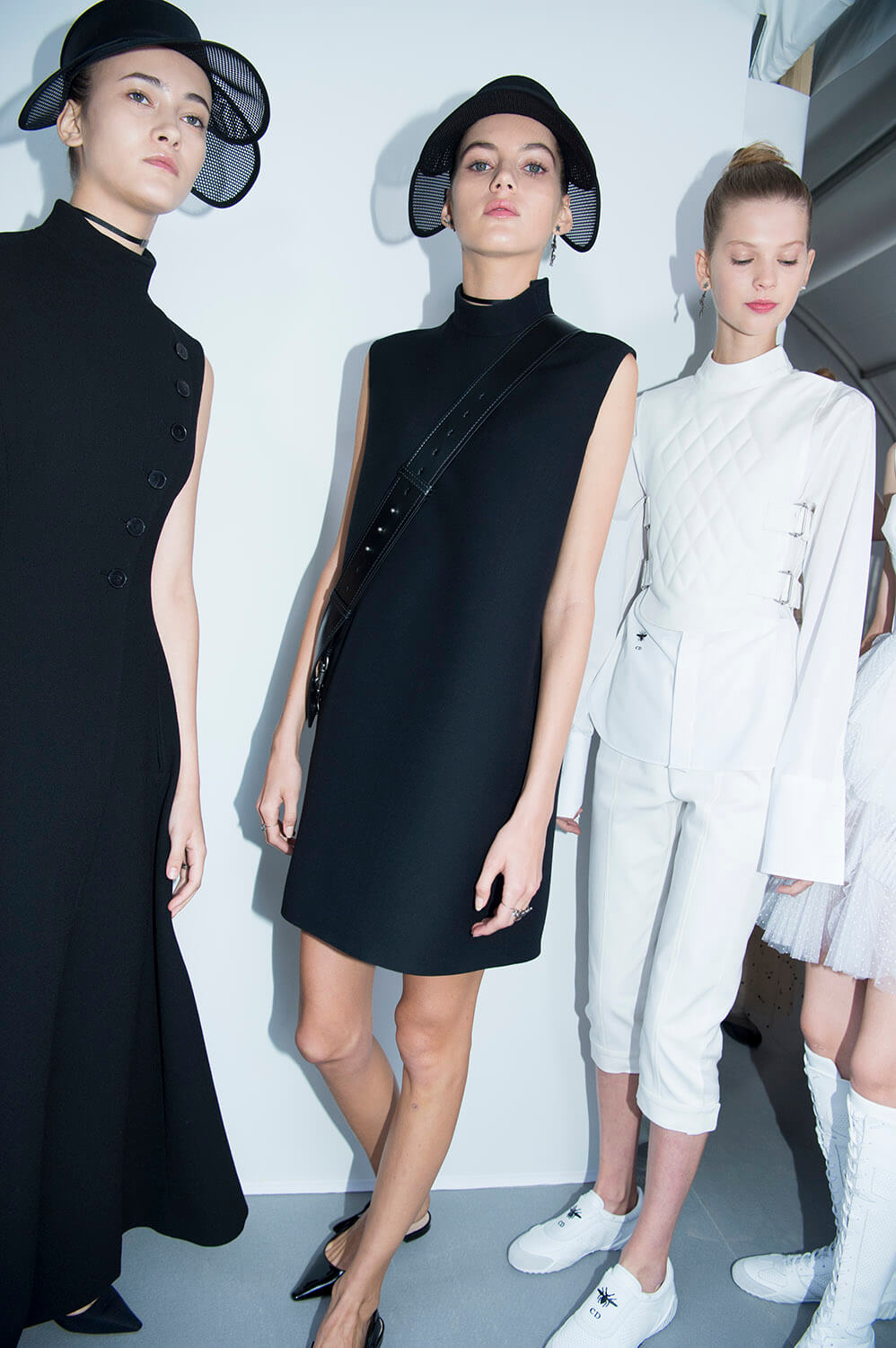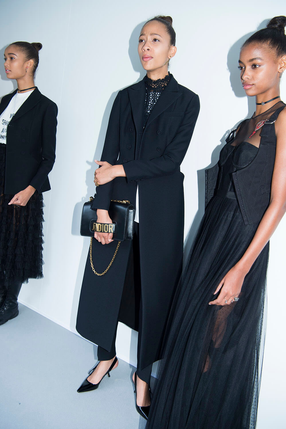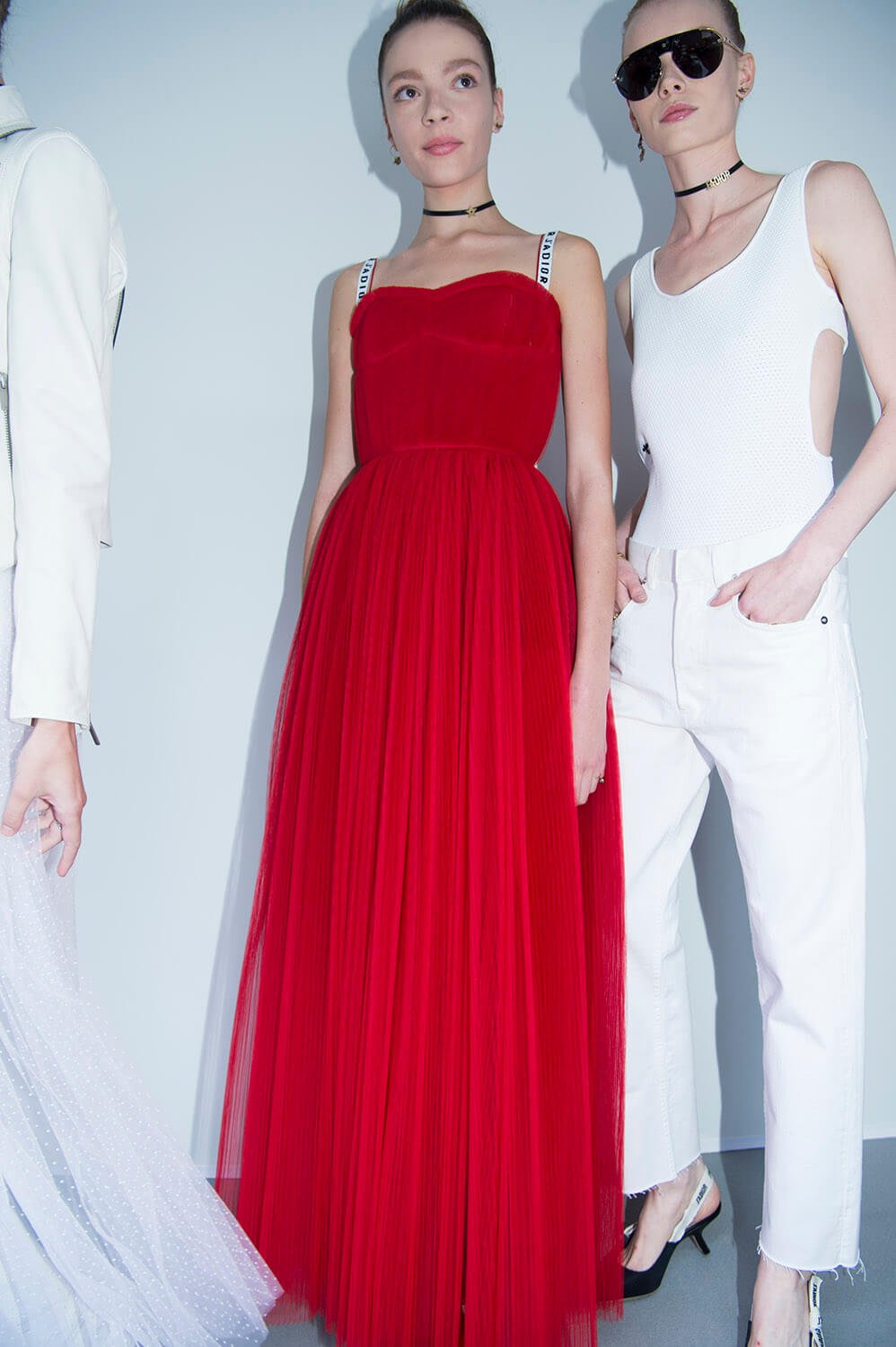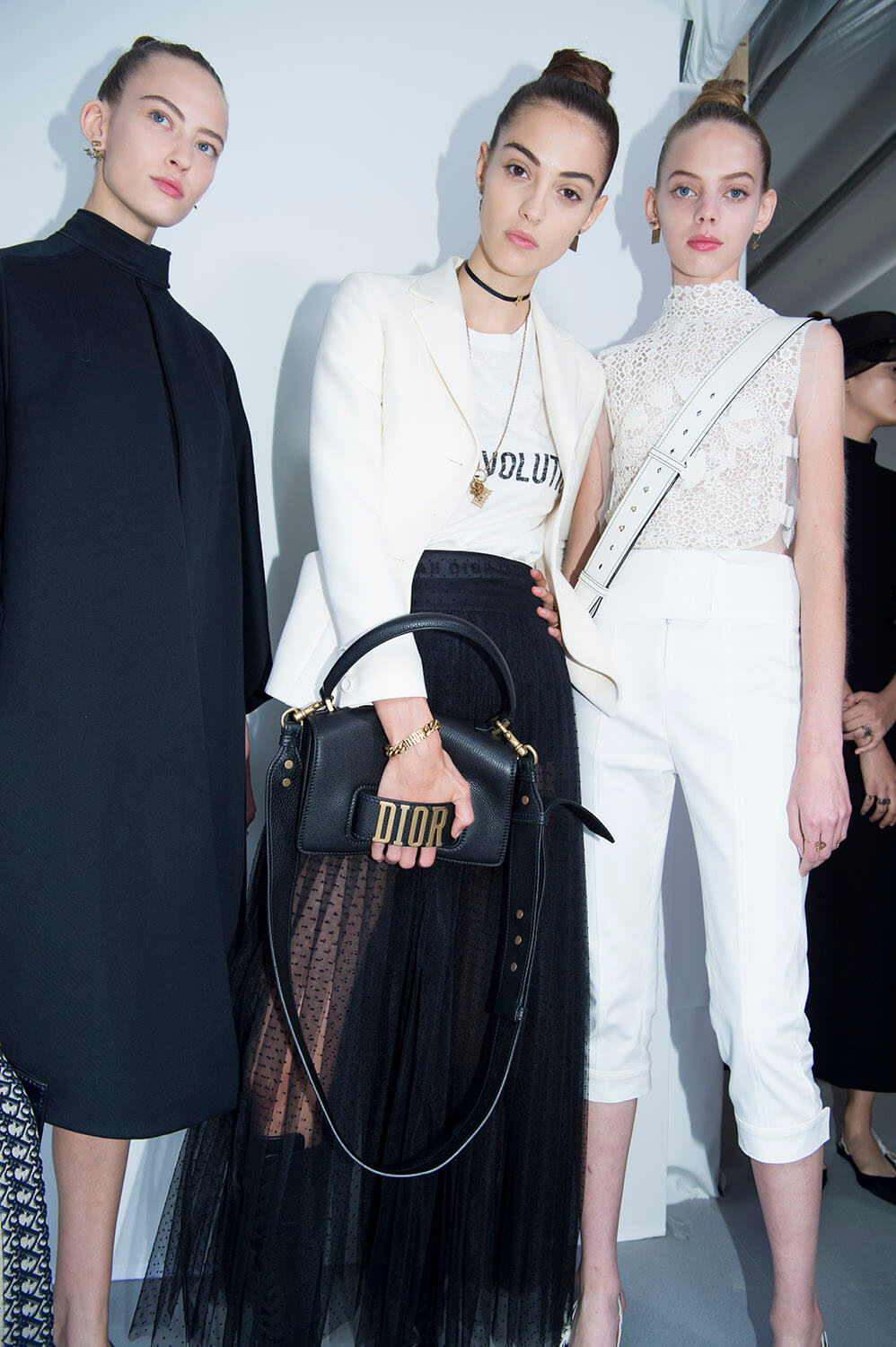 We should all be feminists. That was the message of Maria Chiuri Grazia’s debut outing for the house of Christian Dior. A message that was, handily, also printed upon a t-shirt, just in case you forgot. It was a fitting slogan for Maria, a designer who is, as you may have noticed, a woman, which, in turn, makes her the very first woman to take the helm of the Parisian house. Thus, this collection was a mission, a mission to create clothing that reflected modern womanhood. “I strive to be attentive and open to the world and to create fashion that resembles the woman of today,” said Maria before the show. So what was this? Well, it began with the uniform of the fencer. As in, the sport. That one were they poke each other with swords or something. The reason? Because, as Maria said, the clothing that a fencer wears is worn by both male and female competitors – the difference being that it is the woman’s body transforms and alters the shape the shape of the garment. So that was the starting point – and, as is the deftness of Maria’s hand, the athletic shape was transformed into something altogether more romantic – the fencer’s tabard becoming more like a bodice, worn with trousers that cut off at the knee, or with a full-length, sheer layered skirt – a sort of athletic, Olympian take on the ballgown. A single red heart was embroidered upon the chest of the opening look. It was this play between masculine and feminine that remained as we moved away from the fencer – floating ballet skirts worn with leather jackets and boxing boots, peeks of bra straps and waistbands emblazoned with Christian Dior, a bit like the waistband of men’s boxers, a bar jacket worn not with a blouse but a t-shirt. This one said Dio(r)evolution. Fitting, no? Because this was a revolution of sorts. This is a Dior lady who’s ready to move. And, she even has a pair of trainers to do it in. But don’t worry – to end, a frisson of sheer tulle dresses, corseted on the bodice and delicately embroidered with the signs of the zodiac. Because, well, this is Dior mon cherie. Where would we be without a little drama?