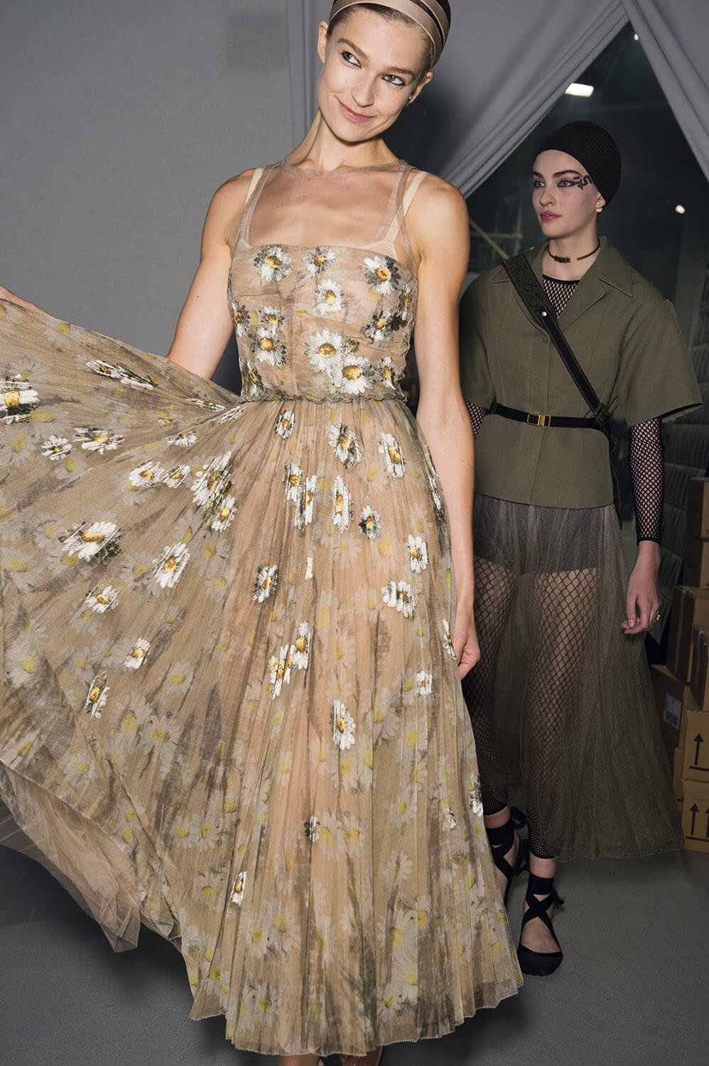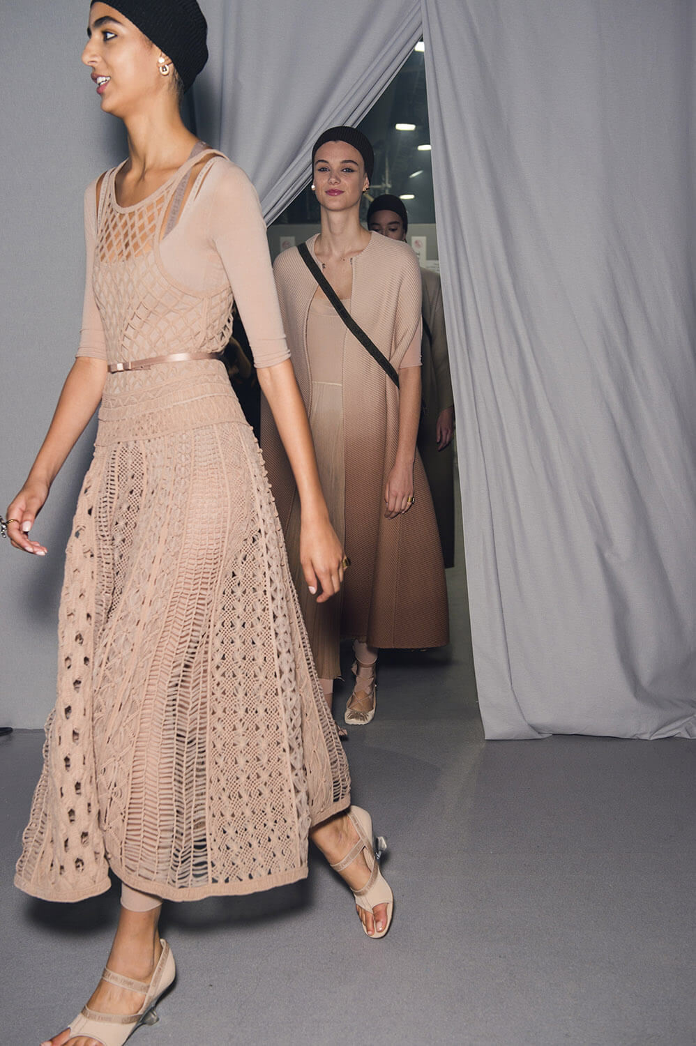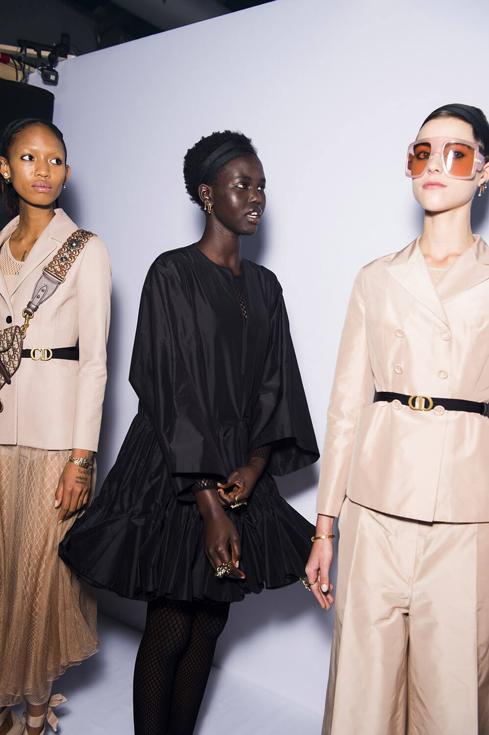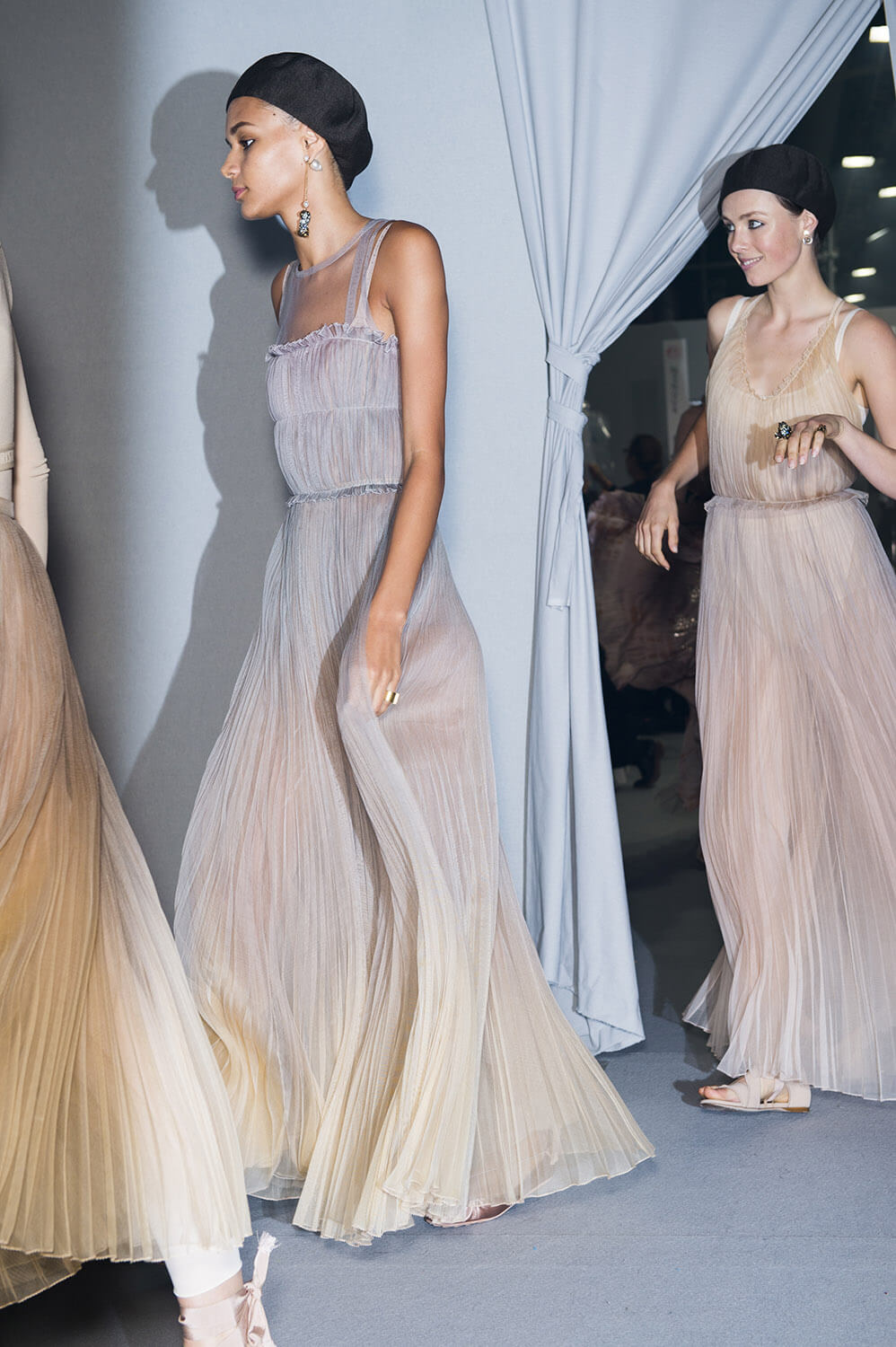 “Dance is the movement of the universe concentrated on an individual,” said Isadora Duncan. “I’m not interested in how people move. I’m interested in what makes them move,” said Pina Bausch. Inside a vast, square, spotlit show-space, eight dancers in unitards performed modernist moves as the models strode around them. Monsieur Dior was a fan of dance, collaborating with Roland Petit and dressing Margot Fonteyn. With this link to the archive established, Maria Grazia Chiuri designed for the modern Dior customer with the body and movement in mind. Her fluid clothes moved with every step. The look was layered – a second-skin dancers’s unitard formed the base, over which were added light as air tulle skirts and gathered Grecian gowns.