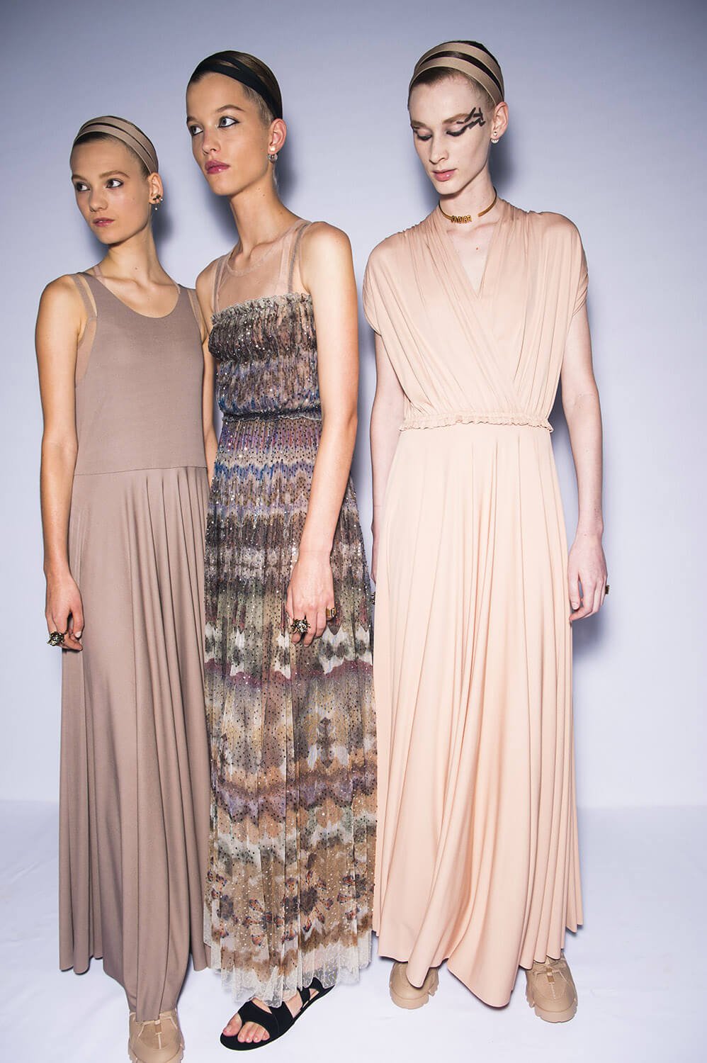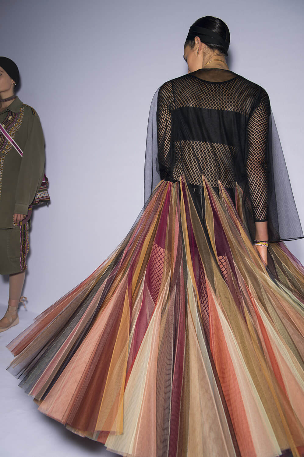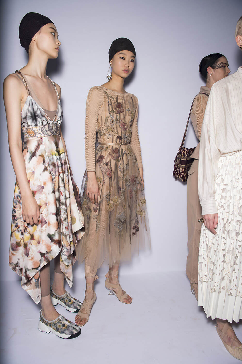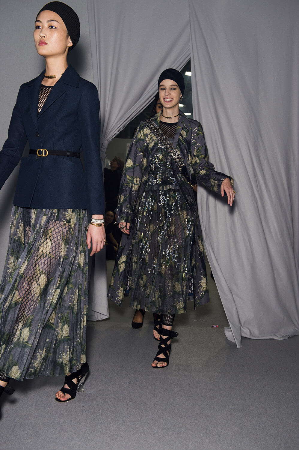 “Dance is the movement of the universe concentrated on an individual,” said Isadora Duncan. “I’m not interested in how people move. I’m interested in what makes them move,” said Pina Bausch. Inside a vast, square, spotlit show-space, eight dancers in unitards performed modernist moves as the models strode around them. Monsieur Dior was a fan of dance, collaborating with Roland Petit and dressing Margot Fonteyn. With this link to the archive established, Maria Grazia Chiuri designed for the modern Dior customer with the body and movement in mind. Her fluid clothes moved with every step. The look was layered – a second-skin dancers’s unitard formed the base, over which were added light as air tulle skirts and gathered Grecian gowns.