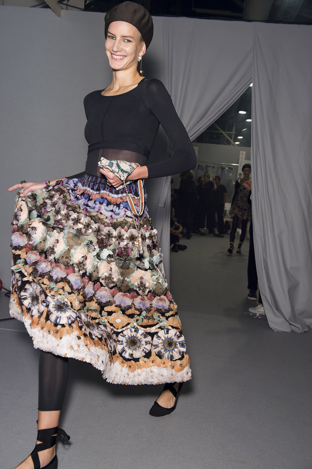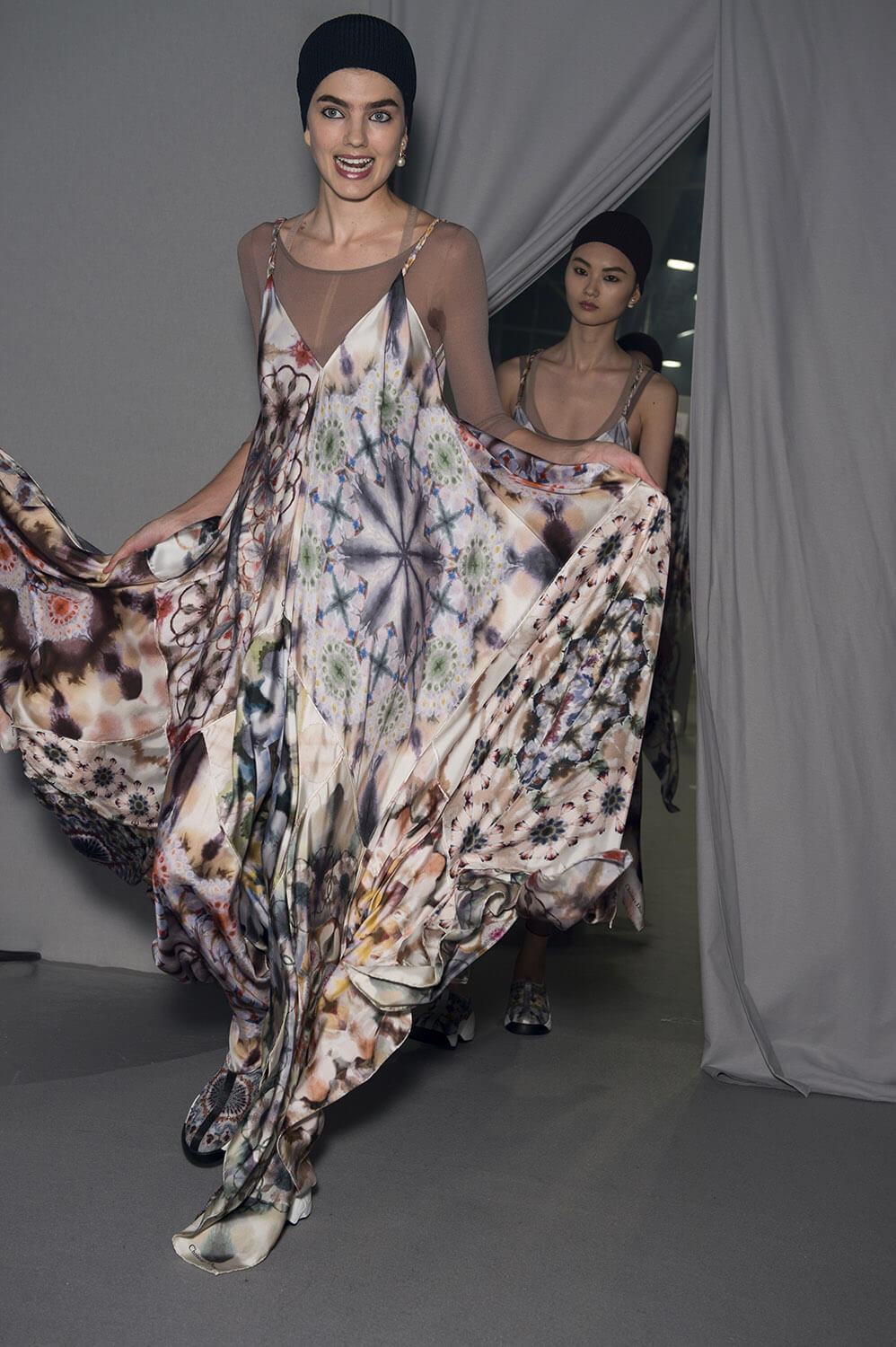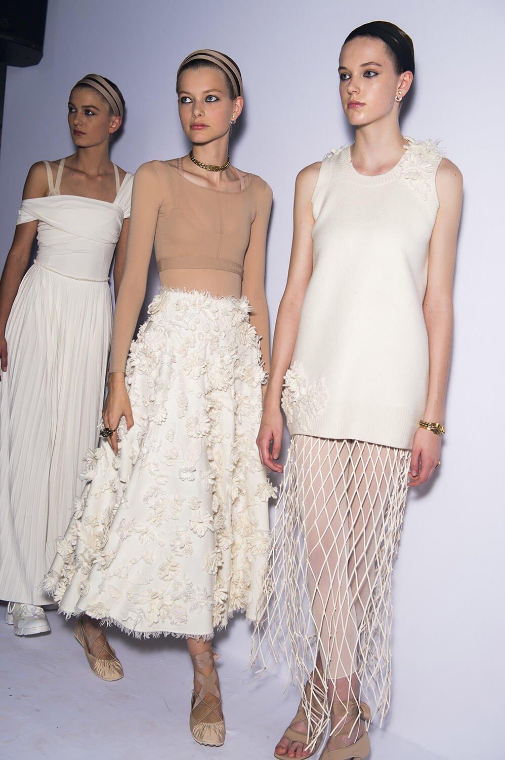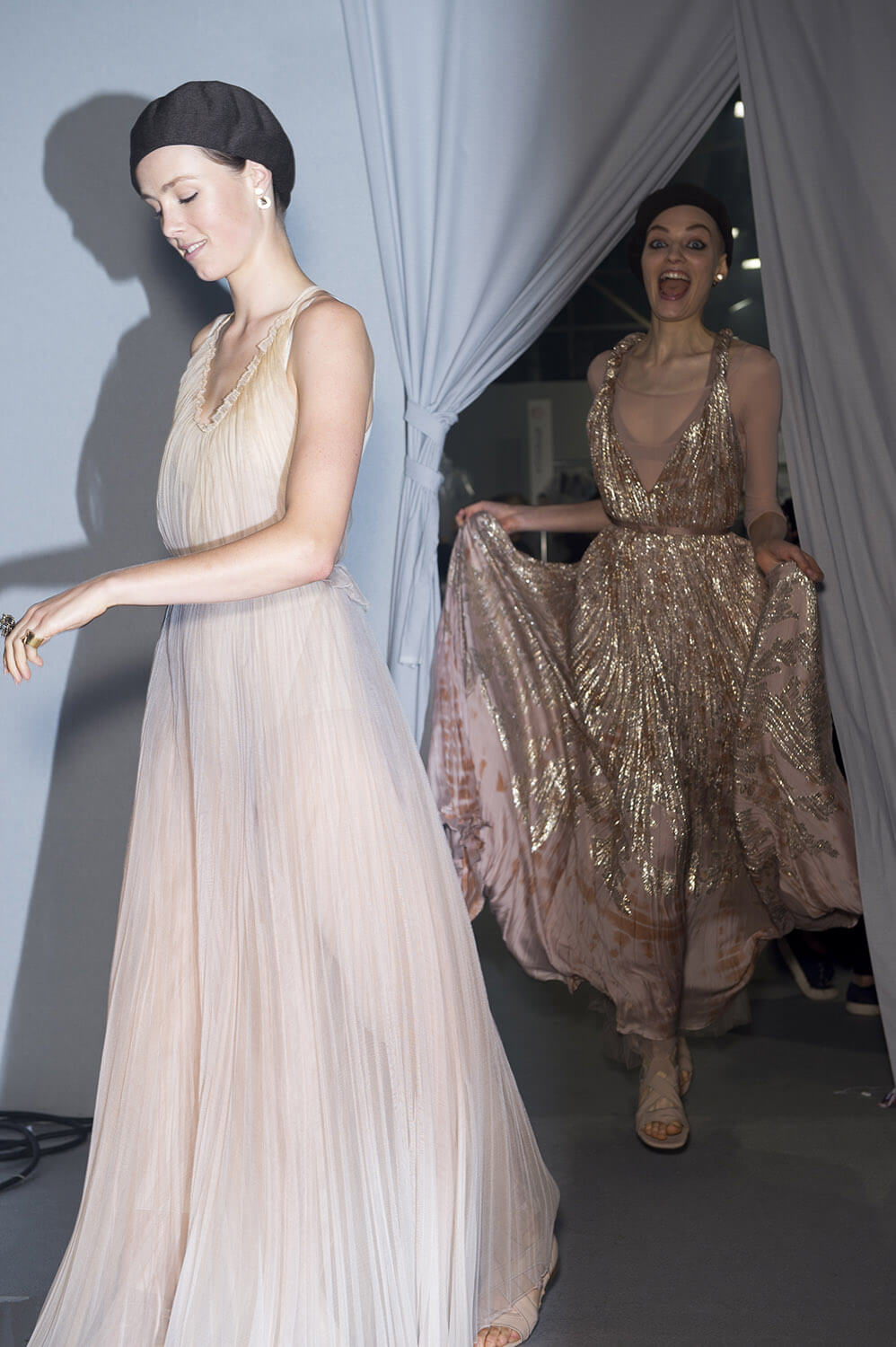 “Dance is the movement of the universe concentrated on an individual,” said Isadora Duncan. “I’m not interested in how people move. I’m interested in what makes them move,” said Pina Bausch. Inside a vast, square, spotlit show-space, eight dancers in unitards performed modernist moves as the models strode around them. Monsieur Dior was a fan of dance, collaborating with Roland Petit and dressing Margot Fonteyn. With this link to the archive established, Maria Grazia Chiuri designed for the modern Dior customer with the body and movement in mind. Her fluid clothes moved with every step. The look was layered – a second-skin dancers’s unitard formed the base, over which were added light as air tulle skirts and gathered Grecian gowns.