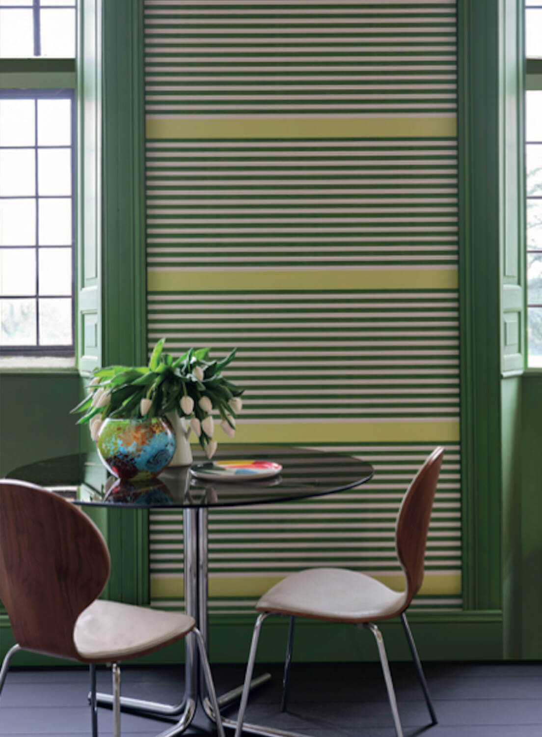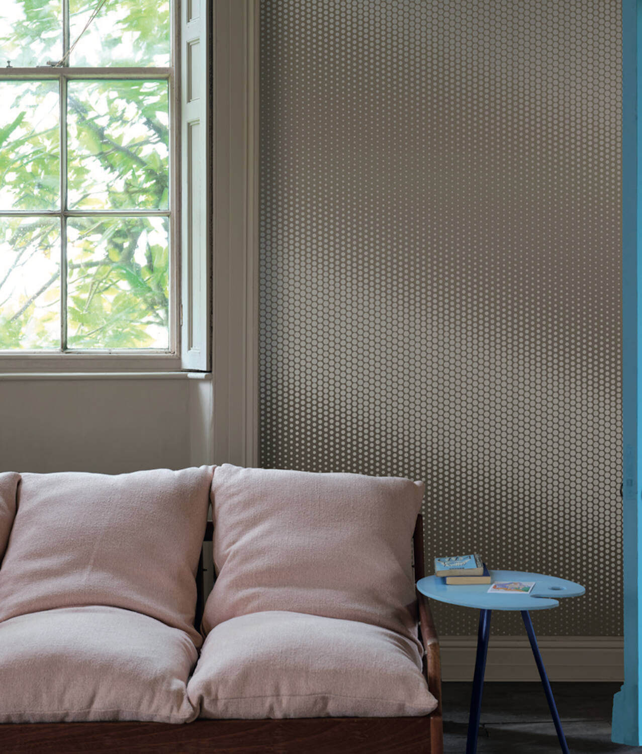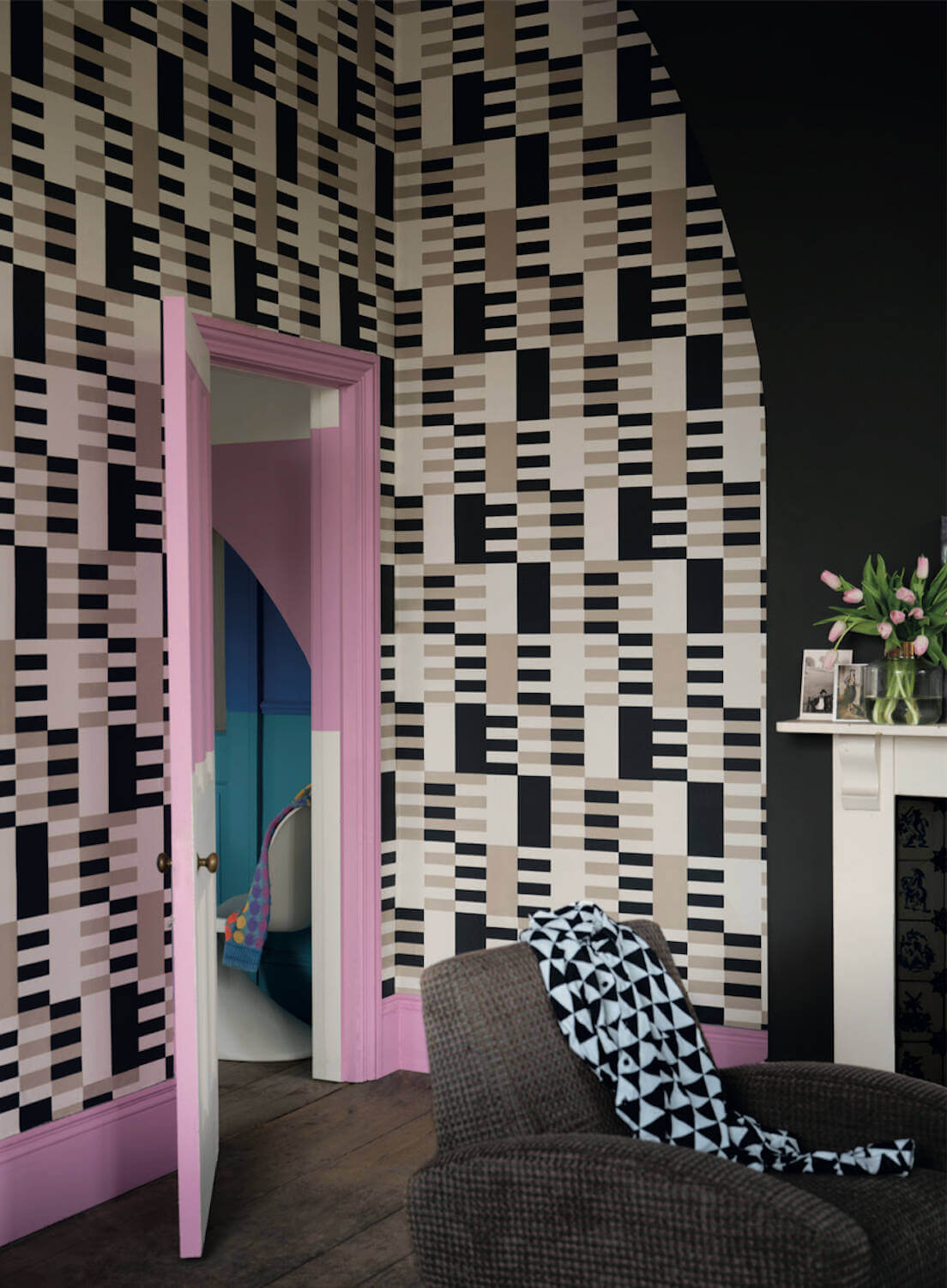 The result is a foundation of four neutrals, eight statement shades and three zesty wallpaper prints. Those 12 new paint shades range from Lobster and Pea Flower Tea blues to Raw Tomatillo green, Hog Plum yellow to Romesco crimson, Shallot pink and more, to structural neutrals like roasted macadamia Cardamom, Au lait and black Liquorice. “Colours, and the feelings that I get from them, are always my starting point when working,” he explains. The wallpaper? That’s where the pattern play comes in. A first time endeavour for Farrow & Ball’s collaborative projects, the decorative overlays each play with a different, geometric shape. Dots add tantalising depth to interiors. Wide statement stripes lengthen a room and bold, Bauhaus-inspired checks pay homage to the innovative work of Anni Albers. Each of them bears a tactile finish achieved by hand-painting paint on paper at Farrow & Ball ’s Dorset Factory. With these artisanal paints and papers “the customer can craft a room that’s entirely neutral with a bit of our paper, something incredibly kaleidoscopic, or a room that sits neatly in-between these two spaces” according to Rogers.
